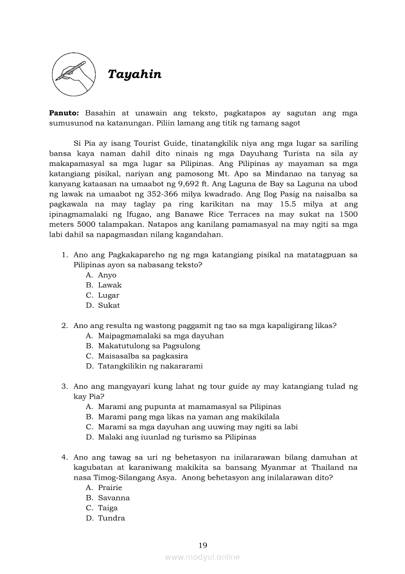 Araling Panlipunan 7 Modyul 2: Kahalagahan ng Ugnayan ng Tao at KapaligiranApr 22, 2021 Grade 7Xiaomi Redmi Watch 5 Active 2inch LCD Display Clear Calling 5ATM Waterproof Smart Watch for only ₱3,999 ₱1,200!. Araling Panlipunan 7RelatedAraling Panlipunan Ika-apat na Markahan – Modyul 1: Kolonyalismo at Imperyalismo sa Silangang Asya at Timog-Silangang AsyaAraling Panlipunan IKA-APAT na MARKAHAN – Modyul 3: NASYONALISMO sa SILANGAN at TIMOG-SILANGANG ASYAAraling Panlipunan Ikaapat na Markahan –Modyul 5: Mga Kababaihan ng Silangan at TimogSilangang AsyaAraling Panlipunan Ikaapat na Markahan – Modyul 7: Neokolonyalismo sa Silangan at Timog-Silangang AsyaAraling Panlipunan Ikaapat na Markahan –Modyul 4: Karanasan, Implikasyon ng Digmaang Pandaigdig at Ugnayan ng Iba’t ibang Ideolohiya sa Pag-usbong ng Nasyonalismo sa mga Bansa sa Silangan at Timog- Silangang Asya