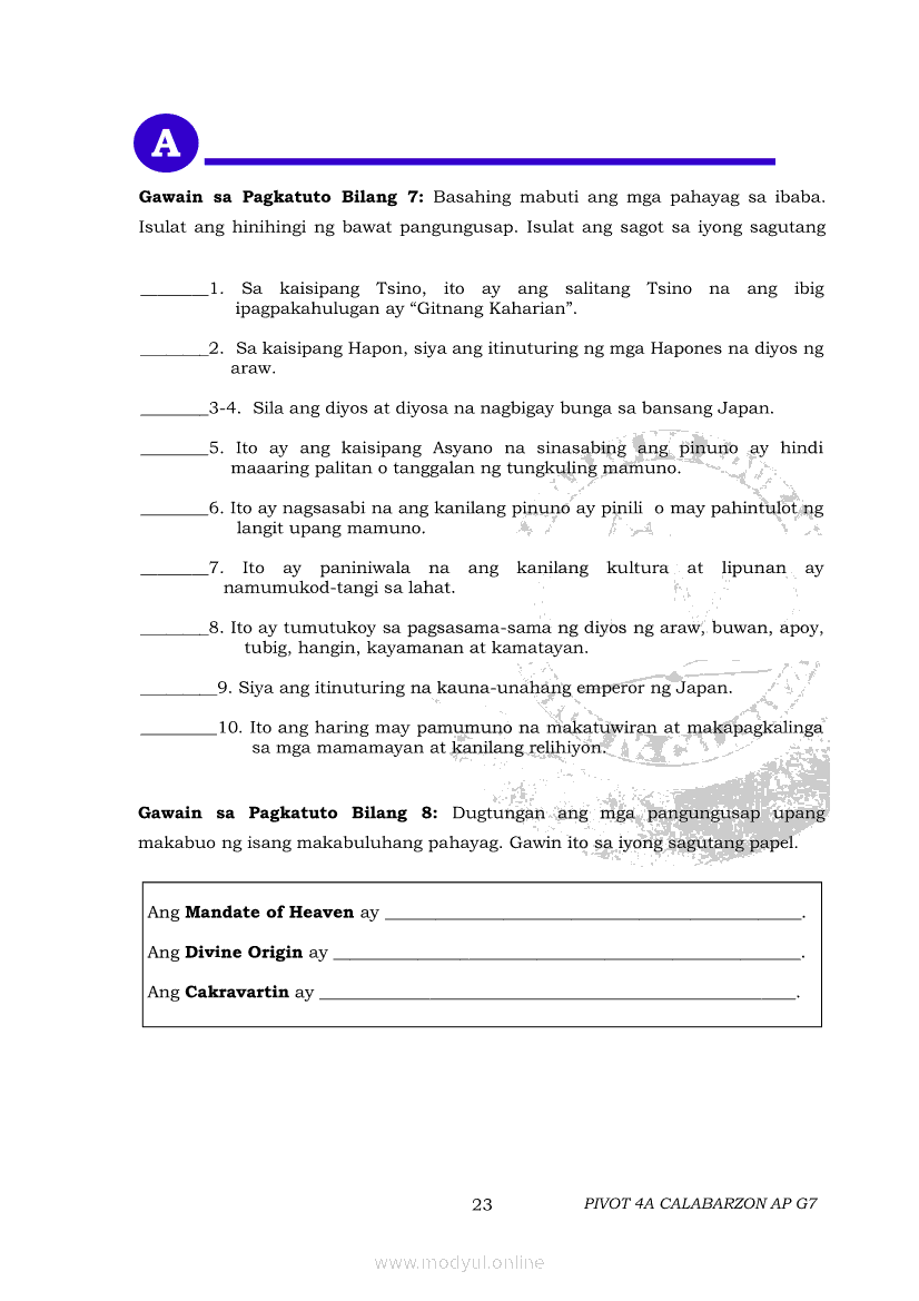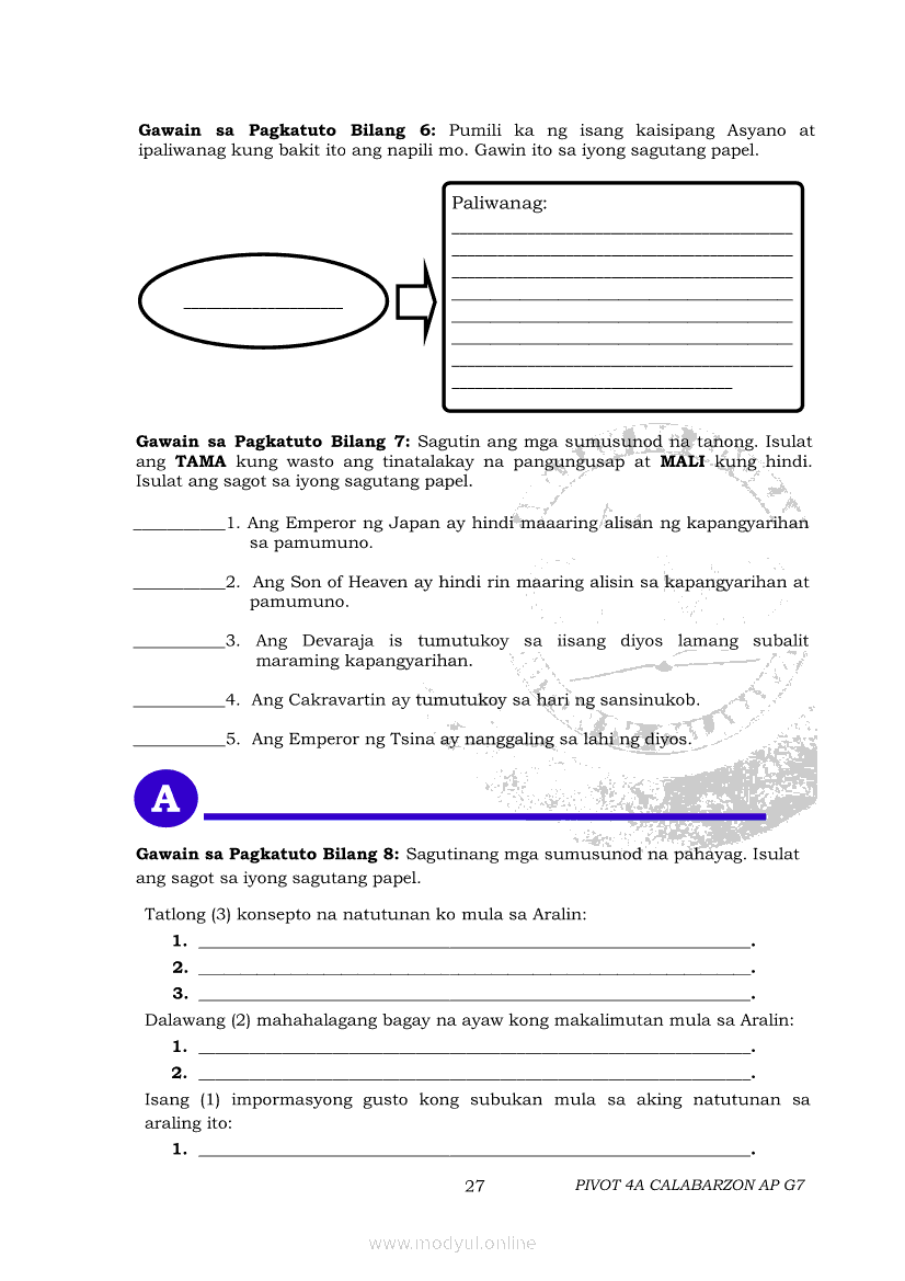 Araling Panlipunan 7 Modyul para sa Ikalawang Markahan (PIVOT)Apr 22, 2021 Grade 7Xiaomi Redmi Watch 5 Active 2inch LCD Display Clear Calling 5ATM Waterproof Smart Watch for only ₱3,999 ₱1,200!. Araling Panlipunan 7RelatedAraling Panlipunan Ikaapat na Markahan –Modyul 4: Karanasan, Implikasyon ng Digmaang Pandaigdig at Ugnayan ng Iba’t ibang Ideolohiya sa Pag-usbong ng Nasyonalismo sa mga Bansa sa Silangan at Timog- Silangang AsyaAraling Panlipunan Ikaapat na Markahan – Modyul 2 Epekto ng Kolonyalismo at Imperyalismo sa Silangan at Timog-Silangang AsyaAraling Panlipunan Ikaapat na Markahan – Modyul 8: Ang mga Kontribusyon ng Silangan at Timog- Silangang Asya sa Larangan ng KulturaAraling Panlipunan Ika-apat na Markahan – Modyul 1: Kolonyalismo at Imperyalismo sa Silangang Asya at Timog-Silangang AsyaAraling Panlipunan IKA-APAT na MARKAHAN – Modyul 3: NASYONALISMO sa SILANGAN at TIMOG-SILANGANG ASYA