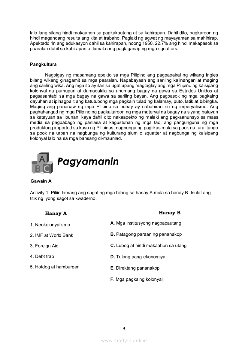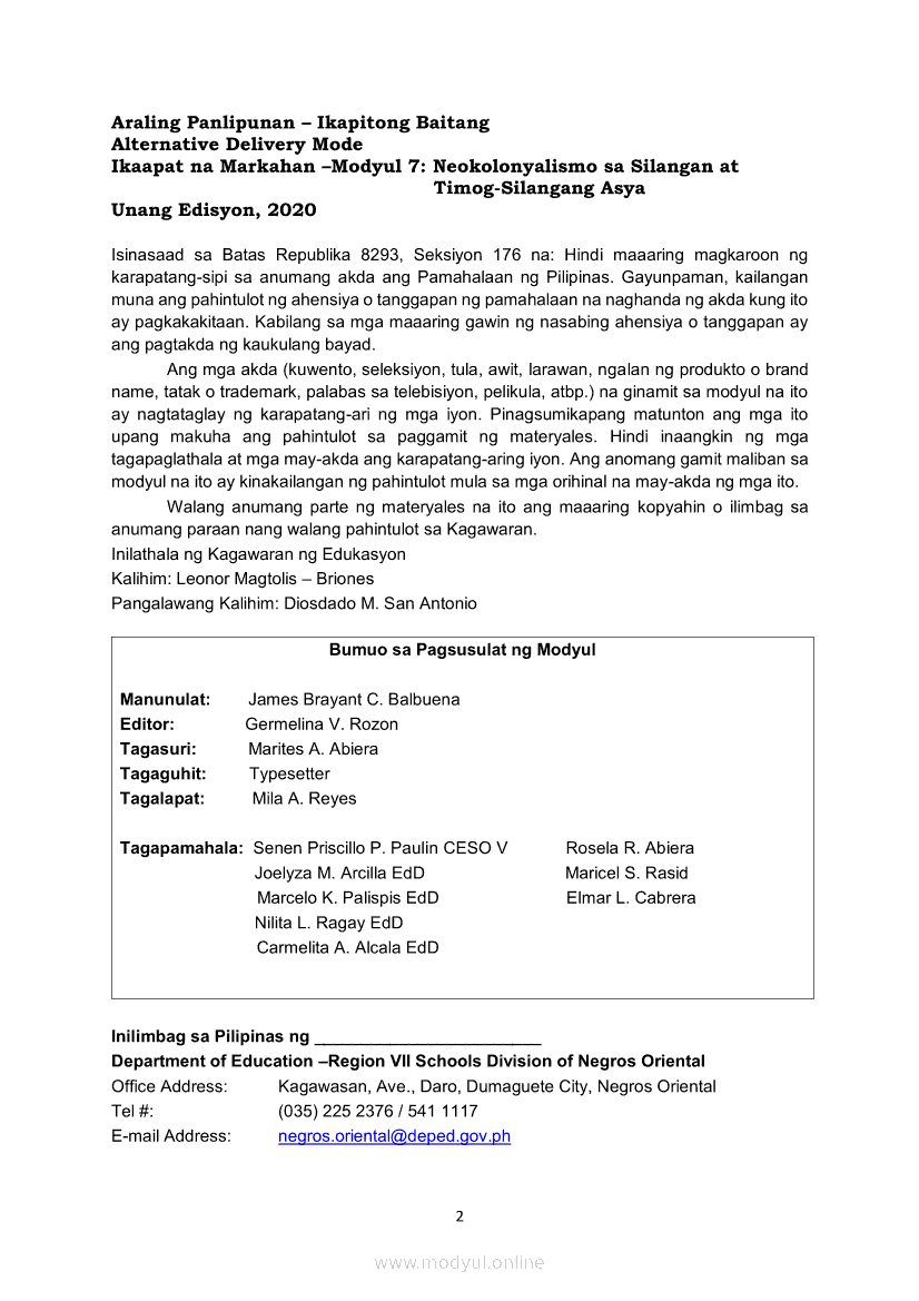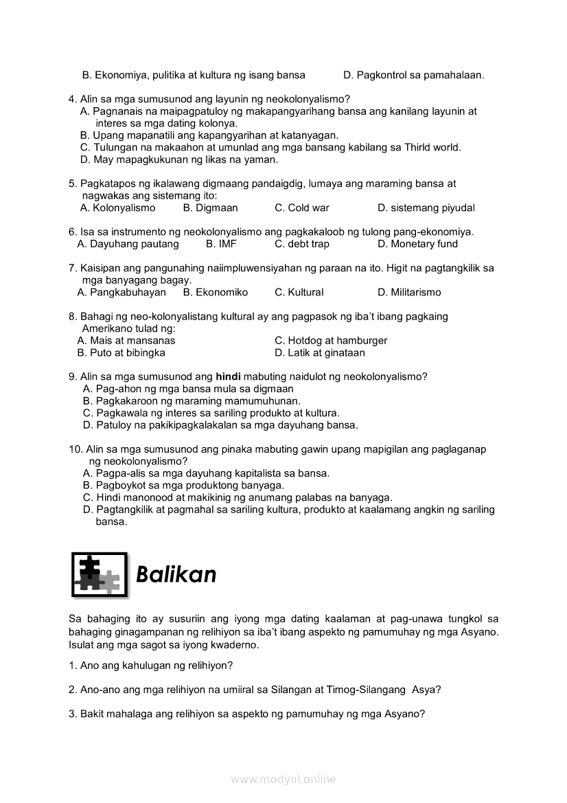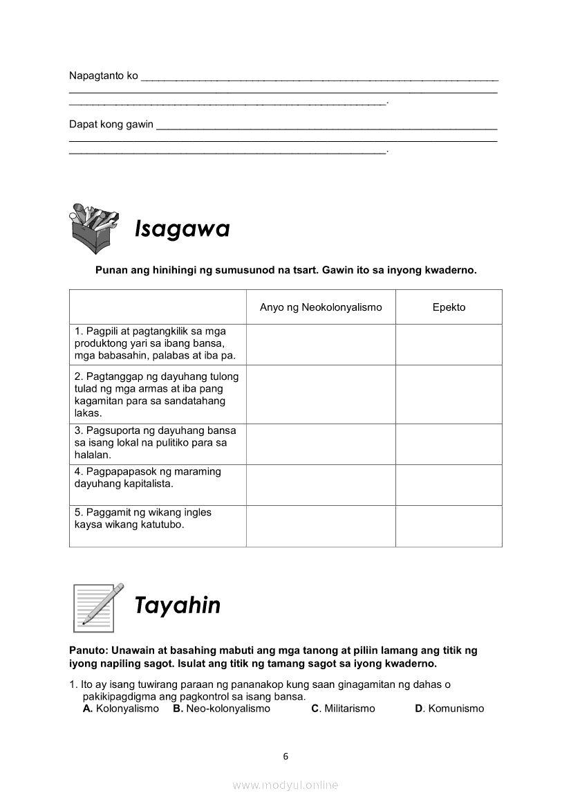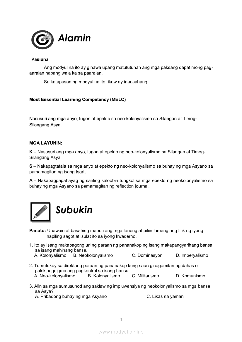 Araling Panlipunan Ikaapat na Markahan – Modyul 7: Neokolonyalismo sa Silangan at Timog-Silangang AsyaMay 27, 2021 Grade 7Xiaomi Redmi Watch 5 Active 2inch LCD Display Clear Calling 5ATM Waterproof Smart Watch for only ₱3,999 ₱1,200!. Araling Panlipunan 7 4th QuarterRelatedAraling Panlipunan Ikaapat na Markahan – Modyul 6: Nasyonalismo sa Silangan at Timog-Silangang AsyaAraling Panlipunan Ikaapat na Markahan –Modyul 4: Karanasan, Implikasyon ng Digmaang Pandaigdig at Ugnayan ng Iba’t ibang Ideolohiya sa Pag-usbong ng Nasyonalismo sa mga Bansa sa Silangan at Timog- Silangang AsyaAraling Panlipunan IKA-APAT na MARKAHAN – Modyul 3: NASYONALISMO sa SILANGAN at TIMOG-SILANGANG ASYAAraling Panlipunan Ikaapat na Markahan – Modyul 8: Ang mga Kontribusyon ng Silangan at Timog- Silangang Asya sa Larangan ng KulturaAraling Panlipunan Ikaapat na Markahan –Modyul 5: Mga Kababaihan ng Silangan at TimogSilangang Asya
