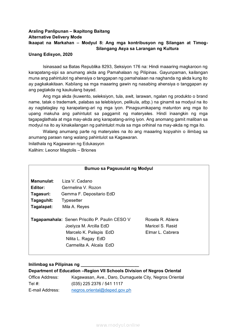 Araling Panlipunan Ikaapat na Markahan – Modyul 8: Ang mga Kontribusyon ng Silangan at Timog- Silangang Asya sa Larangan ng KulturaMay 27, 2021 Grade 7Xiaomi Redmi Watch 5 Active 2inch LCD Display Clear Calling 5ATM Waterproof Smart Watch for only ₱3,999 ₱1,200!. Araling Panlipunan 7 4th QuarterRelatedAraling Panlipunan IKA-APAT na MARKAHAN – Modyul 3: NASYONALISMO sa SILANGAN at TIMOG-SILANGANG ASYAAraling Panlipunan Ikaapat na Markahan – Modyul 7: Neokolonyalismo sa Silangan at Timog-Silangang AsyaAraling Panlipunan Ikaapat na Markahan – Modyul 2 Epekto ng Kolonyalismo at Imperyalismo sa Silangan at Timog-Silangang AsyaAraling Panlipunan Ikaapat na Markahan –Modyul 4: Karanasan, Implikasyon ng Digmaang Pandaigdig at Ugnayan ng Iba’t ibang Ideolohiya sa Pag-usbong ng Nasyonalismo sa mga Bansa sa Silangan at Timog- Silangang AsyaAraling Panlipunan Ika-apat na Markahan – Modyul 1: Kolonyalismo at Imperyalismo sa Silangang Asya at Timog-Silangang Asya