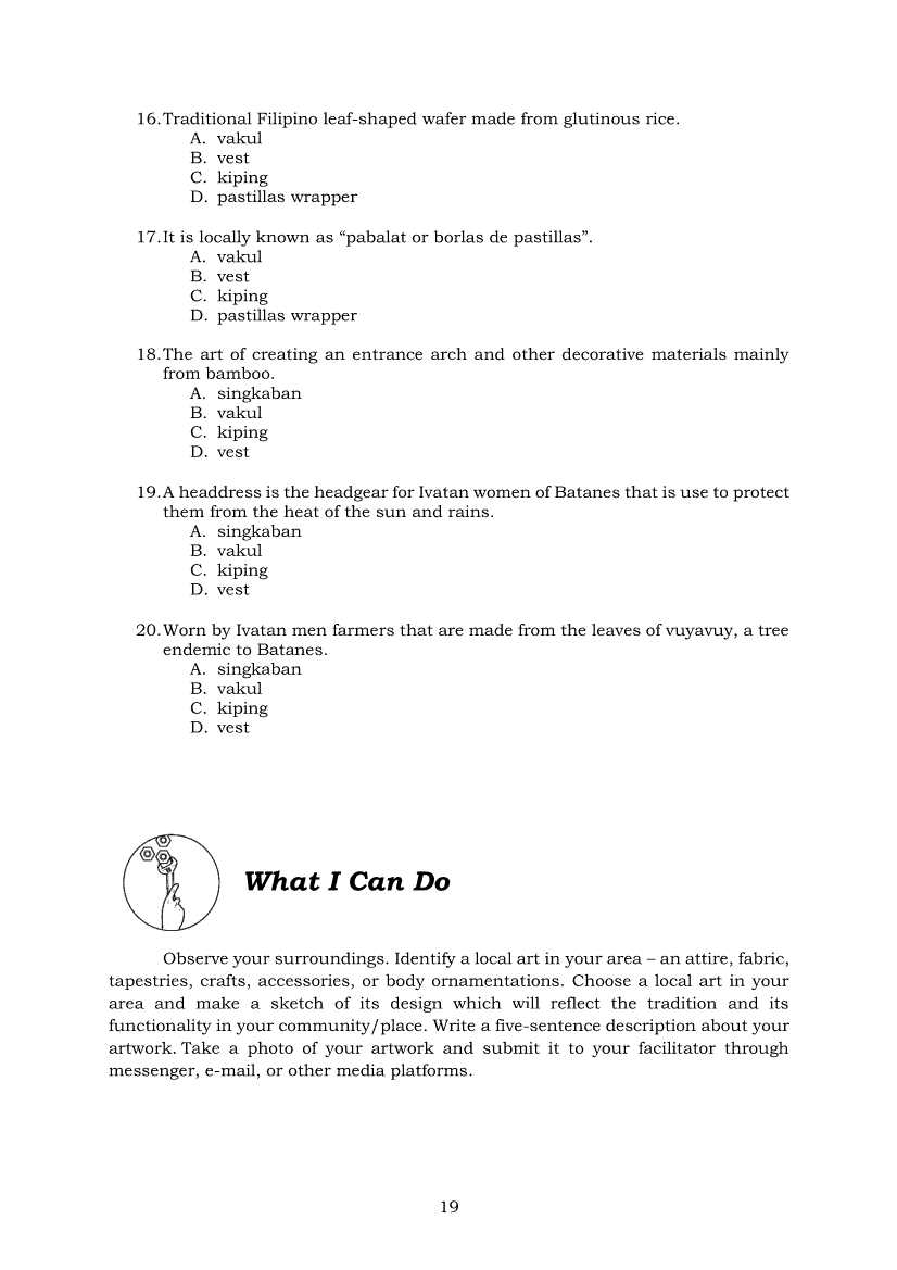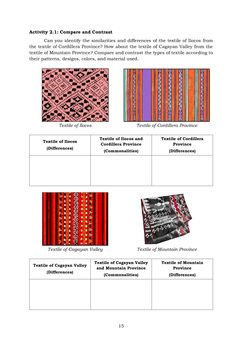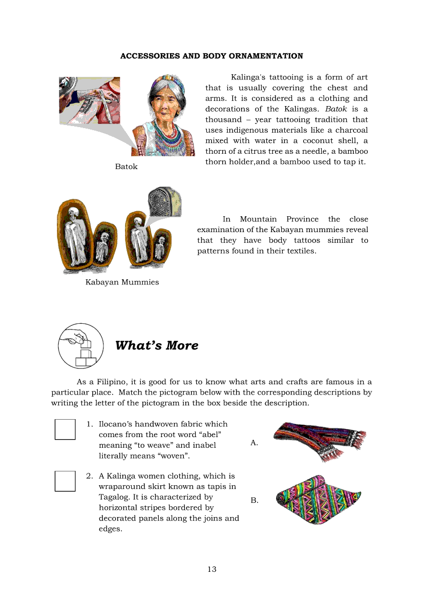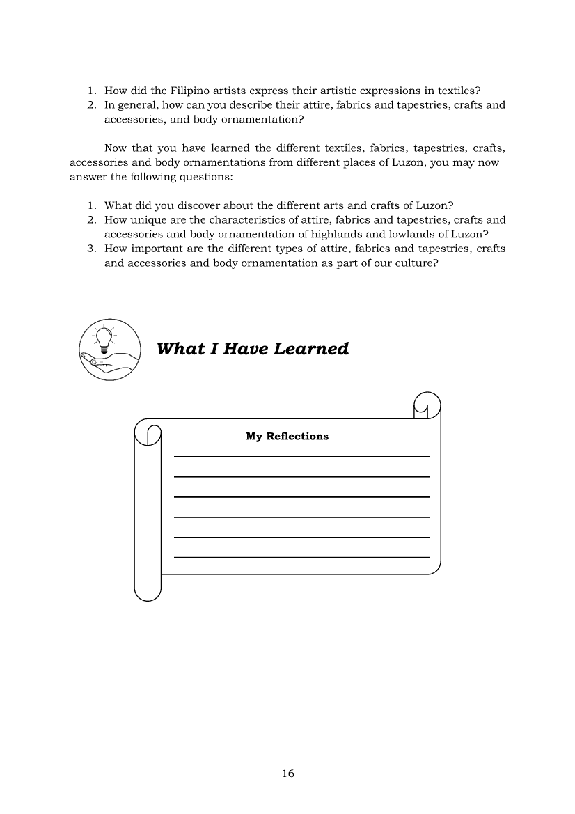 Arts 7 Module 1: Arts and Crafts of Luzon Attires, Fabrics, and Tapestries Crafts and Accessories and Body OrnamentationApr 22, 2021 Grade 7Xiaomi Redmi Watch 5 Active 2inch LCD Display Clear Calling 5ATM Waterproof Smart Watch for only ₱3,999 ₱1,200!. Arts 7RelatedARTS Quarter 4 – Module: 4b Representative Philippine Theatrical FormsARTS Quarter 4 – Module: 4a Religious and Non-Religious FestivalsArts 7 Module 5: Arts and Crafts of Luzon (Highlands and Lowlands) Attire, Fabrics, and TapestriesArts 7 Second Quarter Module (PIVOT)Arts 7 Module 3: Arts and Crafts of MIMAROPA and the Visayas When Bisaya Meets Tagalog Elements of Art