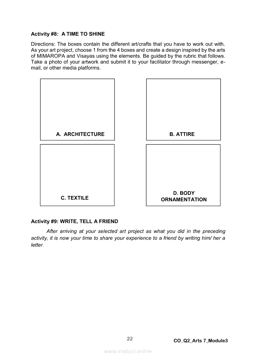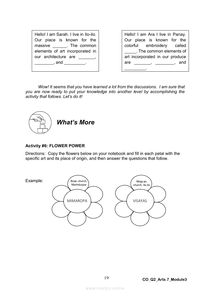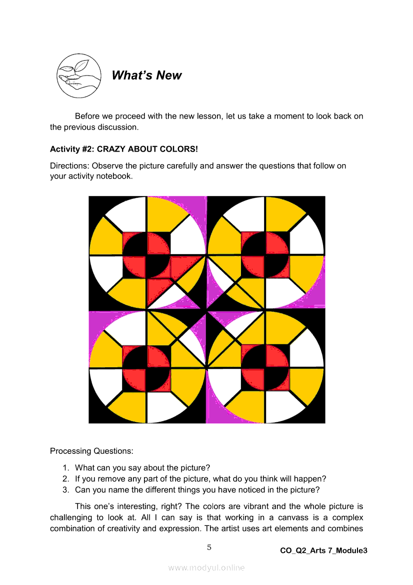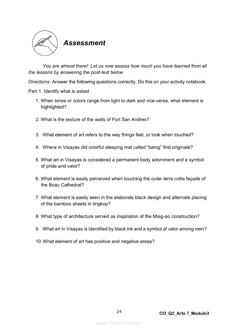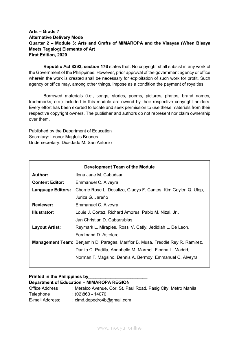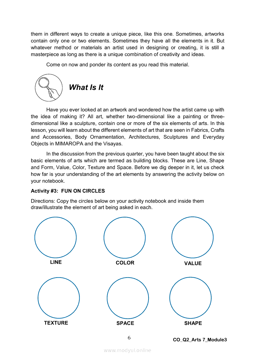 Arts 7 Module 3: Arts and Crafts of MIMAROPA and the Visayas When Bisaya Meets Tagalog Elements of ArtApr 22, 2021 Grade 7Xiaomi Redmi Watch 5 Active 2inch LCD Display Clear Calling 5ATM Waterproof Smart Watch for only ₱3,999 ₱1,200!. Arts 7RelatedARTS Quarter 4 – Module: 4a Religious and Non-Religious FestivalsARTS Quarter 4 – Module: 4b Representative Philippine Theatrical FormsArts 7 Second Quarter Module (PIVOT)Arts 7 Module 5: Arts and Crafts of Luzon (Highlands and Lowlands) Attire, Fabrics, and TapestriesArts 7 Module 8: Creation of Arts and Crafts of Luzon (Highlands and Lowlands) Sculpture
