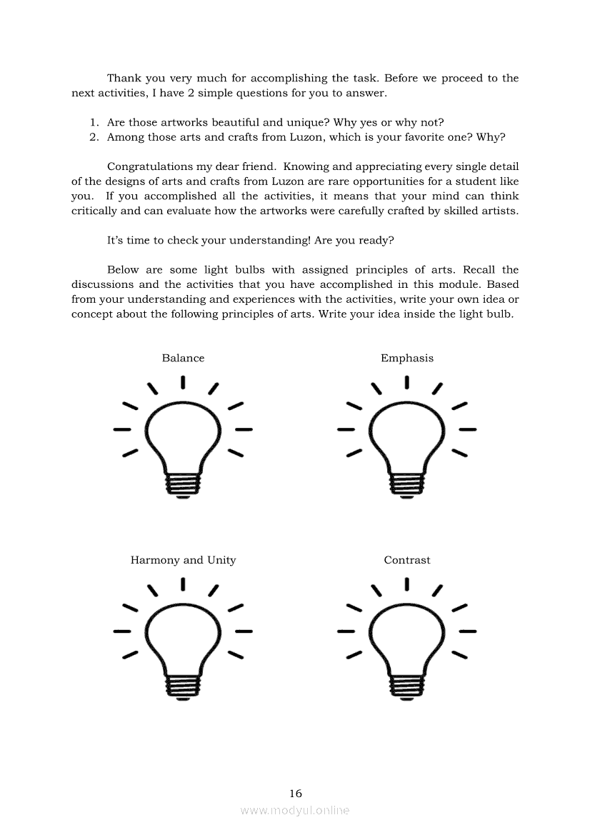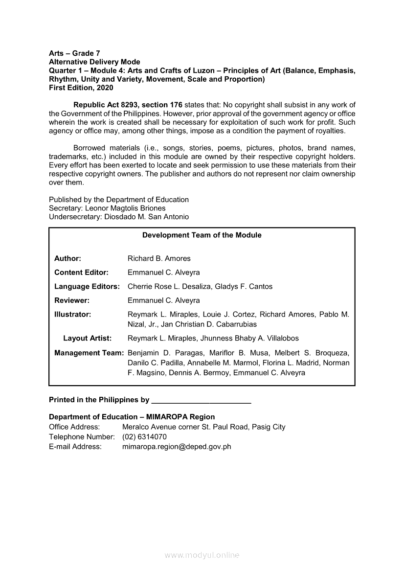 Arts 7 Module 4: Arts and Crafts of Luzon Principles of ArtApr 22, 2021 Grade 7Xiaomi Redmi Watch 5 Active 2inch LCD Display Clear Calling 5ATM Waterproof Smart Watch for only ₱3,999 ₱1,200!. Arts 7RelatedARTS Quarter 4 – Module: 4a Religious and Non-Religious FestivalsARTS Quarter 4 – Module: 4b Representative Philippine Theatrical FormsArts 7 Module 4: Arts and Crafts of MIMAROPA and the Visayas - Principles behind the Elements (Principles of Arts)Arts 7 Module 7: Arts and Crafts of Luzon (Highland and Lowlands) ArchitecturesArts 7 Module 6: Creation of Arts and Crafts of Luzon (Highlands and Lowlands) Crafts, Accessories, and Body Ornamentation