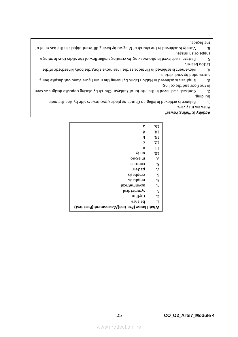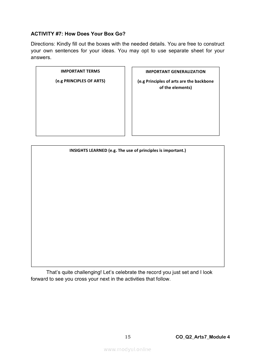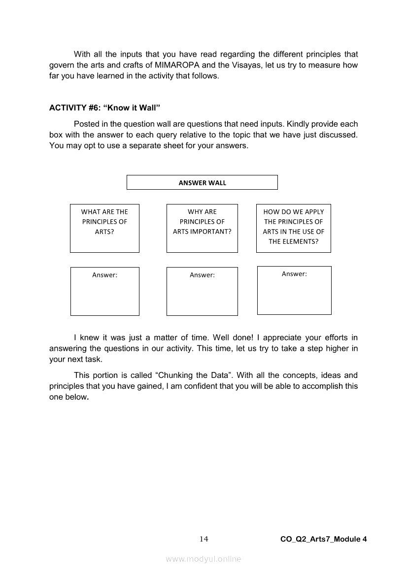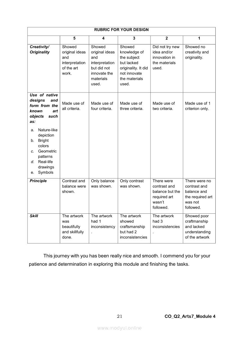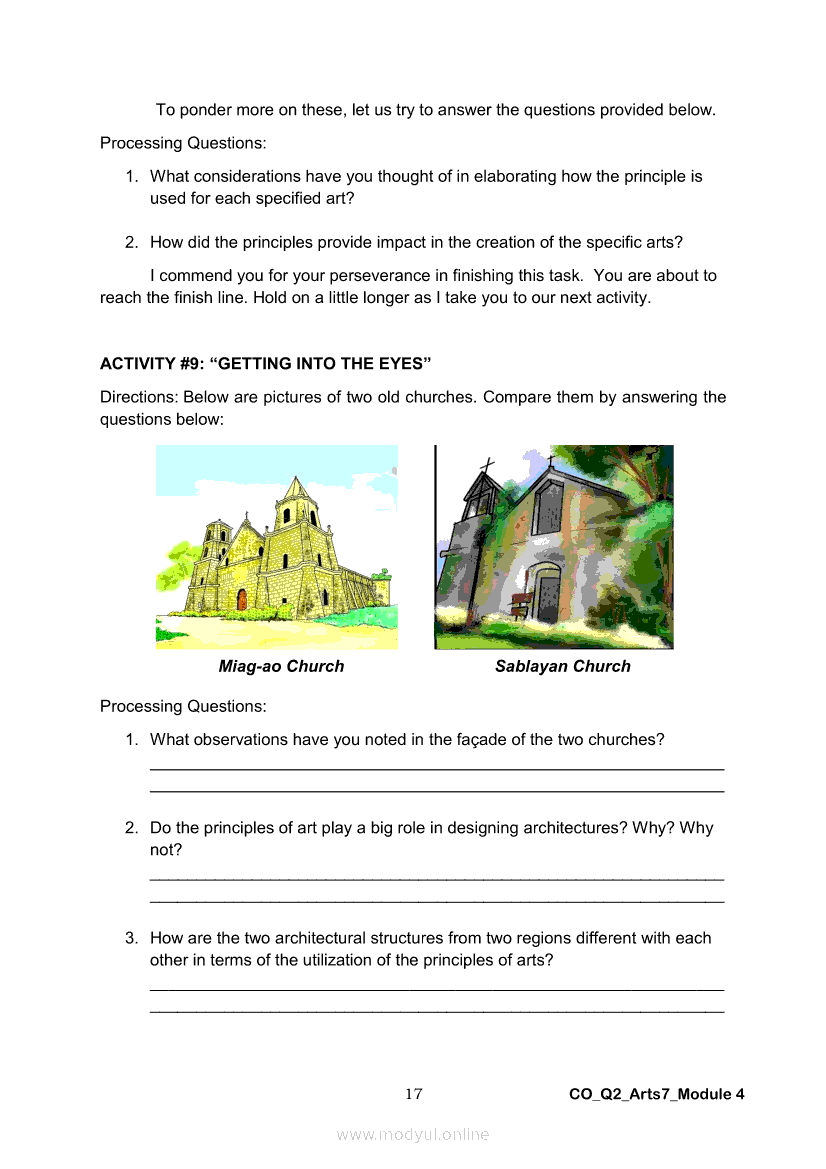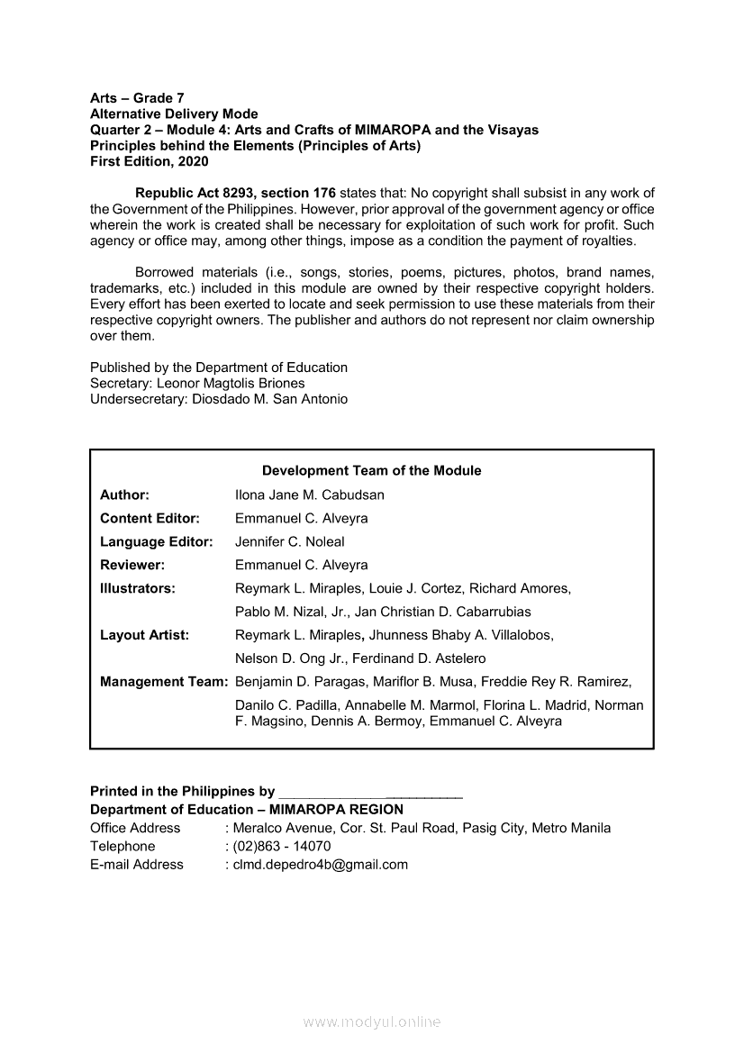 Arts 7 Module 4: Arts and Crafts of MIMAROPA and the Visayas - Principles behind the Elements (Principles of Arts)Apr 22, 2021 Grade 7Xiaomi Redmi Watch 5 Active 2inch LCD Display Clear Calling 5ATM Waterproof Smart Watch for only ₱3,999 ₱1,200!. Arts 7RelatedARTS Quarter 4 – Module: 4a Religious and Non-Religious FestivalsARTS Quarter 4 – Module: 4b Representative Philippine Theatrical FormsArts 7 Module 3: Arts and Crafts of MIMAROPA and the Visayas When Bisaya Meets Tagalog Elements of ArtArts 7 Module 1: Arts and Crafts of Luzon Attires, Fabrics, and Tapestries Crafts and Accessories and Body OrnamentationArts 7 Module 5: Arts and Crafts of Luzon (Highlands and Lowlands) Attire, Fabrics, and Tapestries