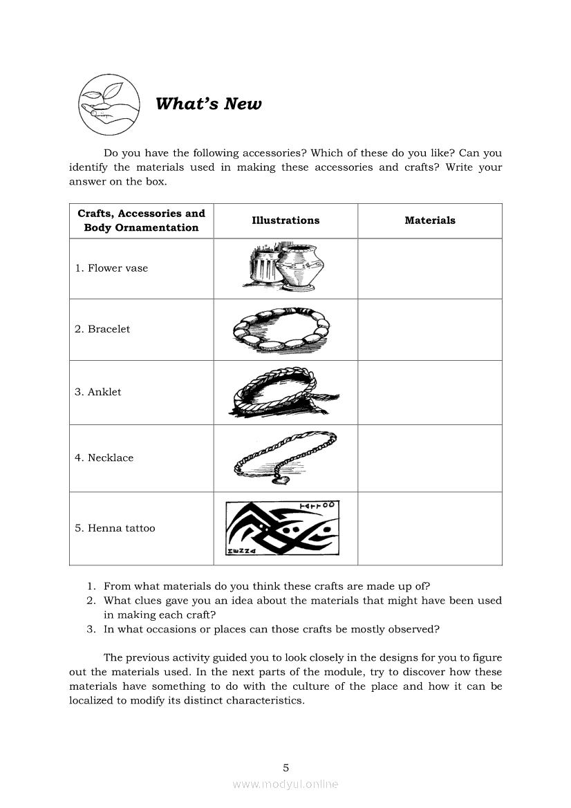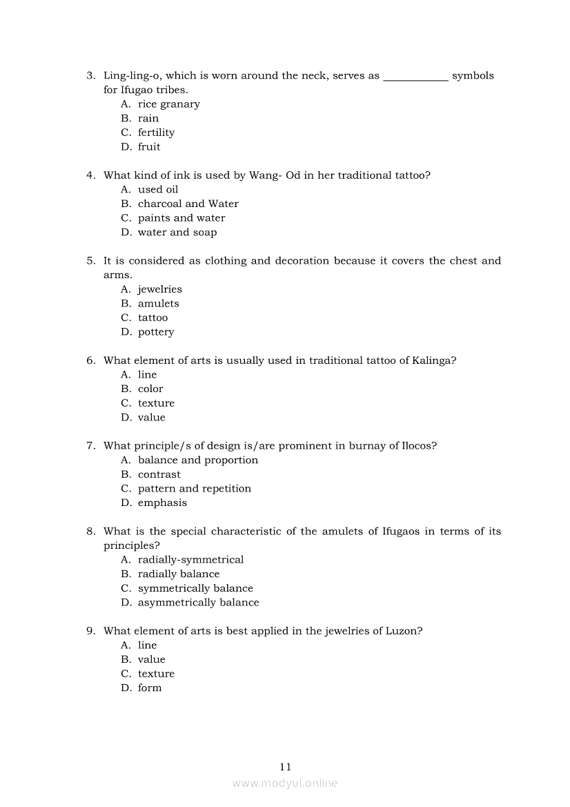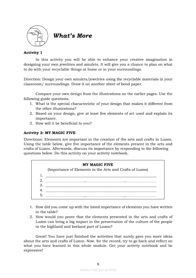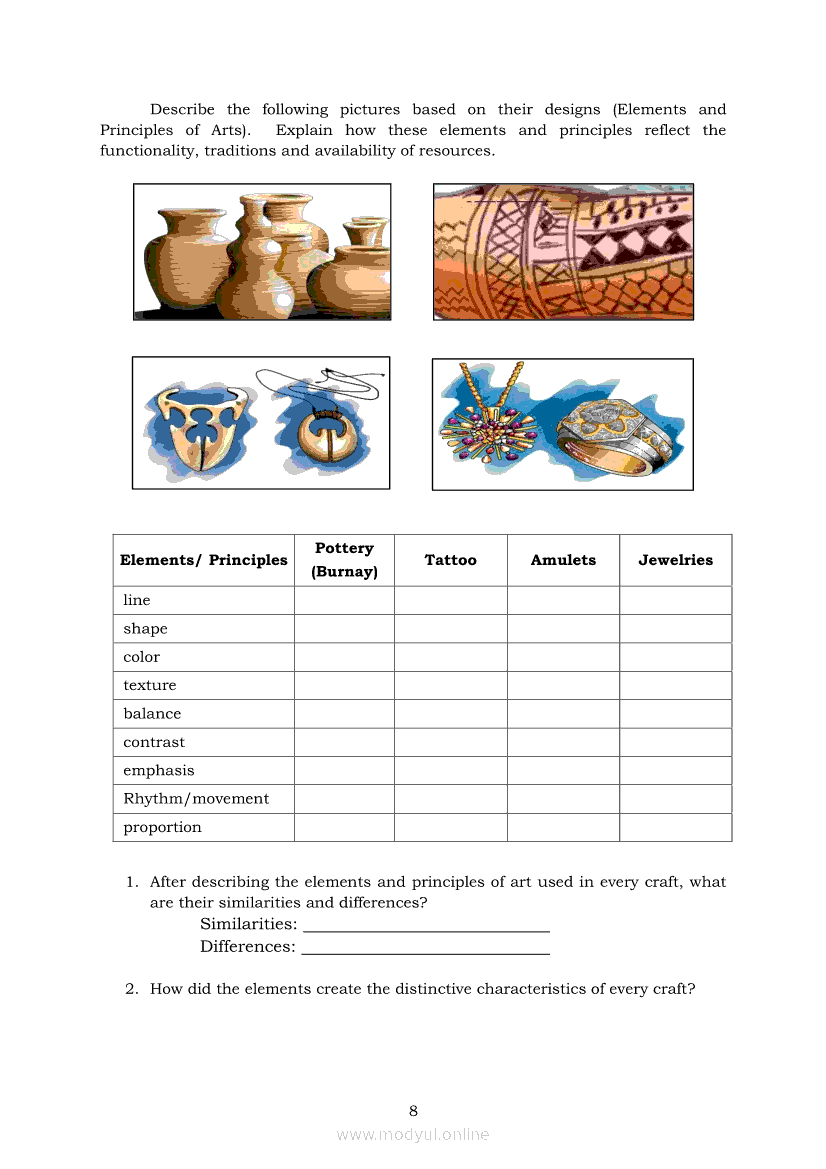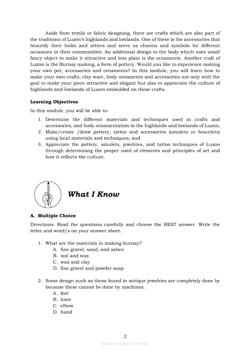 Arts 7 Module 6: Creation of Arts and Crafts of Luzon (Highlands and Lowlands) Crafts, Accessories, and Body OrnamentationApr 22, 2021 Grade 7Xiaomi Redmi Watch 5 Active 2inch LCD Display Clear Calling 5ATM Waterproof Smart Watch for only ₱3,999 ₱1,200!. Arts 7RelatedARTS Quarter 4 – Module: 4b Representative Philippine Theatrical FormsARTS Quarter 4 – Module: 4a Religious and Non-Religious FestivalsArts 7 Module 4: Arts and Crafts of Luzon Principles of ArtArts 7 Module 7: Arts and Crafts of Luzon (Highland and Lowlands) ArchitecturesArts 7 Module 2: The Majestic Architecture and Sculpture of Luzon