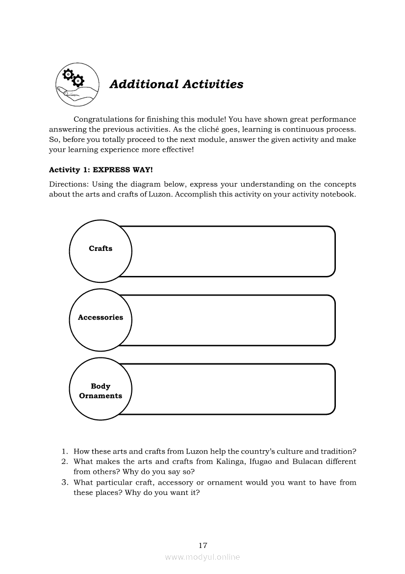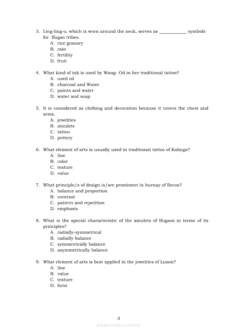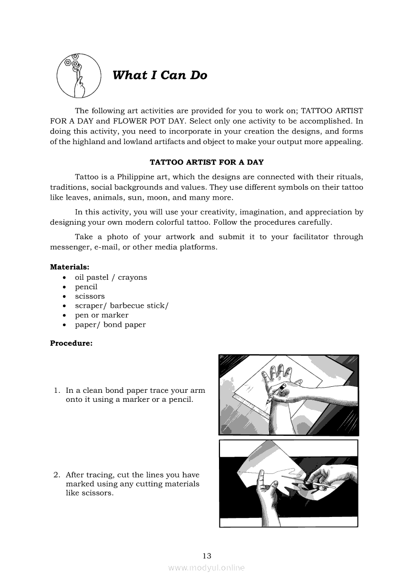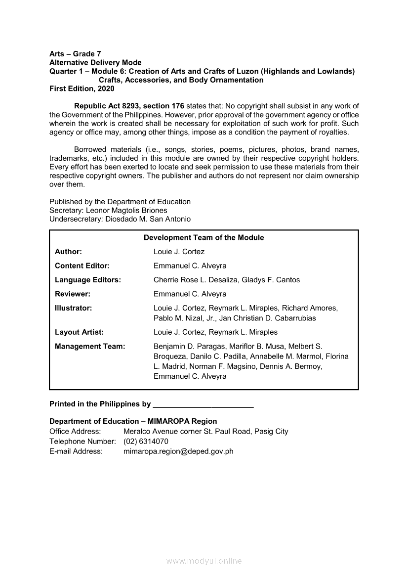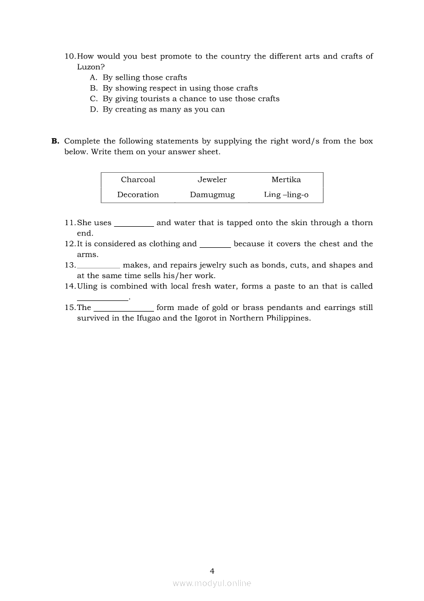 Arts 7 Module 6: Creation of Arts and Crafts of Luzon (Highlands and Lowlands) Crafts, Accessories, and Body OrnamentationApr 22, 2021 Grade 7Xiaomi Redmi Watch 5 Active 2inch LCD Display Clear Calling 5ATM Waterproof Smart Watch for only ₱3,999 ₱1,200!. Arts 7RelatedARTS Quarter 4 – Module: 4b Representative Philippine Theatrical FormsARTS Quarter 4 – Module: 4a Religious and Non-Religious FestivalsArts 7 Module 4: Arts and Crafts of Luzon Principles of ArtArts 7 Module 7: Arts and Crafts of Luzon (Highland and Lowlands) ArchitecturesArts 7 Module 2: The Majestic Architecture and Sculpture of Luzon