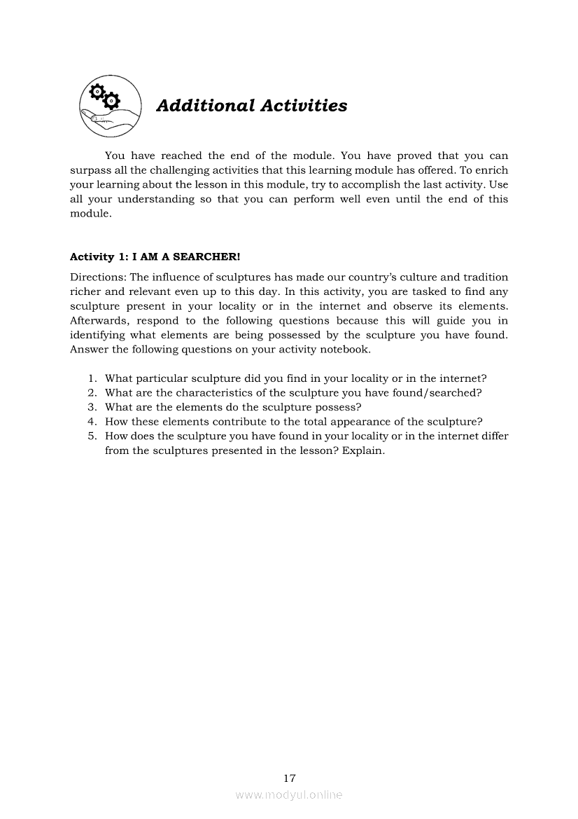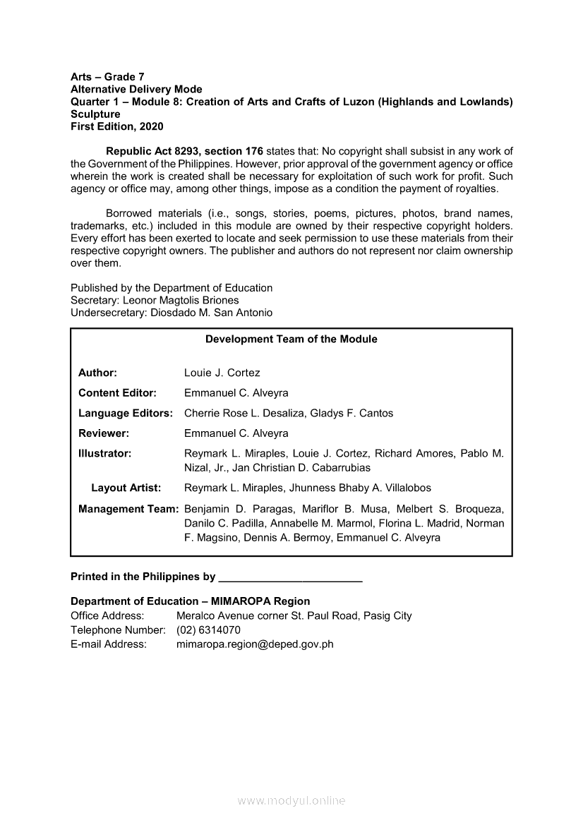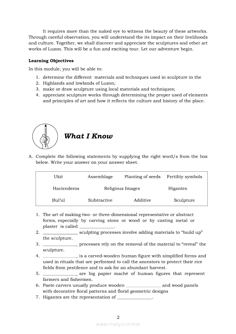 Arts 7 Module 8: Creation of Arts and Crafts of Luzon (Highlands and Lowlands) SculptureApr 22, 2021 Grade 7Xiaomi Redmi Watch 5 Active 2inch LCD Display Clear Calling 5ATM Waterproof Smart Watch for only ₱3,999 ₱1,200!. Arts 7RelatedARTS Quarter 4 – Module: 4a Religious and Non-Religious FestivalsARTS Quarter 4 – Module: 4b Representative Philippine Theatrical FormsArts 7 Second Quarter Module (PIVOT)Arts 7 Module 5: Arts and Crafts of Luzon (Highlands and Lowlands) Attire, Fabrics, and TapestriesArts 7 Module 6: Creation of Arts and Crafts of Luzon (Highlands and Lowlands) Crafts, Accessories, and Body Ornamentation