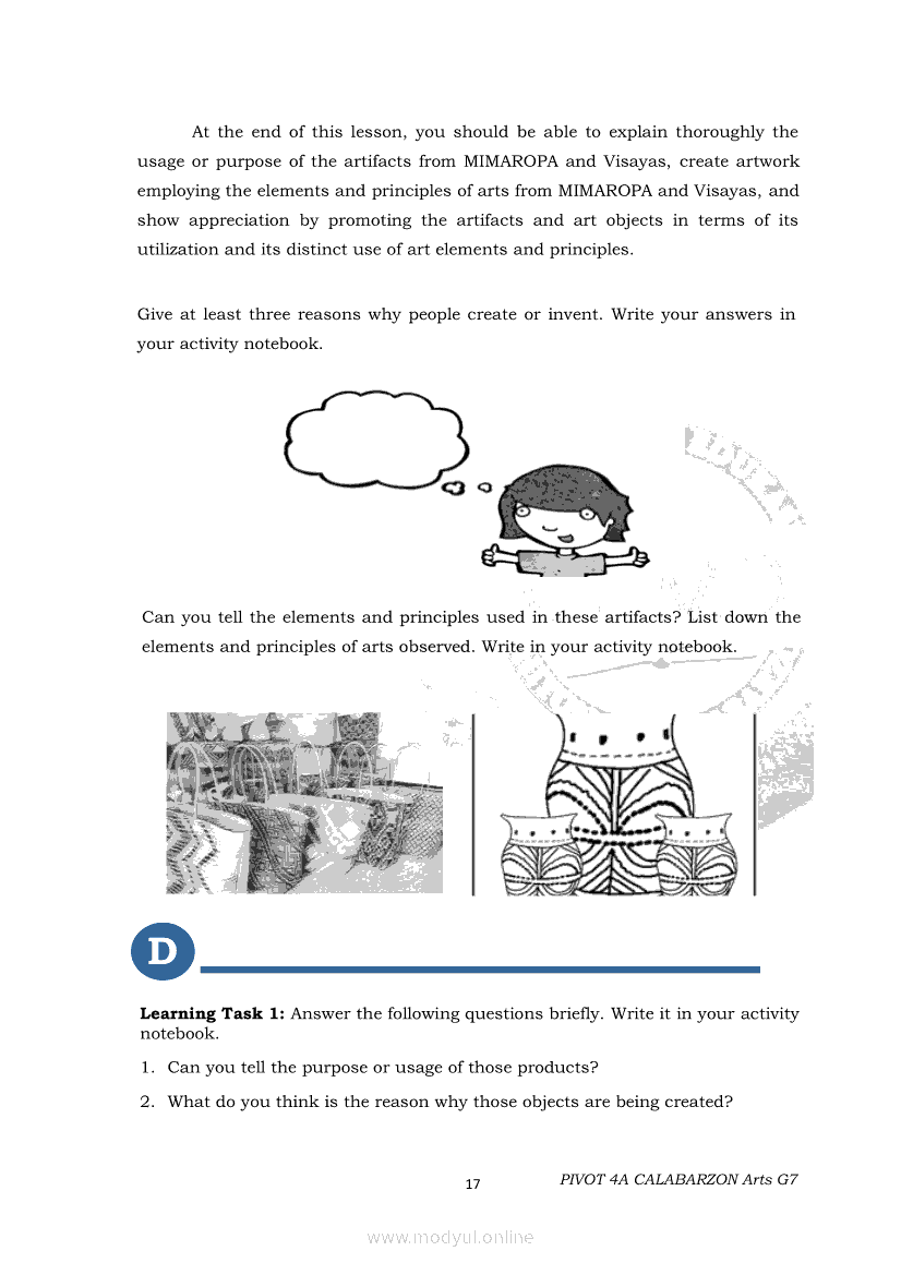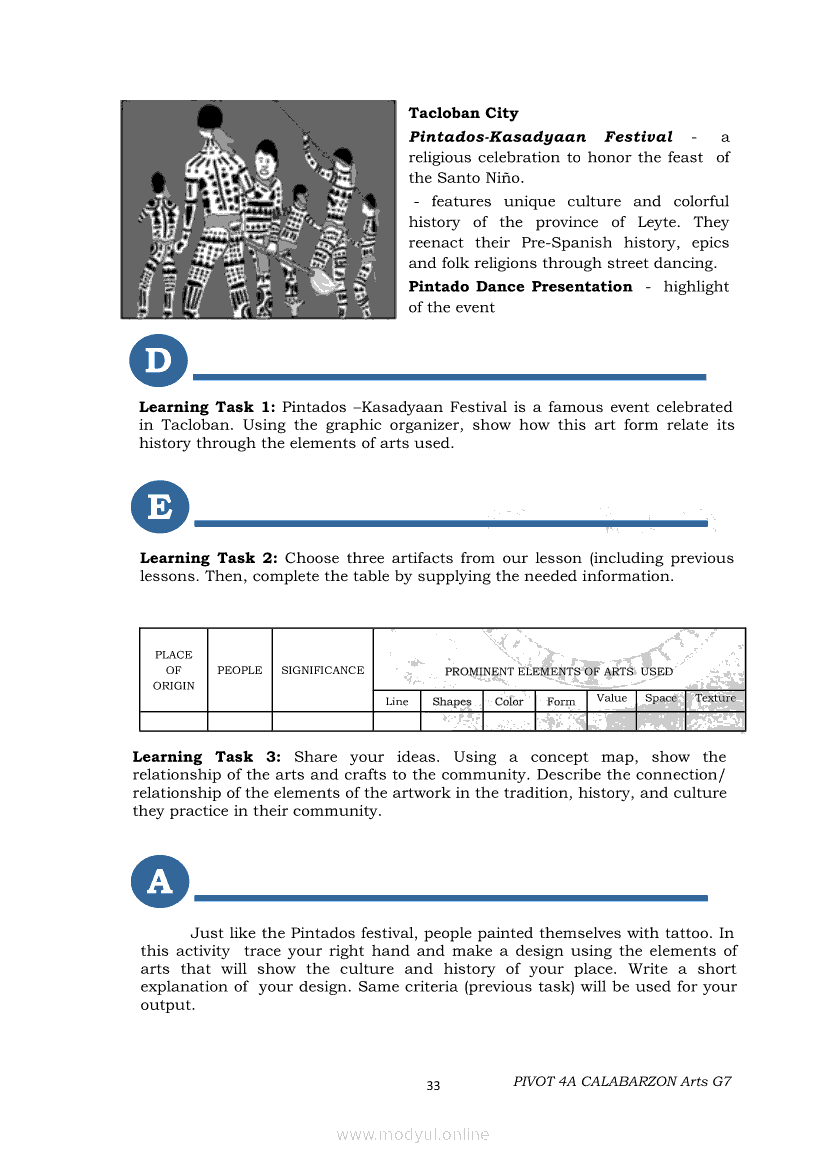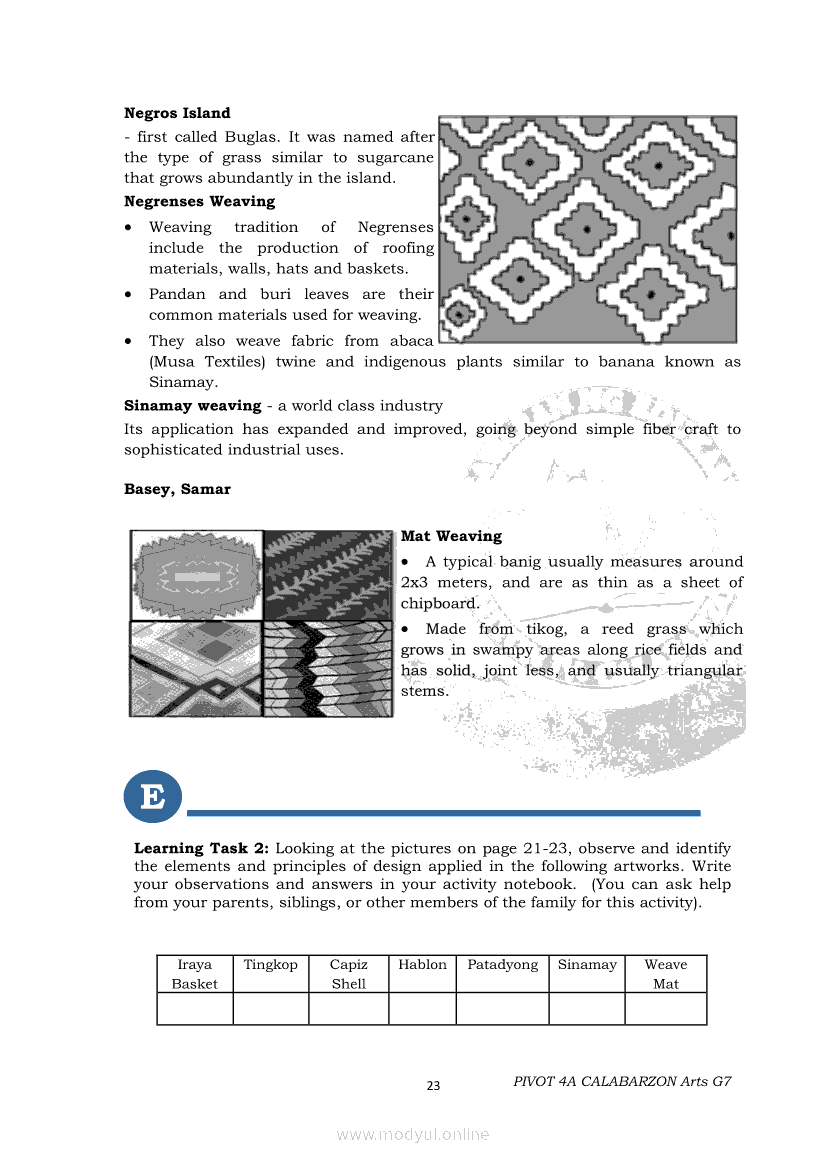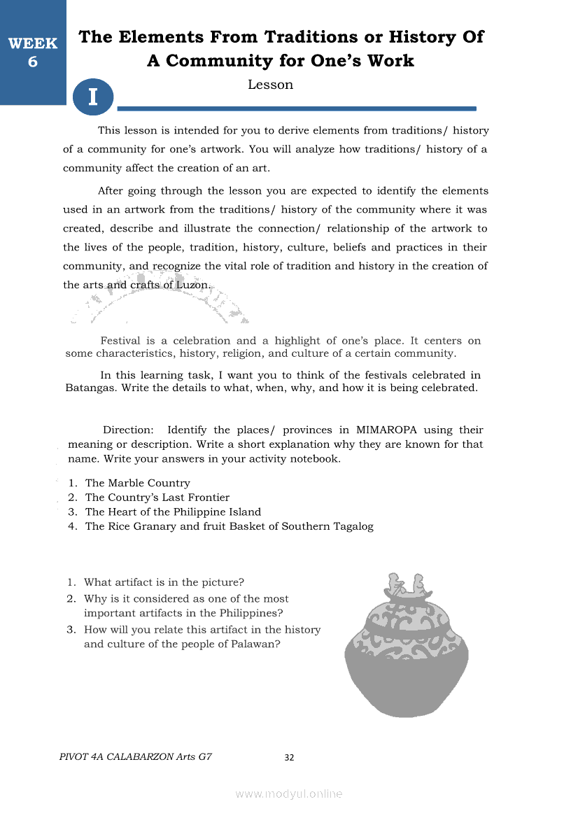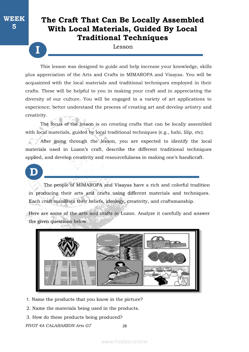 Arts 7 Second Quarter Module (PIVOT)Apr 22, 2021 Grade 7Xiaomi Redmi Watch 5 Active 2inch LCD Display Clear Calling 5ATM Waterproof Smart Watch for only ₱3,999 ₱1,200!. Arts 7RelatedARTS Quarter 4 – Module: 4a Religious and Non-Religious FestivalsARTS Quarter 4 – Module: 4b Representative Philippine Theatrical FormsArts 7 Module 3: Arts and Crafts of MIMAROPA and the Visayas When Bisaya Meets Tagalog Elements of ArtArts 7 Module 3: Arts and Crafts of Luzon Elements of Beauty and UniquenessArts 7 Module 1: Arts and Crafts of Luzon Attires, Fabrics, and Tapestries Crafts and Accessories and Body Ornamentation