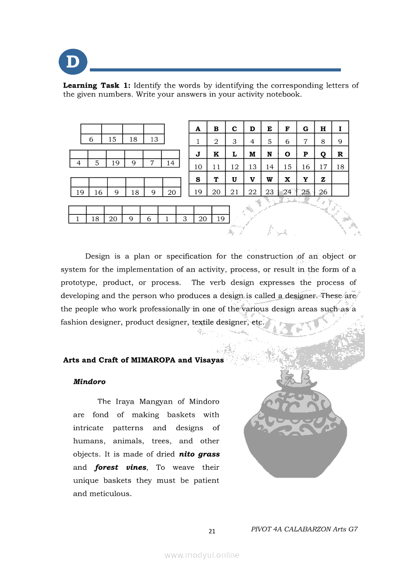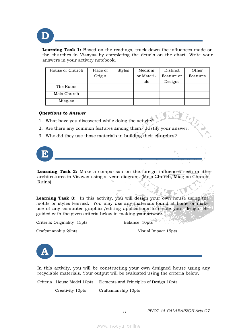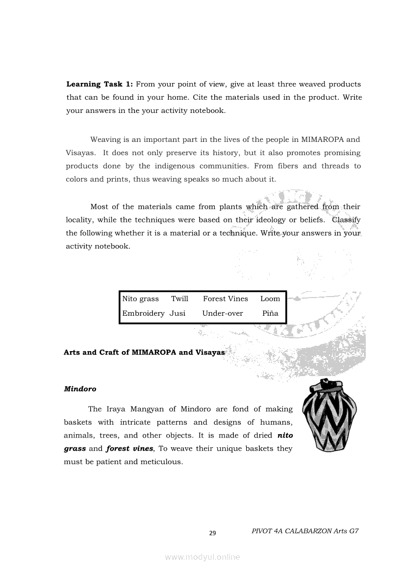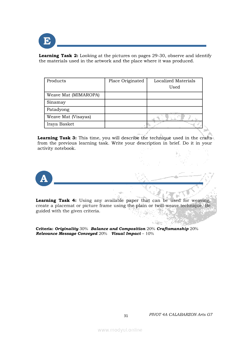 Arts 7 Second Quarter Module (PIVOT)Apr 22, 2021 Grade 7Xiaomi Redmi Watch 5 Active 2inch LCD Display Clear Calling 5ATM Waterproof Smart Watch for only ₱3,999 ₱1,200!. Arts 7RelatedARTS Quarter 4 – Module: 4a Religious and Non-Religious FestivalsARTS Quarter 4 – Module: 4b Representative Philippine Theatrical FormsArts 7 Module 3: Arts and Crafts of MIMAROPA and the Visayas When Bisaya Meets Tagalog Elements of ArtArts 7 Module 3: Arts and Crafts of Luzon Elements of Beauty and UniquenessArts 7 Module 1: Arts and Crafts of Luzon Attires, Fabrics, and Tapestries Crafts and Accessories and Body Ornamentation
