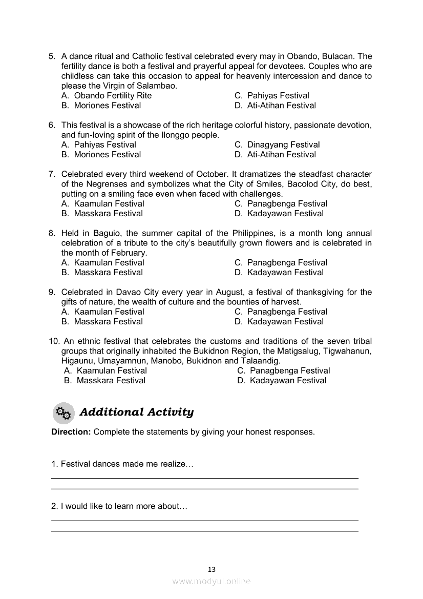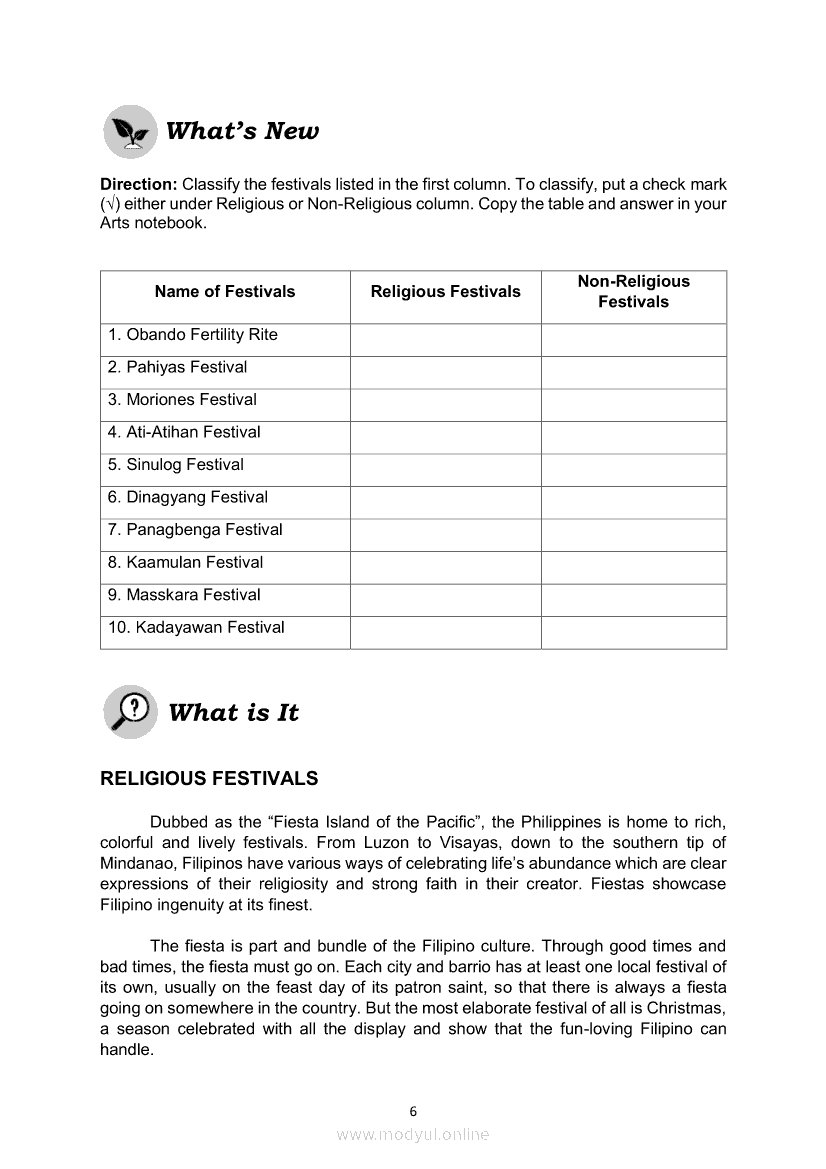 ARTS Quarter 4 – Module: 4a Religious and Non-Religious FestivalsMay 27, 2021 Grade 7Xiaomi Redmi Watch 5 Active 2inch LCD Display Clear Calling 5ATM Waterproof Smart Watch for only ₱3,999 ₱1,200!. Arts 7 4th QuarterRelatedARTS Quarter 4 – Module: 4b Representative Philippine Theatrical FormsEdukasyon sa Pagpapakatao Ikaapat na Markahan – Modyul 12.a: Ang Kahalagahan ng Mabuting Pagpapasya sa Uri ng Buhay (Linggo: Una)TILT OF THE EARTH: LENGTH OF DAYTIME, AMOUNT OF ENERGY & POSITION OF THE EARTH IN ITS ORBIT for Science Grade 7 Quarter 3 / Week 4Araling Panlipunan Ikaapat na Markahan – Modyul 2 Epekto ng Kolonyalismo at Imperyalismo sa Silangan at Timog-Silangang AsyaFilipino 7 Ikaapat na Markahan – Modyul 4 Ibong Adarna: Pag-awit ng Ibong Adarna (Saknong 330 – 570)