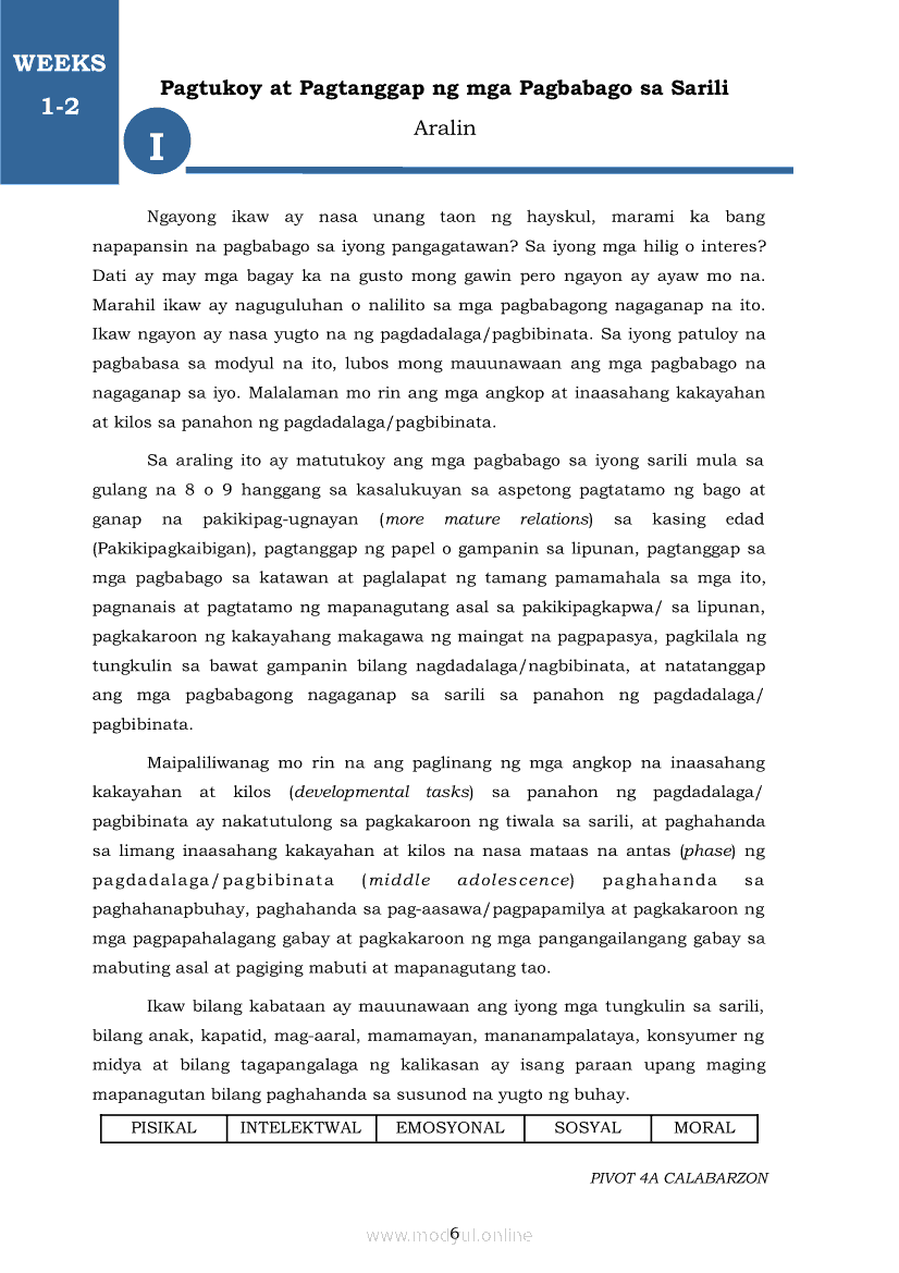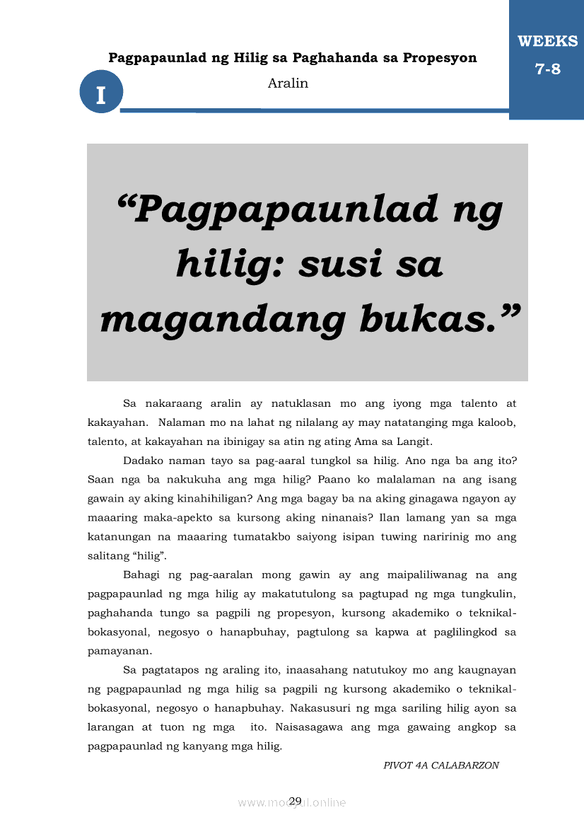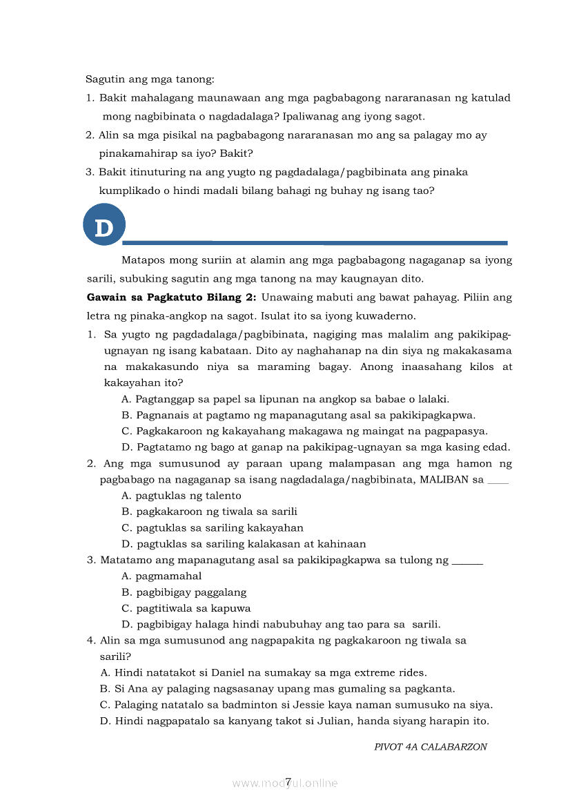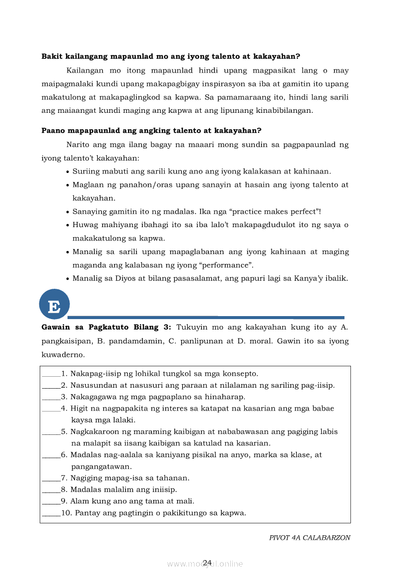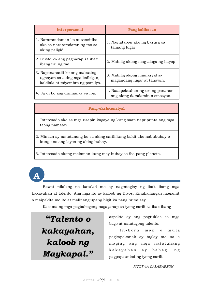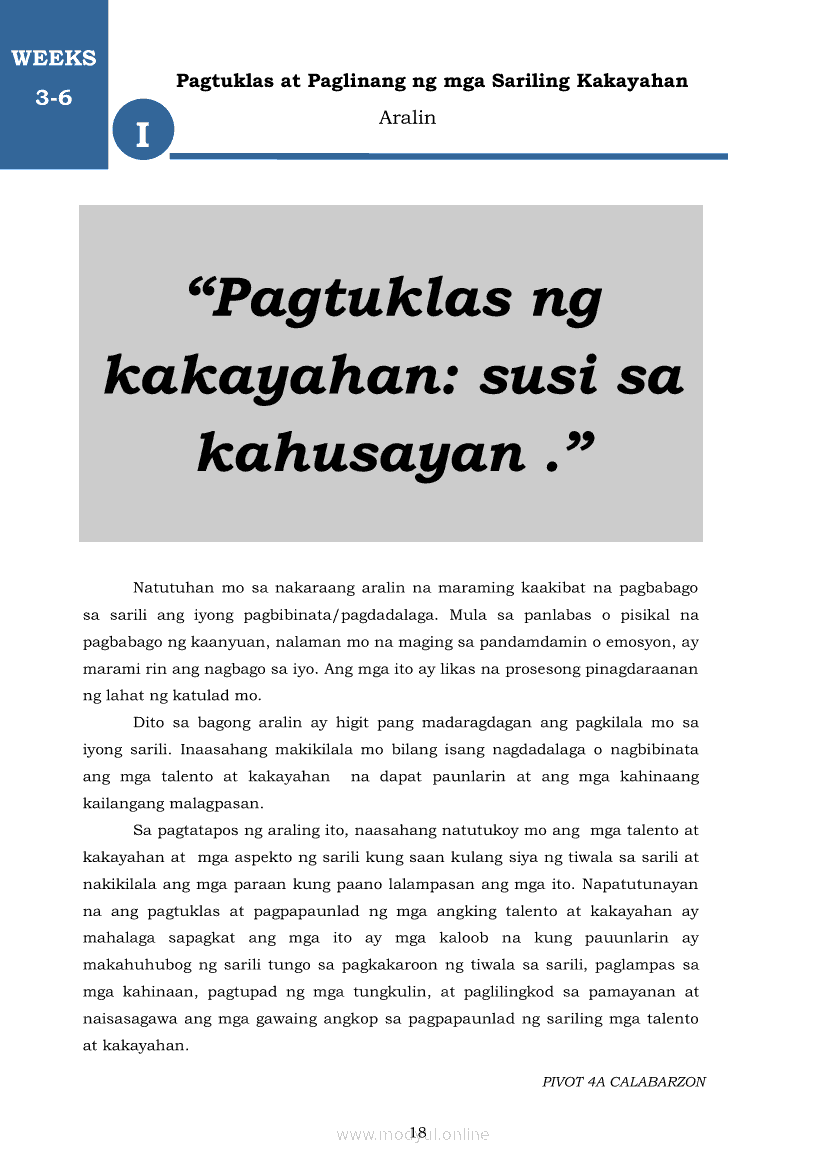 Edukasyon sa Pagpapakatao 7 ESP ModyulApr 22, 2021 Grade 7Xiaomi Redmi Watch 5 Active 2inch LCD Display Clear Calling 5ATM Waterproof Smart Watch for only ₱3,999 ₱1,200!. Edukasyon sa Pagpapakatao 7RelatedEdukasyon sa Pagpapakatao Ikaapat Markahan – Modyul: 12.b Ang Pahayag ng Personal na Layunin sa Buhay o Personal Mission Statement (Linggo:Ikalawa)Edukasyon sa Pagpapakatao Ikaapat na Markahan – Modyul 12.a: Ang Kahalagahan ng Mabuting Pagpapasya sa Uri ng Buhay (Linggo: Una)Edukasyon sa Pagpapakatao 7 Modyul 4: Talento Mo, Ating TuklasinEdukasyon sa Pagpapakatao 7 Modyul 7: Hilig Ayon sa Larangan at TuonEdukasyon sa Pagpapakatao 7 Modyul 2: Mga Kakayahan at Kilos