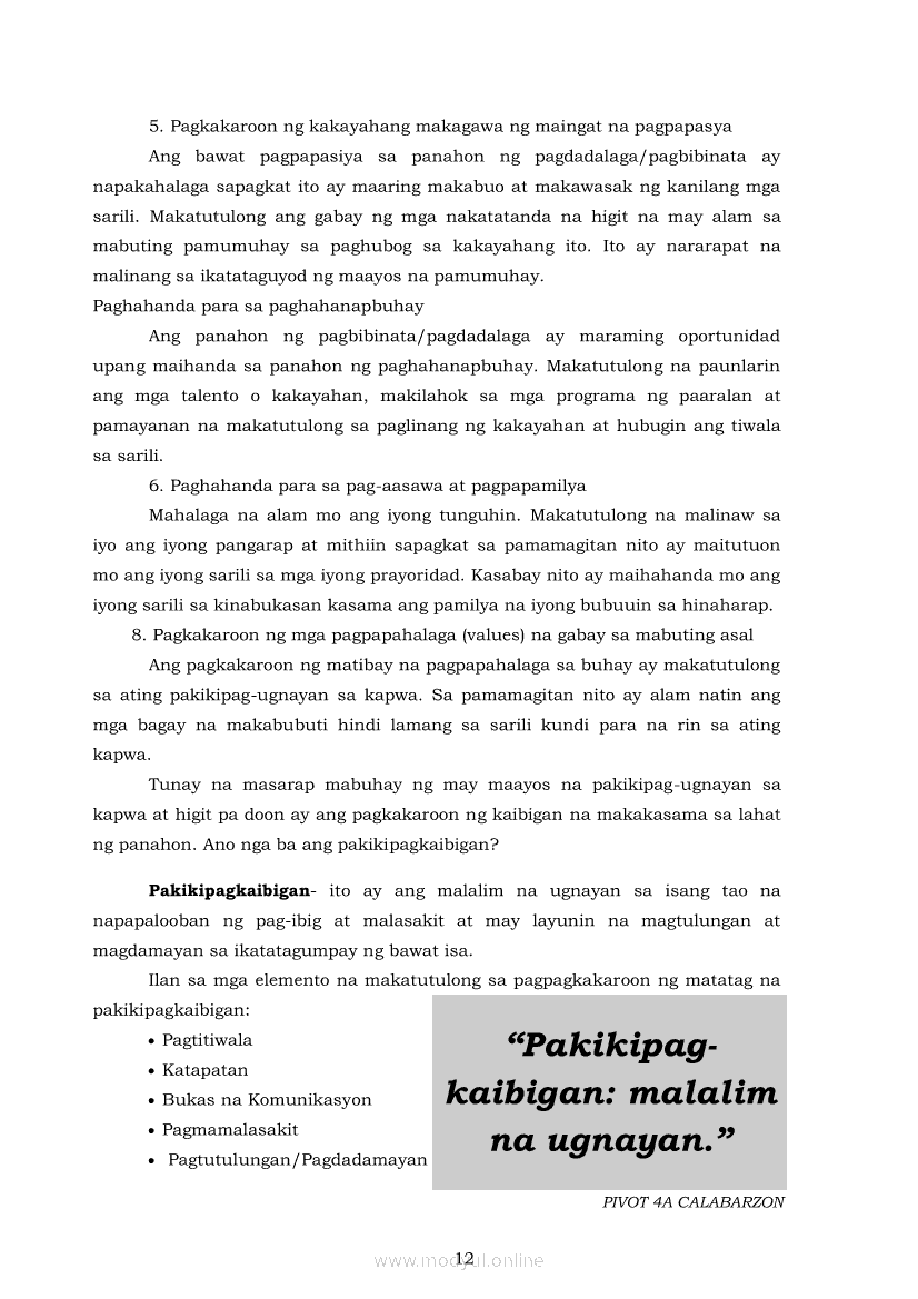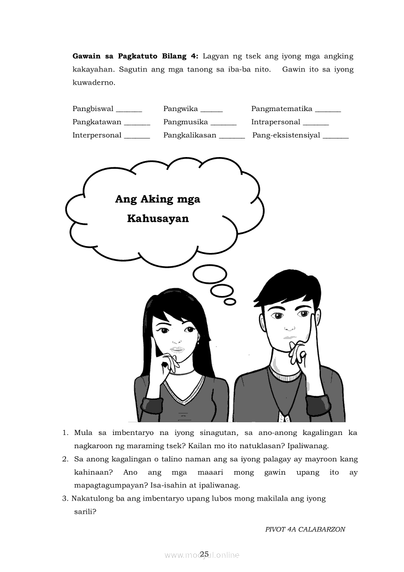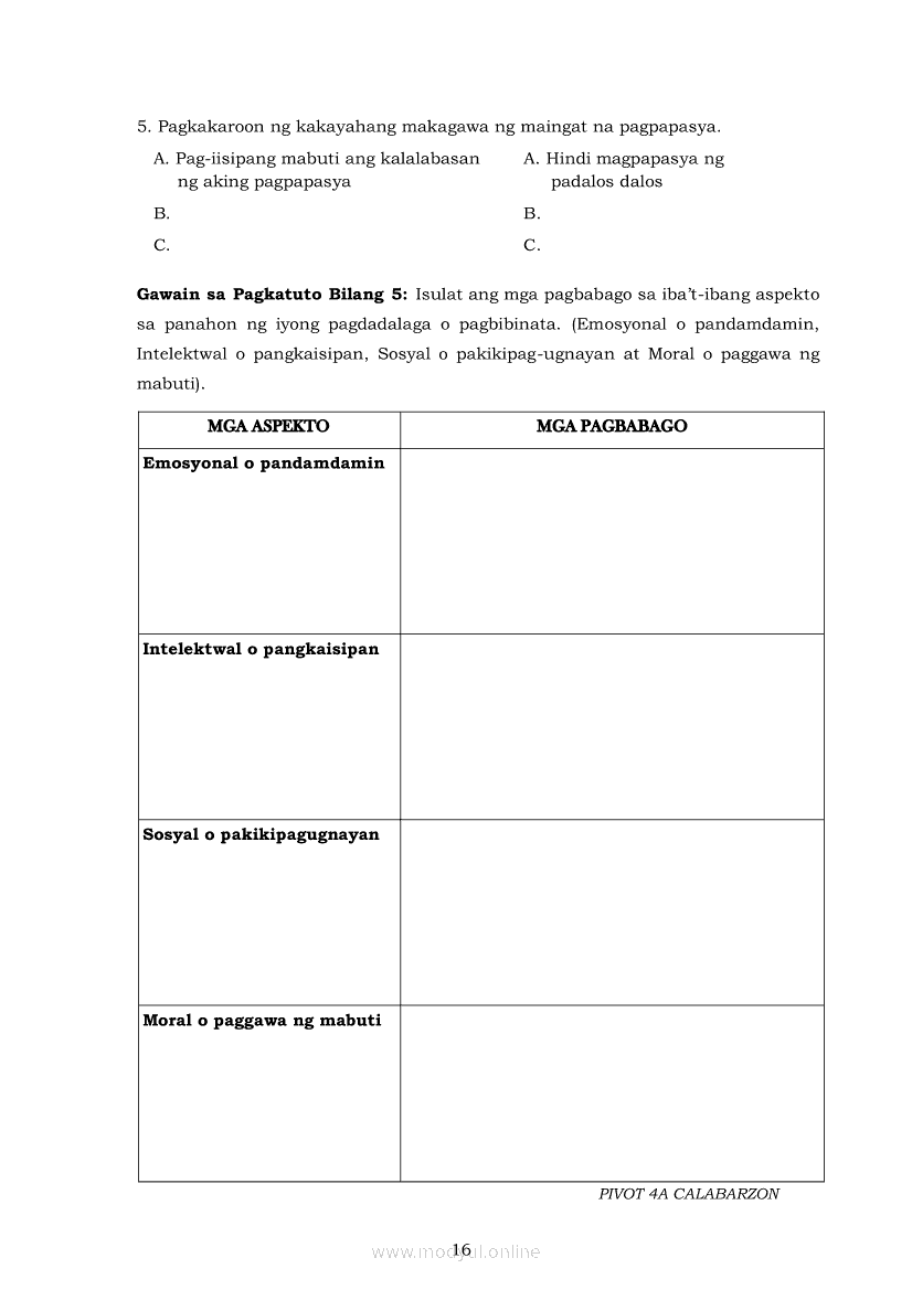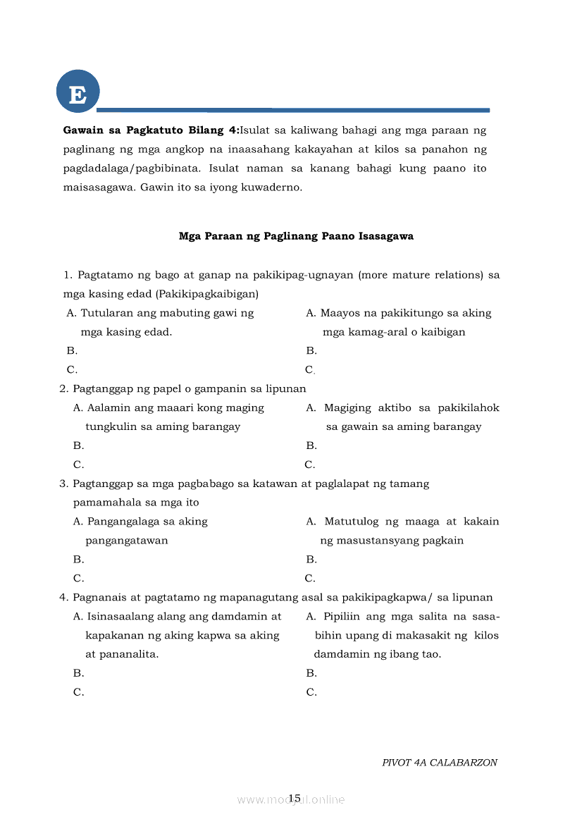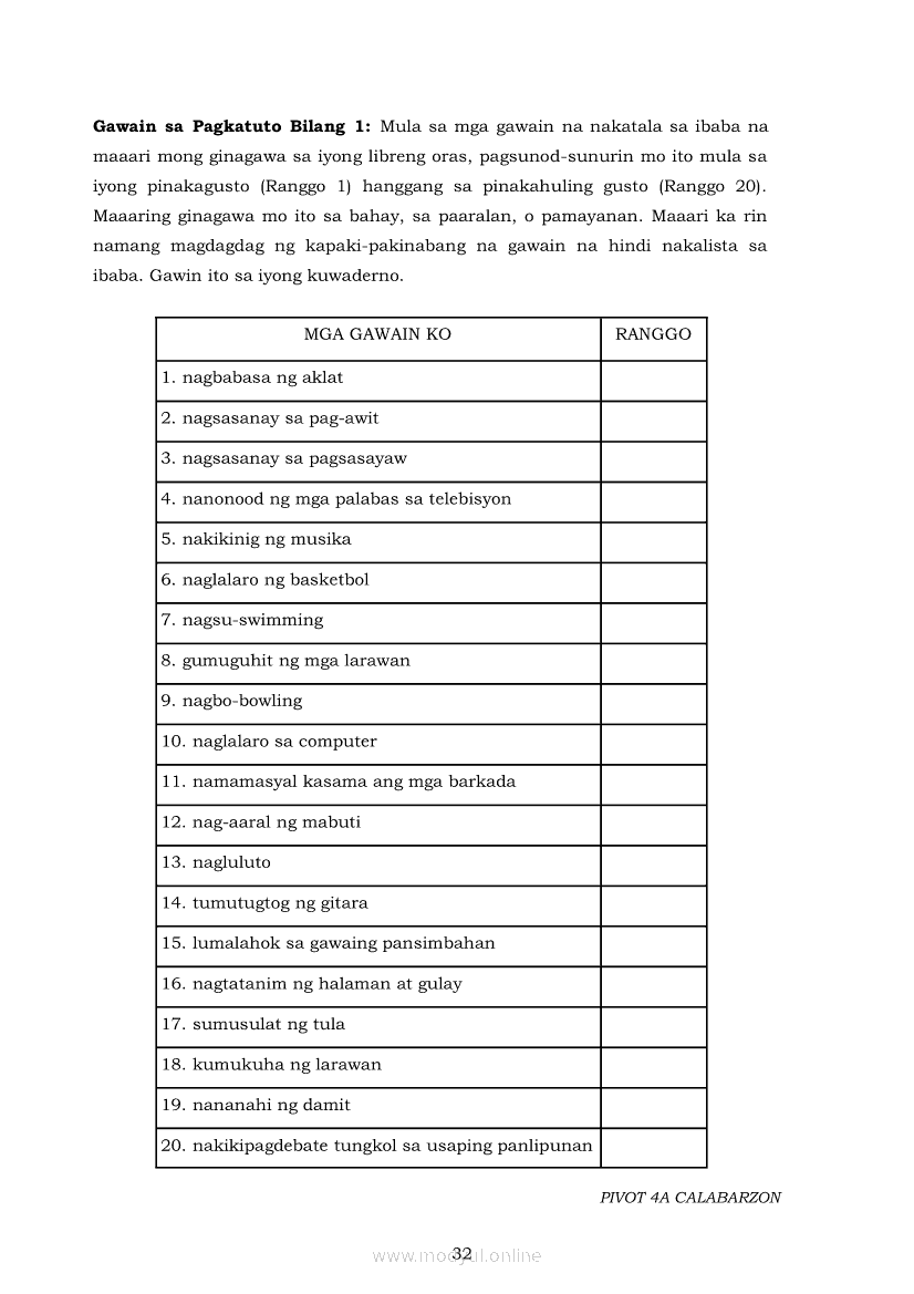 Edukasyon sa Pagpapakatao 7 ESP ModyulApr 22, 2021 Grade 7Xiaomi Redmi Watch 5 Active 2inch LCD Display Clear Calling 5ATM Waterproof Smart Watch for only ₱3,999 ₱1,200!. Edukasyon sa Pagpapakatao 7RelatedEdukasyon sa Pagpapakatao Ikaapat Markahan – Modyul: 12.b Ang Pahayag ng Personal na Layunin sa Buhay o Personal Mission Statement (Linggo:Ikalawa)Edukasyon sa Pagpapakatao Ikaapat na Markahan – Modyul 12.a: Ang Kahalagahan ng Mabuting Pagpapasya sa Uri ng Buhay (Linggo: Una)Edukasyon sa Pagpapakatao 7 Modyul 4: Talento Mo, Ating TuklasinEdukasyon sa Pagpapakatao 7 Modyul 7: Hilig Ayon sa Larangan at TuonEdukasyon sa Pagpapakatao 7 Modyul 2: Mga Kakayahan at Kilos