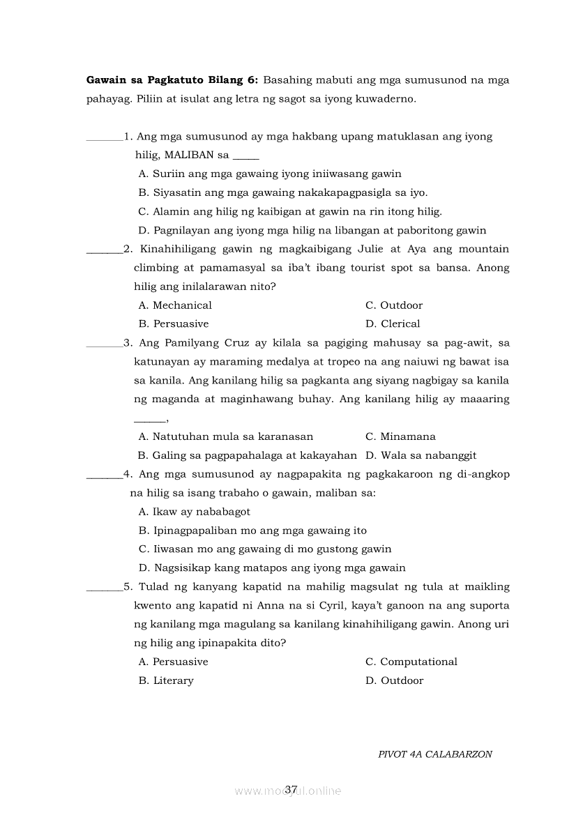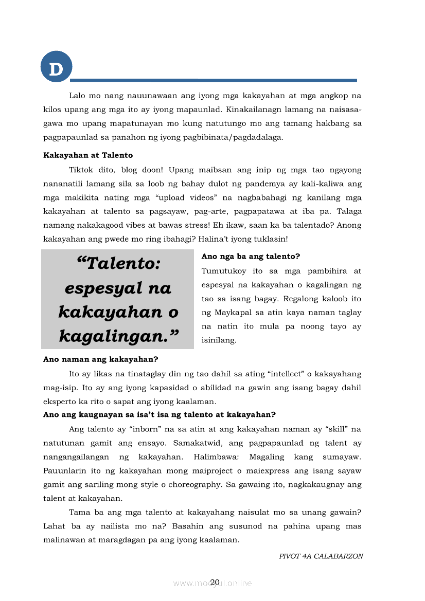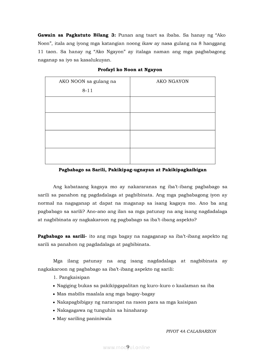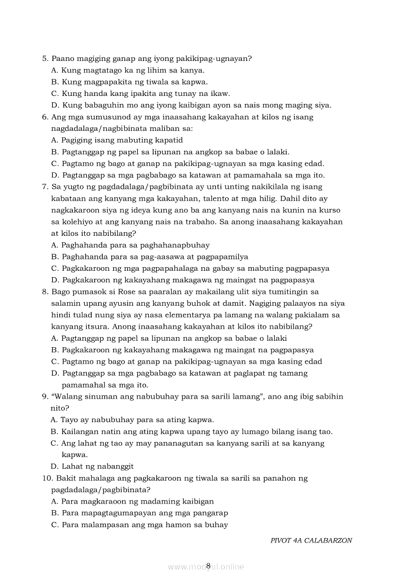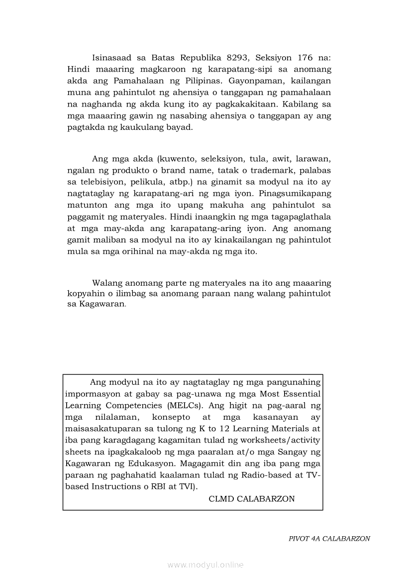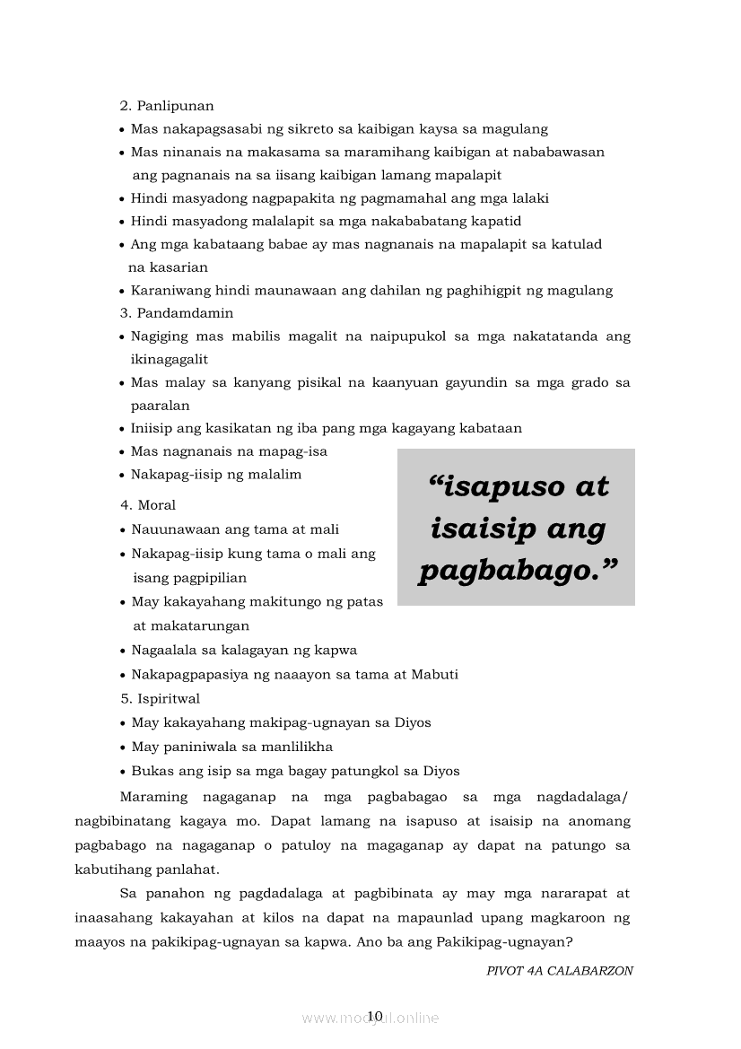Edukasyon sa Pagpapakatao 7 ESP ModyulApr 22, 2021 Grade 7Xiaomi Redmi Watch 5 Active 2inch LCD Display Clear Calling 5ATM Waterproof Smart Watch for only ₱3,999 ₱1,200!. Edukasyon sa Pagpapakatao 7RelatedEdukasyon sa Pagpapakatao Ikaapat Markahan – Modyul: 12.b Ang Pahayag ng Personal na Layunin sa Buhay o Personal Mission Statement (Linggo:Ikalawa)Edukasyon sa Pagpapakatao Ikaapat na Markahan – Modyul 12.a: Ang Kahalagahan ng Mabuting Pagpapasya sa Uri ng Buhay (Linggo: Una)Edukasyon sa Pagpapakatao 7 Modyul 4: Talento Mo, Ating TuklasinEdukasyon sa Pagpapakatao 7 Modyul 7: Hilig Ayon sa Larangan at TuonEdukasyon sa Pagpapakatao 7 Modyul 2: Mga Kakayahan at Kilos