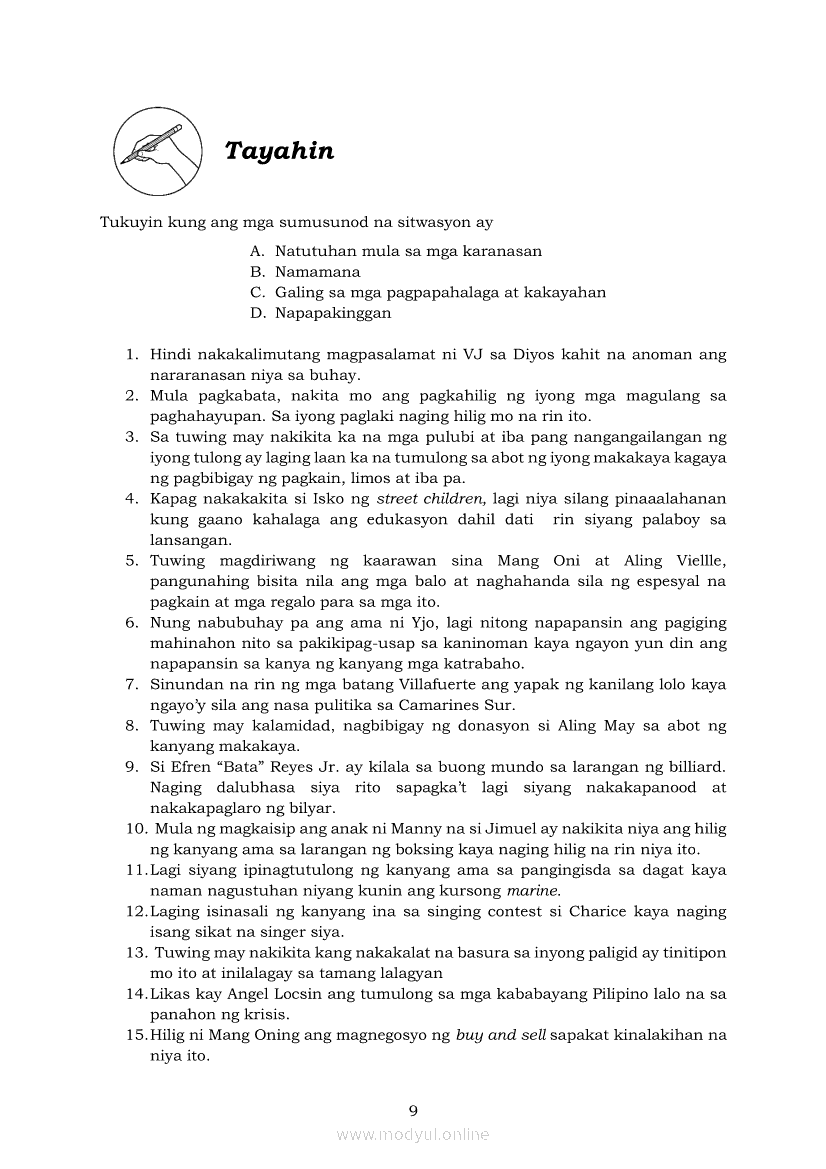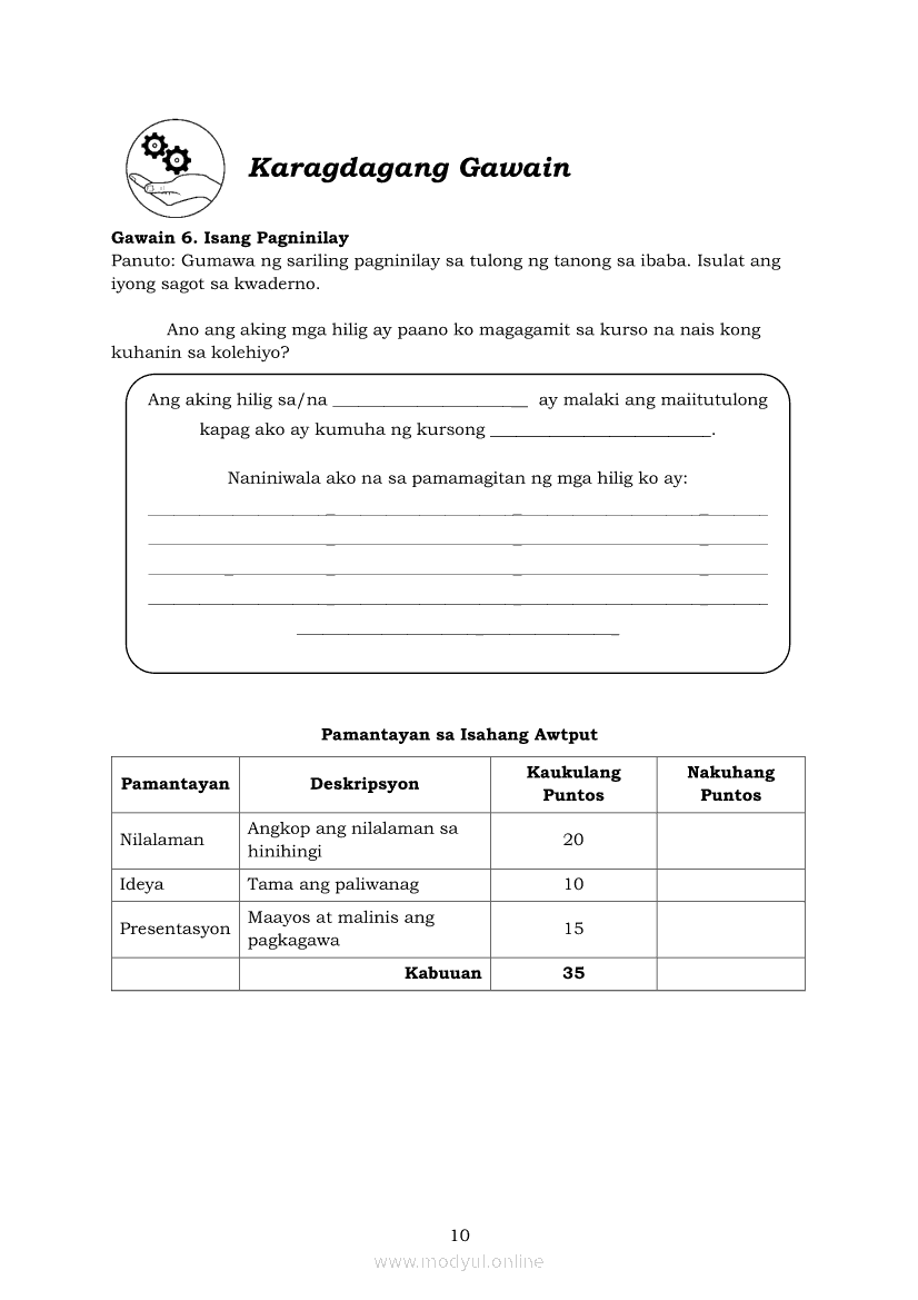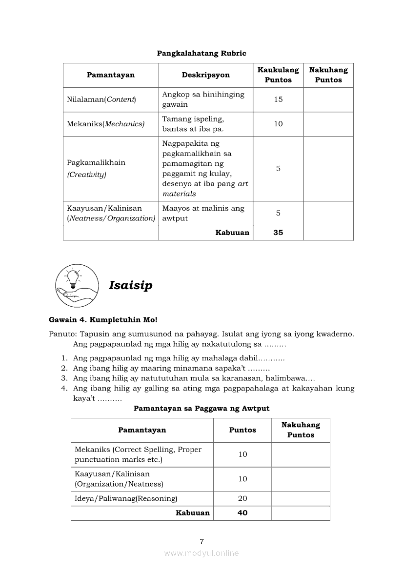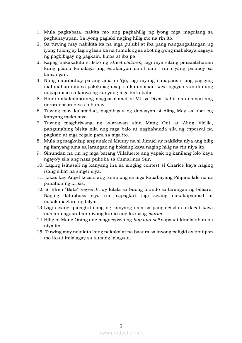 Edukasyon sa Pagpapakatao 7 Modyul 8: Pag-unlad ng Hilig Paglawak ng TungkulinApr 22, 2021 Grade 7Xiaomi Redmi Watch 5 Active 2inch LCD Display Clear Calling 5ATM Waterproof Smart Watch for only ₱3,999 ₱1,200!. Edukasyon sa Pagpapakatao 7RelatedEdukasyon sa Pagpapakatao Ikaapat na Markahan – Modyul 12.a: Ang Kahalagahan ng Mabuting Pagpapasya sa Uri ng Buhay (Linggo: Una)Edukasyon sa Pagpapakatao Ikaapat Markahan – Modyul: 12.b Ang Pahayag ng Personal na Layunin sa Buhay o Personal Mission Statement (Linggo:Ikalawa)Edukasyon sa Pagpapakatao 7 Modyul 5: Tiwala sa Sarili Ating BuuinEdukasyon sa Pagpapakatao 7 Modyul 3: Pagpapaunlad ng Tiwala sa SariliEdukasyon sa Pagpapakatao 7 Modyul 7: Hilig Ayon sa Larangan at Tuon