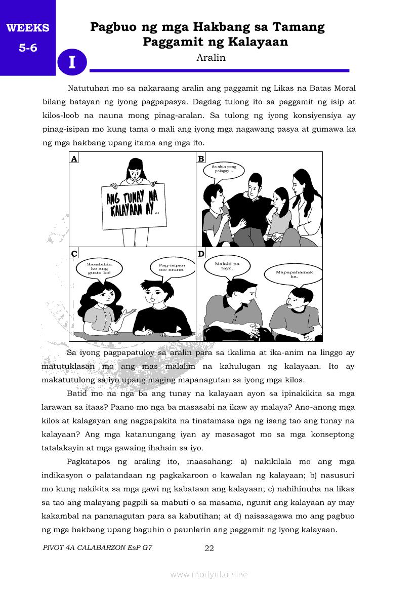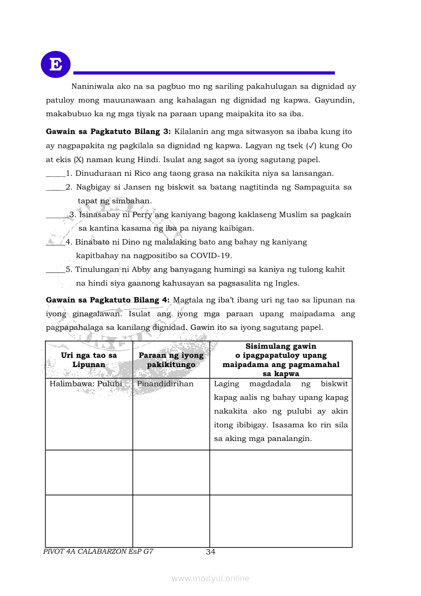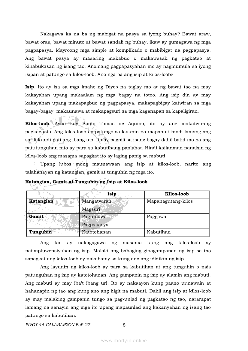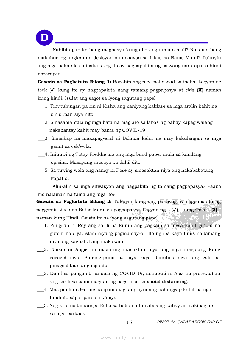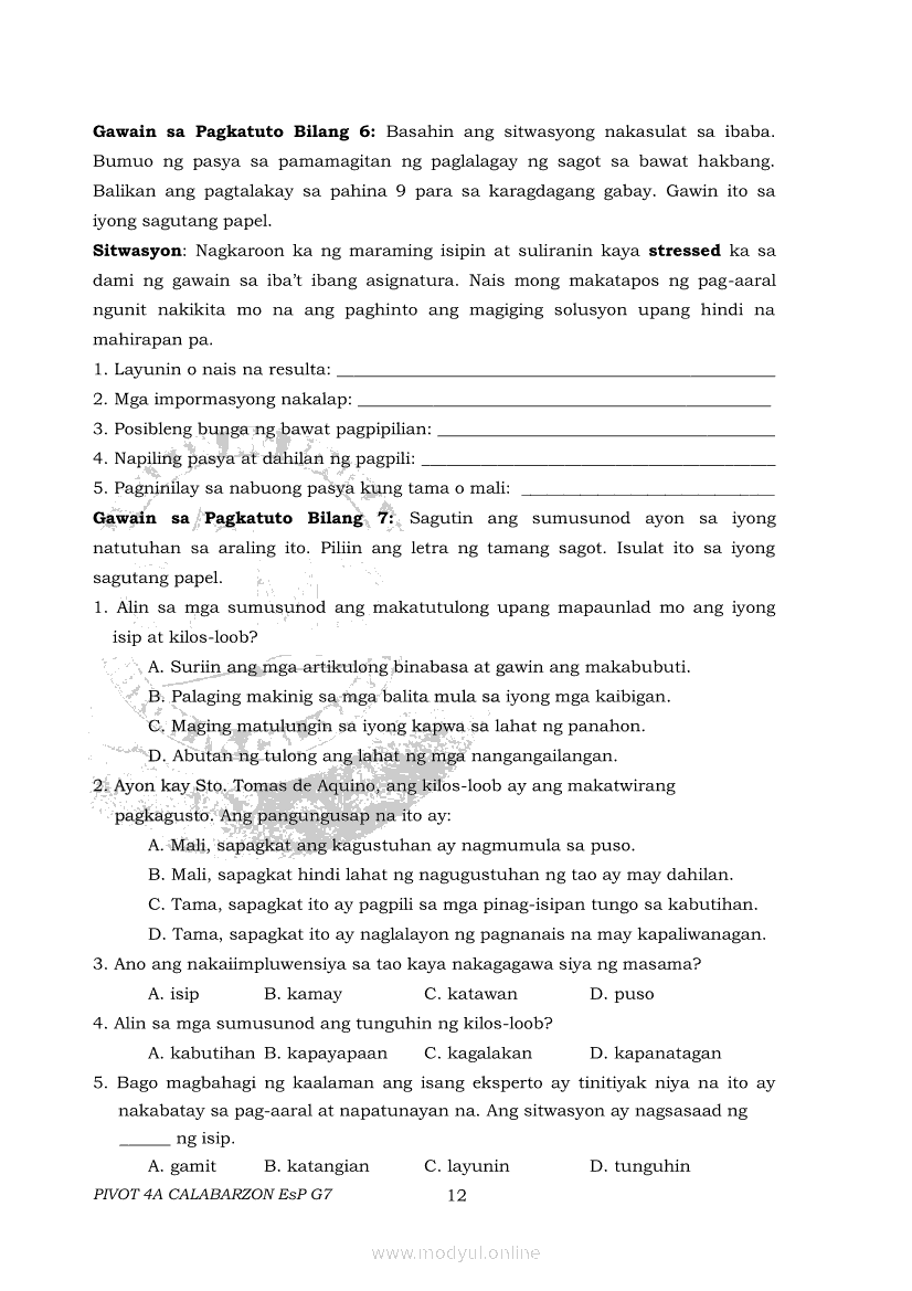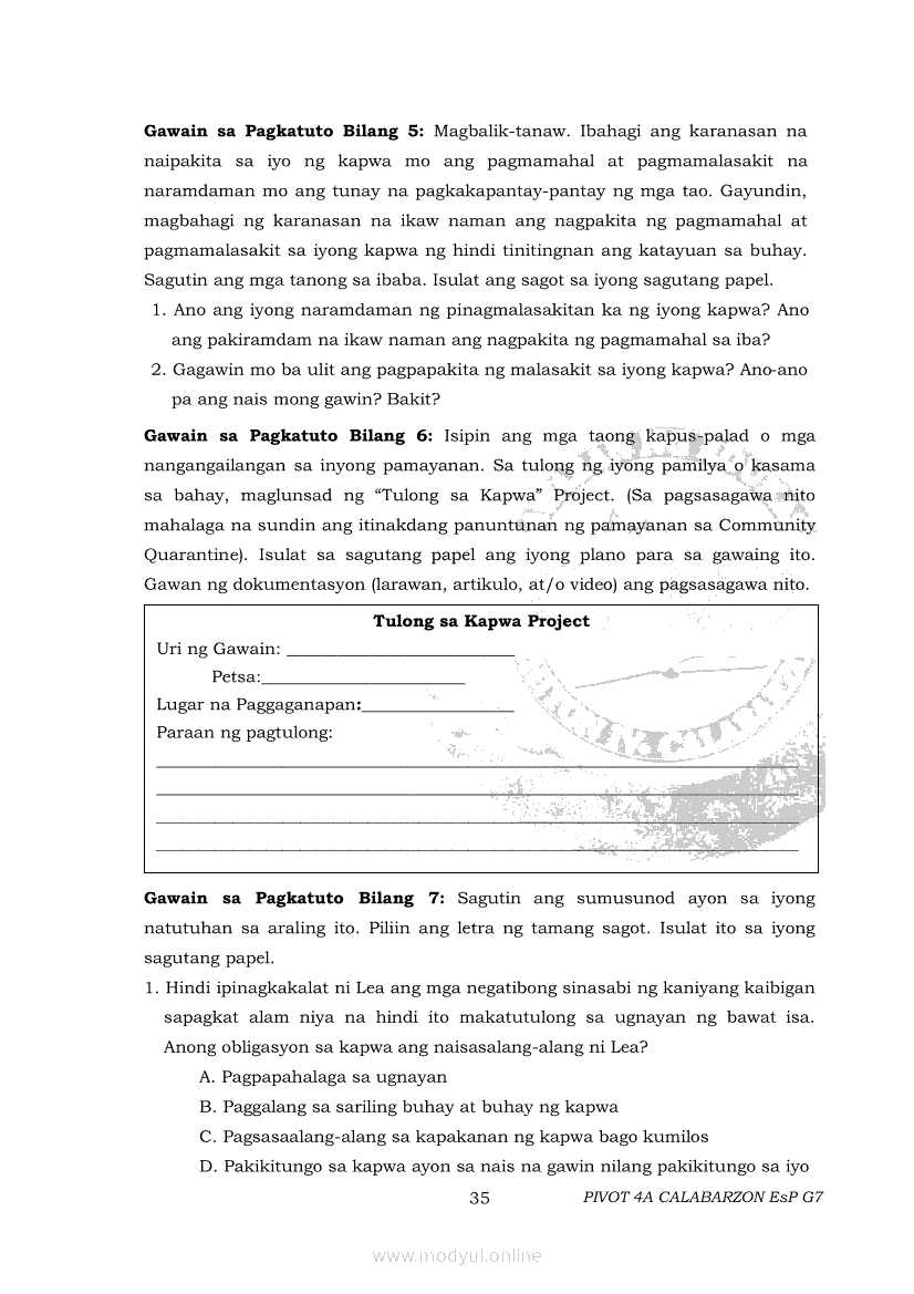Edukasyon sa Pagpapakatao 7 Modyul para sa Ikalawang Markahan (PIVOT)Apr 22, 2021 Grade 7Xiaomi Redmi Watch 5 Active 2inch LCD Display Clear Calling 5ATM Waterproof Smart Watch for only ₱3,999 ₱1,200!. Edukasyon sa Pagpapakatao 7RelatedEdukasyon sa Pagpapakatao Ikaapat Markahan – Modyul: 12.b Ang Pahayag ng Personal na Layunin sa Buhay o Personal Mission Statement (Linggo:Ikalawa)Edukasyon sa Pagpapakatao Ikaapat na Markahan – Modyul 12.a: Ang Kahalagahan ng Mabuting Pagpapasya sa Uri ng Buhay (Linggo: Una)Edukasyon sa Pagpapakatao 7 Modyul 1: Ako NgayonEdukasyon sa Pagpapakatao 7 Modyul 8: Pag-unlad ng Hilig Paglawak ng TungkulinEdukasyon sa Pagpapakatao 7 Modyul 4: Talento Mo, Ating Tuklasin