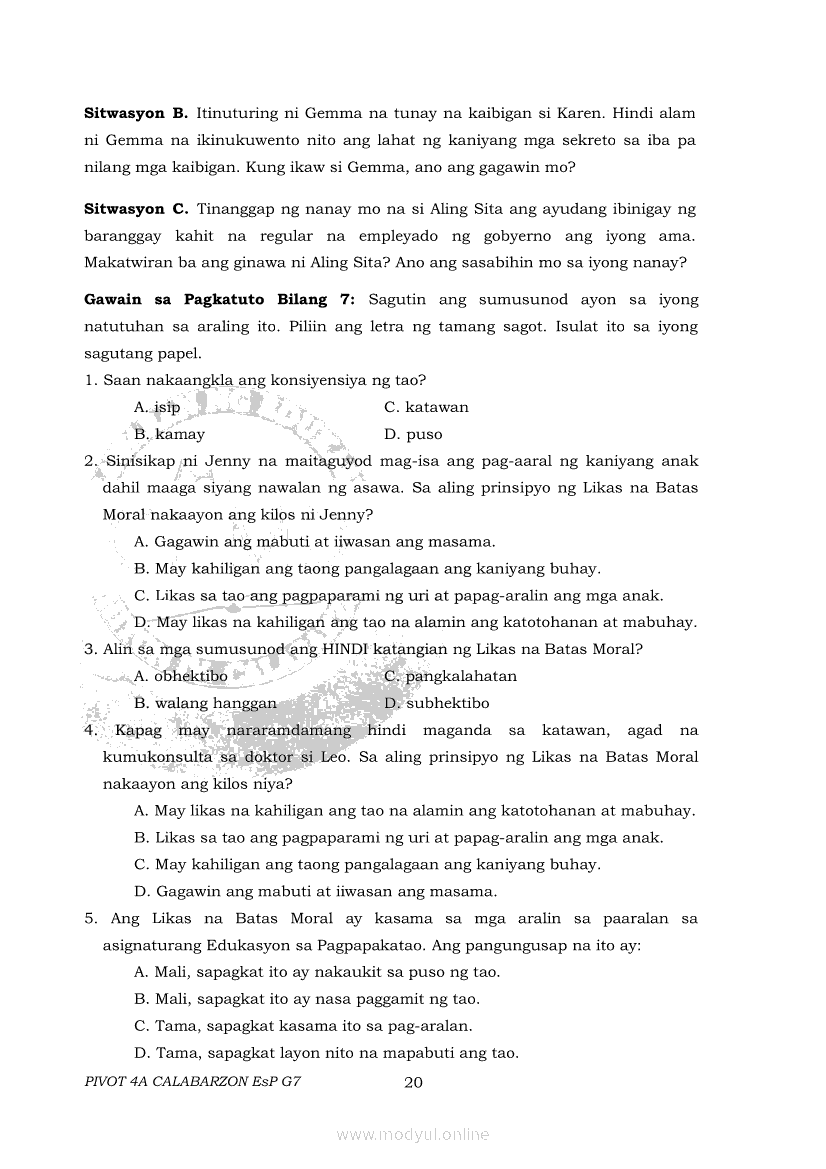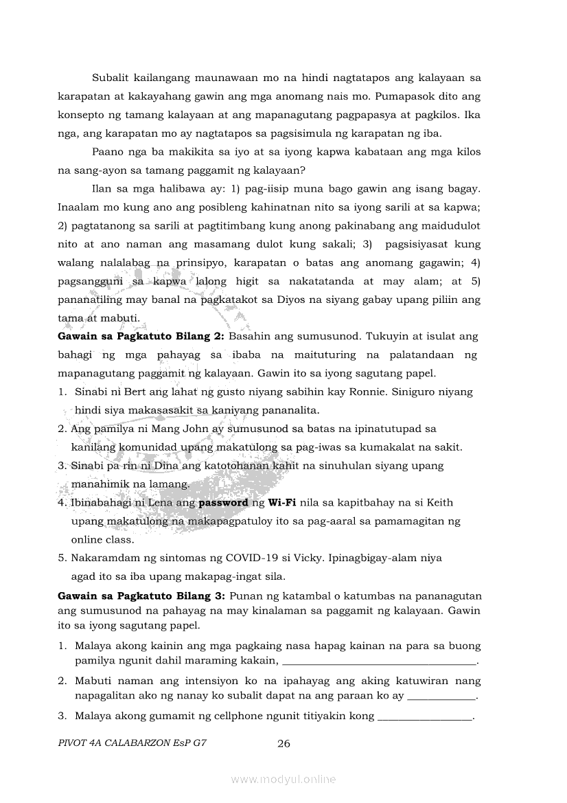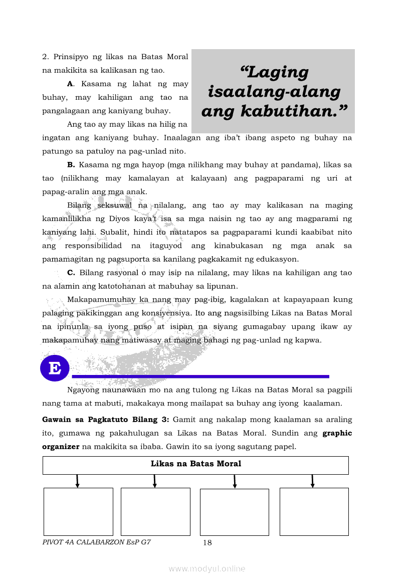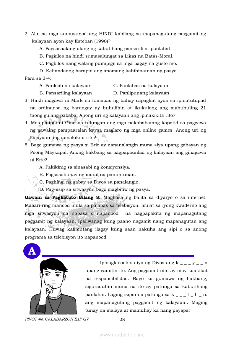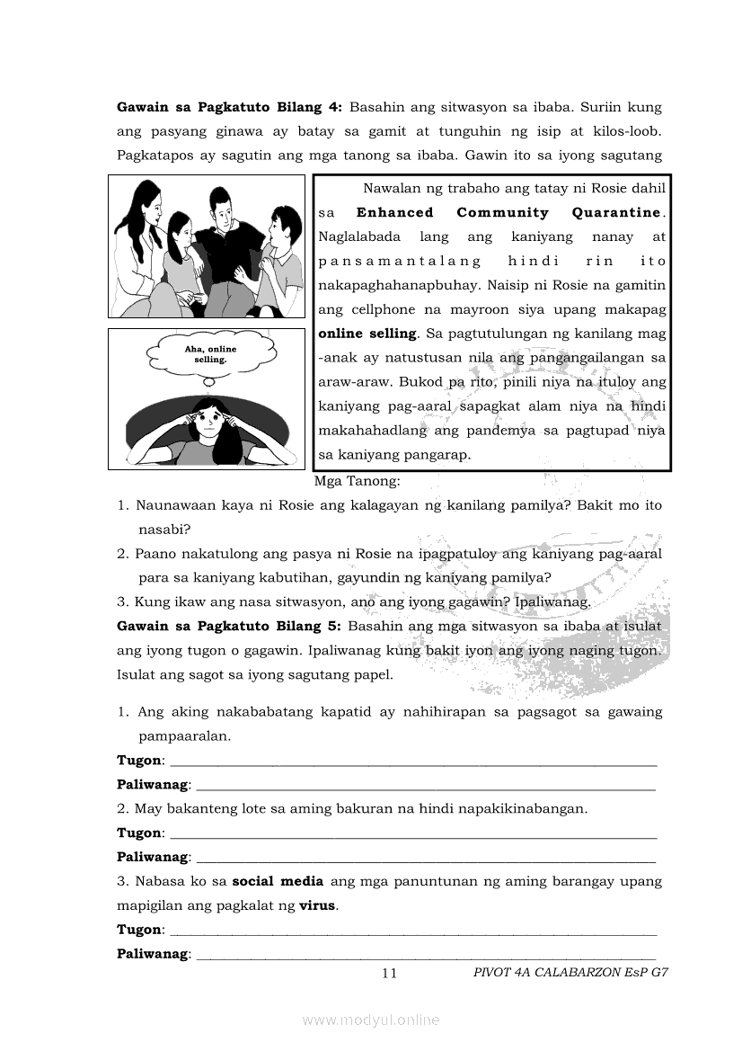 Edukasyon sa Pagpapakatao 7 Modyul para sa Ikalawang Markahan (PIVOT)Apr 22, 2021 Grade 7Xiaomi Redmi Watch 5 Active 2inch LCD Display Clear Calling 5ATM Waterproof Smart Watch for only ₱3,999 ₱1,200!. Edukasyon sa Pagpapakatao 7RelatedEdukasyon sa Pagpapakatao Ikaapat Markahan – Modyul: 12.b Ang Pahayag ng Personal na Layunin sa Buhay o Personal Mission Statement (Linggo:Ikalawa)Edukasyon sa Pagpapakatao Ikaapat na Markahan – Modyul 12.a: Ang Kahalagahan ng Mabuting Pagpapasya sa Uri ng Buhay (Linggo: Una)Edukasyon sa Pagpapakatao 7 Modyul 1: Ako NgayonEdukasyon sa Pagpapakatao 7 Modyul 8: Pag-unlad ng Hilig Paglawak ng TungkulinEdukasyon sa Pagpapakatao 7 Modyul 4: Talento Mo, Ating Tuklasin