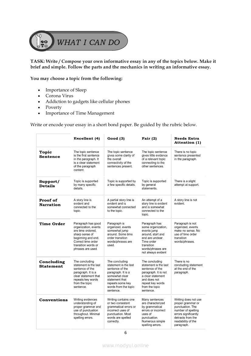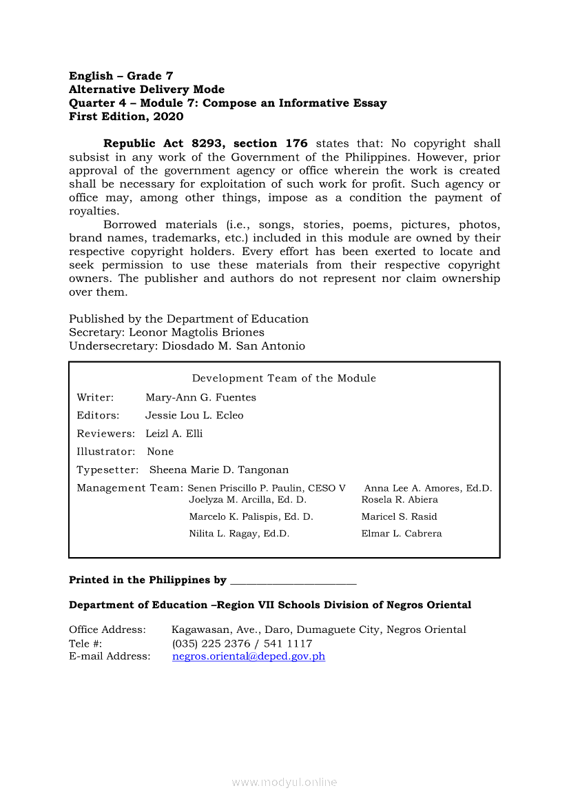 English Quarter 4 – Module 7: Compose an Informative EssayMay 27, 2021 Grade 7Xiaomi Redmi Watch 5 Active 2inch LCD Display Clear Calling 5ATM Waterproof Smart Watch for only ₱3,999 ₱1,200!. English 7 4th QuarterRelatedENGLISH Quarter 4-Module 5 Types of Literary Conflicts and their Non-Violent SolutionsEnglish Quarter 4 – Module 3: Determining the Worth of Ideas Mentioned in Text Listened toEnglish Quarter 4 – Module 6: Literature as a Tool to Assert One’s Unique Identity and to Better Understand Other PeopleAraling Panlipunan Ika-apat na Markahan – Modyul 1: Kolonyalismo at Imperyalismo sa Silangang Asya at Timog-Silangang AsyaPhysical Education Quarter 4 – Module: 4b Festival Dances in the Philippines