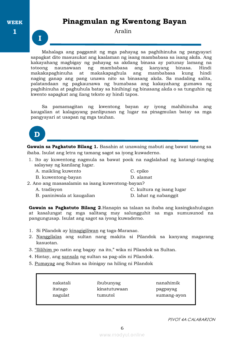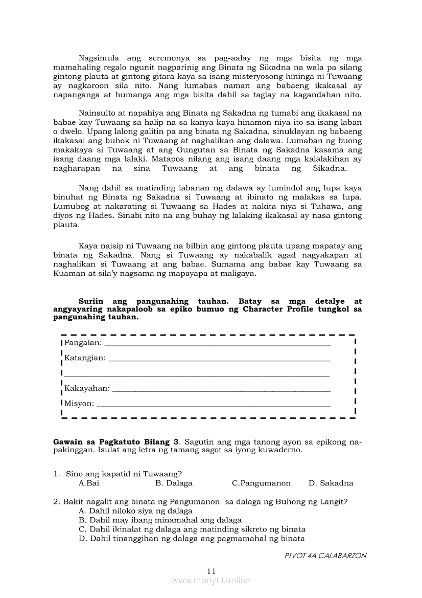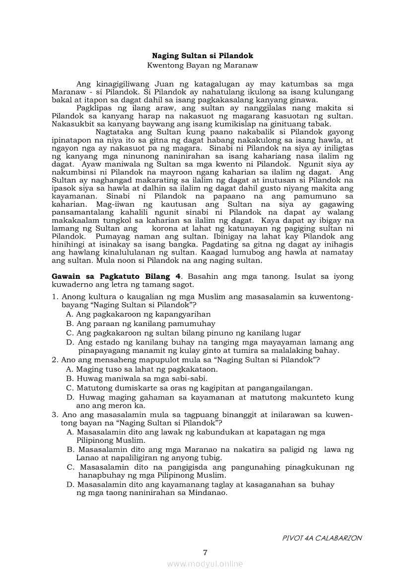 Filipino 7 Filipino ModuleApr 22, 2021 Grade 7Xiaomi Redmi Watch 5 Active 2inch LCD Display Clear Calling 5ATM Waterproof Smart Watch for only ₱3,999 ₱1,200!. Filipino 7RelatedFilipino 7 Ikaapat na Markahan Modyul 7 IBONG ADARNA: Ang Higit Pangpagsubok na Kinaharap ni Don Juan sa Reyno de los CristalesFilipino 7 Ikaapat na Markahan – Modyul 3 IBONG ADARNA: SAKNONG 117 - 336Filipino 7 Ikaapat na Markahan – Modyul 5 IBONG ADARNA: SAKNONG 567-831Filipino 7 Ikaapat na Markahan Modyul 8 IBONG ADARNA (Ang Pagtatapos)Filipino 7 Ikaapat na Markahan Modyul 6 IBONG ADARNA: Maghintay, Magpakailanman hanggang sa Ang Ikalawang Pagsubok