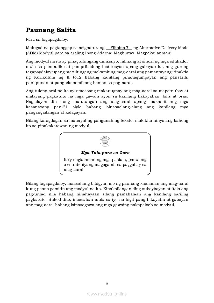 Filipino 7 Ikaapat na Markahan Modyul 6 IBONG ADARNA: Maghintay, Magpakailanman hanggang sa Ang Ikalawang PagsubokMay 27, 2021 Grade 7Xiaomi Redmi Watch 5 Active 2inch LCD Display Clear Calling 5ATM Waterproof Smart Watch for only ₱3,999 ₱1,200!. Filipino 7 4th QuarterRelatedFilipino 7 Ikaapat na Markahan – Modyul 2 IBONG ADARNA: PANAWAGAN NG MAY AKDA (SAKNONG 1 – 170)Filipino 7 Ikaapat na Markahan Modyul 7 IBONG ADARNA: Ang Higit Pangpagsubok na Kinaharap ni Don Juan sa Reyno de los CristalesFilipino 7 Ikaapat na Markahan – Modyul 1 KALIGIRANG KASAYSAYAN NG IBONG ADARNAFilipino 7 Ikaapat na Markahan – Modyul 4 Ibong Adarna: Pag-awit ng Ibong Adarna (Saknong 330 – 570)Filipino 7 Ikaapat na Markahan – Modyul 5 IBONG ADARNA: SAKNONG 567-831