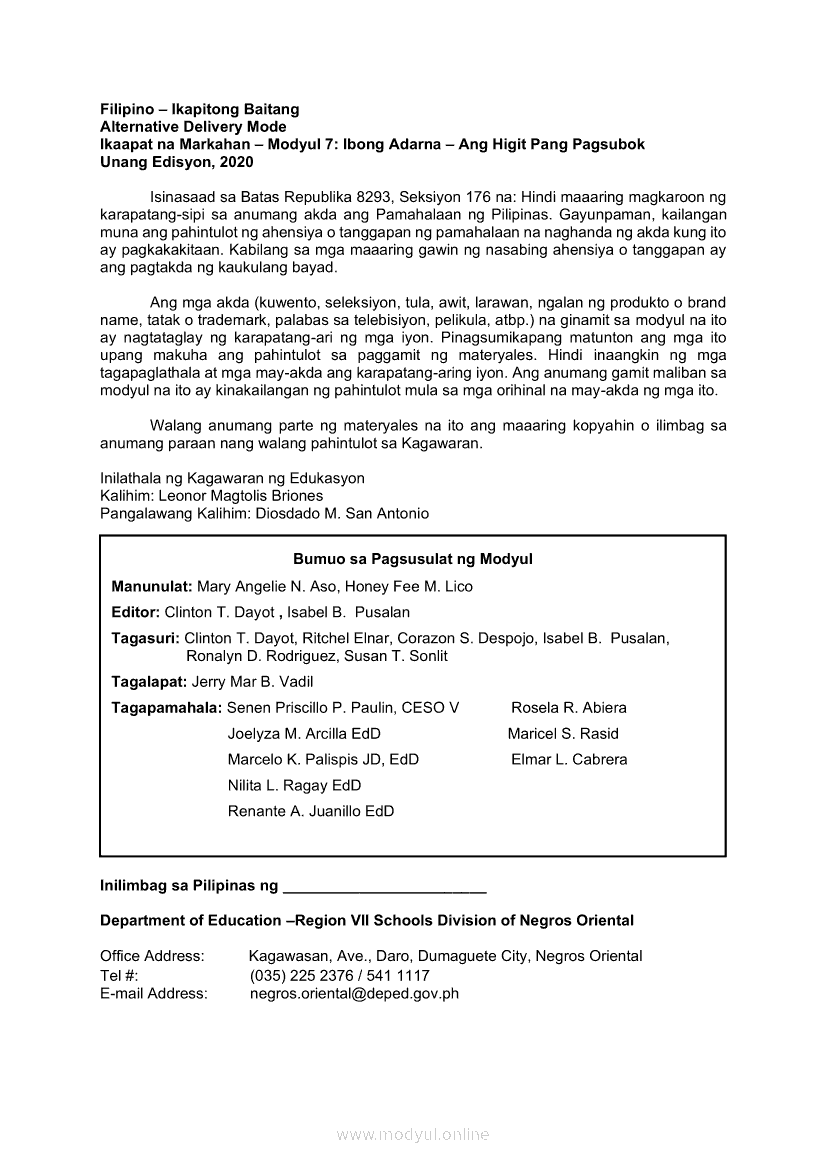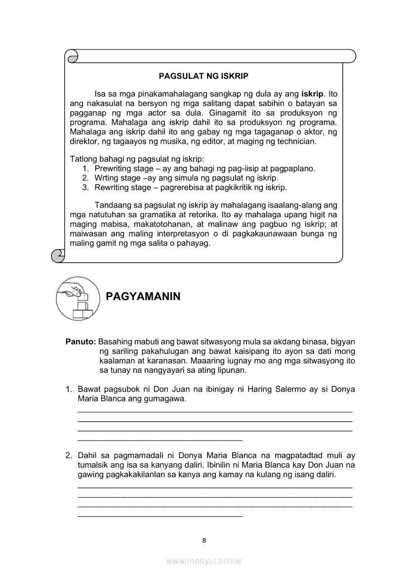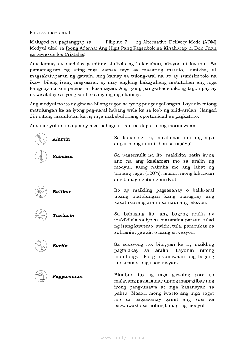 Filipino 7 Ikaapat na Markahan Modyul 7 IBONG ADARNA: Ang Higit Pangpagsubok na Kinaharap ni Don Juan sa Reyno de los CristalesMay 27, 2021 Grade 7Xiaomi Redmi Watch 5 Active 2inch LCD Display Clear Calling 5ATM Waterproof Smart Watch for only ₱3,999 ₱1,200!. Filipino 7 4th QuarterRelatedFilipino 7 Ikaapat na Markahan – Modyul 5 IBONG ADARNA: SAKNONG 567-831Filipino 7 Ikaapat na Markahan – Modyul 1 KALIGIRANG KASAYSAYAN NG IBONG ADARNAFilipino 7 Ikaapat na Markahan – Modyul 2 IBONG ADARNA: PANAWAGAN NG MAY AKDA (SAKNONG 1 – 170)Filipino 7 Ikaapat na Markahan – Modyul 3 IBONG ADARNA: SAKNONG 117 - 336Filipino 7 Ikaapat na Markahan – Modyul 4 Ibong Adarna: Pag-awit ng Ibong Adarna (Saknong 330 – 570)