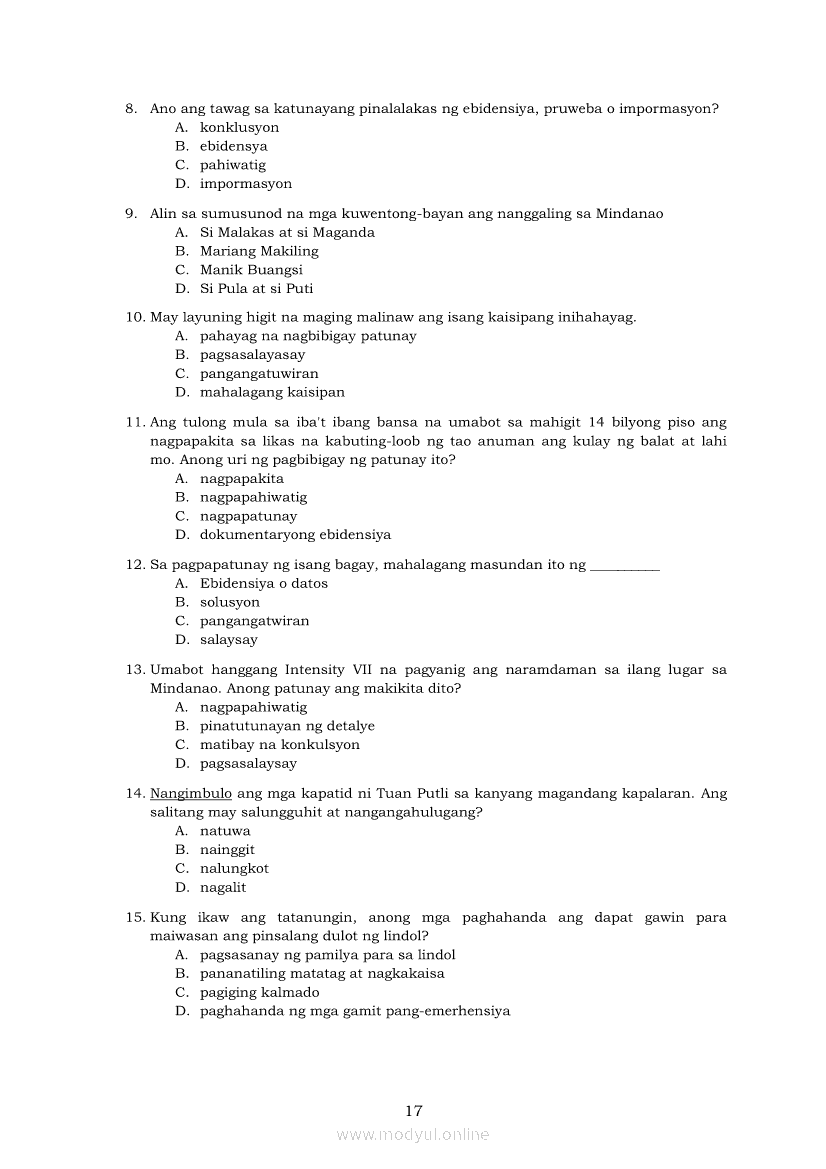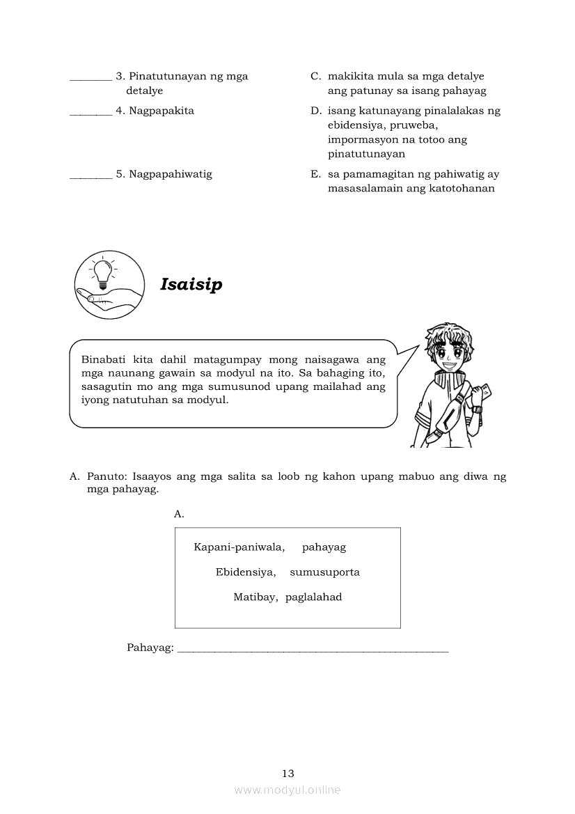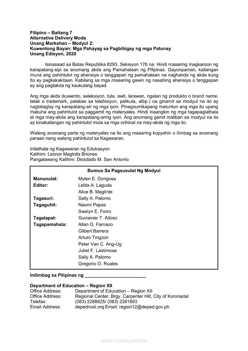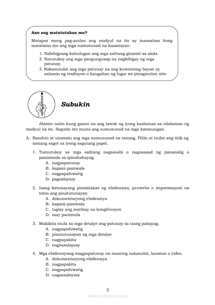 Filipino 7 Modyul 2: Kuwentong - Bayan: Mga Pahayag Sa Pagbibigay Ng Mga PatunayApr 22, 2021 Grade 7Xiaomi Redmi Watch 5 Active 2inch LCD Display Clear Calling 5ATM Waterproof Smart Watch for only ₱3,999 ₱1,200!. Filipino 7RelatedFilipino 7 Ikaapat na Markahan – Modyul 2 IBONG ADARNA: PANAWAGAN NG MAY AKDA (SAKNONG 1 – 170)Filipino 7 Ikaapat na Markahan Modyul 6 IBONG ADARNA: Maghintay, Magpakailanman hanggang sa Ang Ikalawang PagsubokFilipino 7 Ikaapat na Markahan – Modyul 3 IBONG ADARNA: SAKNONG 117 - 336Filipino 7 Ikaapat na Markahan Modyul 8 IBONG ADARNA (Ang Pagtatapos)Filipino 7 Ikaapat na Markahan – Modyul 4 Ibong Adarna: Pag-awit ng Ibong Adarna (Saknong 330 – 570)