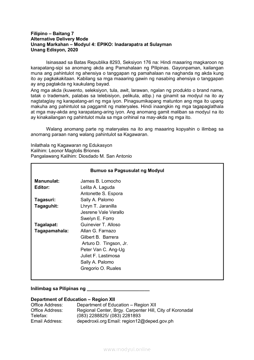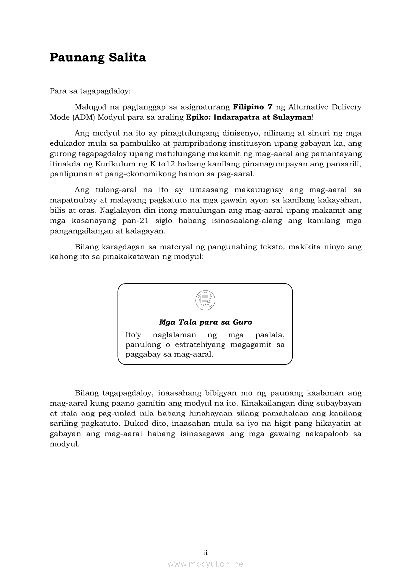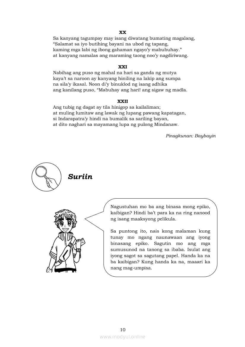 Filipino 7 Modyul 4: Epiko: Indarapatra at SulaymanApr 22, 2021 Grade 7Xiaomi Redmi Watch 5 Active 2inch LCD Display Clear Calling 5ATM Waterproof Smart Watch for only ₱3,999 ₱1,200!. Filipino 7RelatedFilipino 7 Ikaapat na Markahan – Modyul 5 IBONG ADARNA: SAKNONG 567-831Filipino 7 Ikaapat na Markahan – Modyul 4 Ibong Adarna: Pag-awit ng Ibong Adarna (Saknong 330 – 570)Filipino 7 Ikaapat na Markahan Modyul 7 IBONG ADARNA: Ang Higit Pangpagsubok na Kinaharap ni Don Juan sa Reyno de los CristalesFilipino 7 Ikaapat na Markahan Modyul 8 IBONG ADARNA (Ang Pagtatapos)Filipino 7 Ikaapat na Markahan – Modyul 2 IBONG ADARNA: PANAWAGAN NG MAY AKDA (SAKNONG 1 – 170)