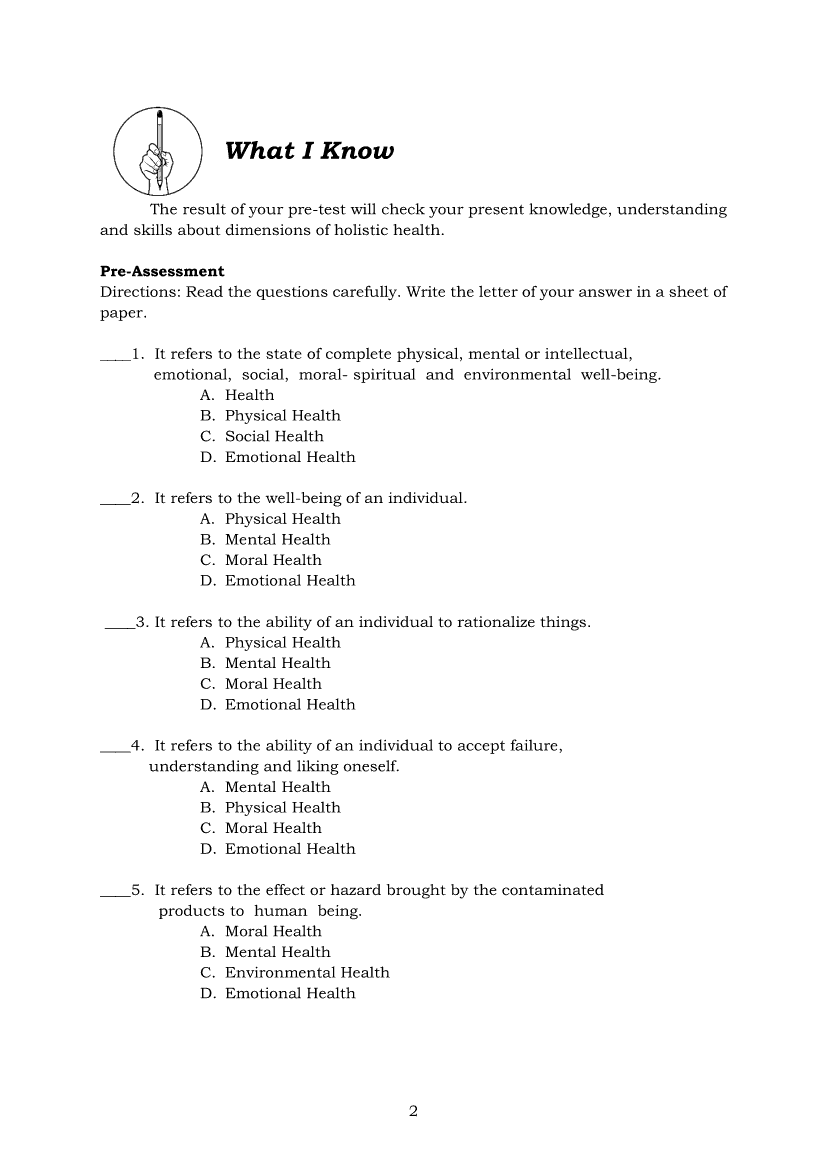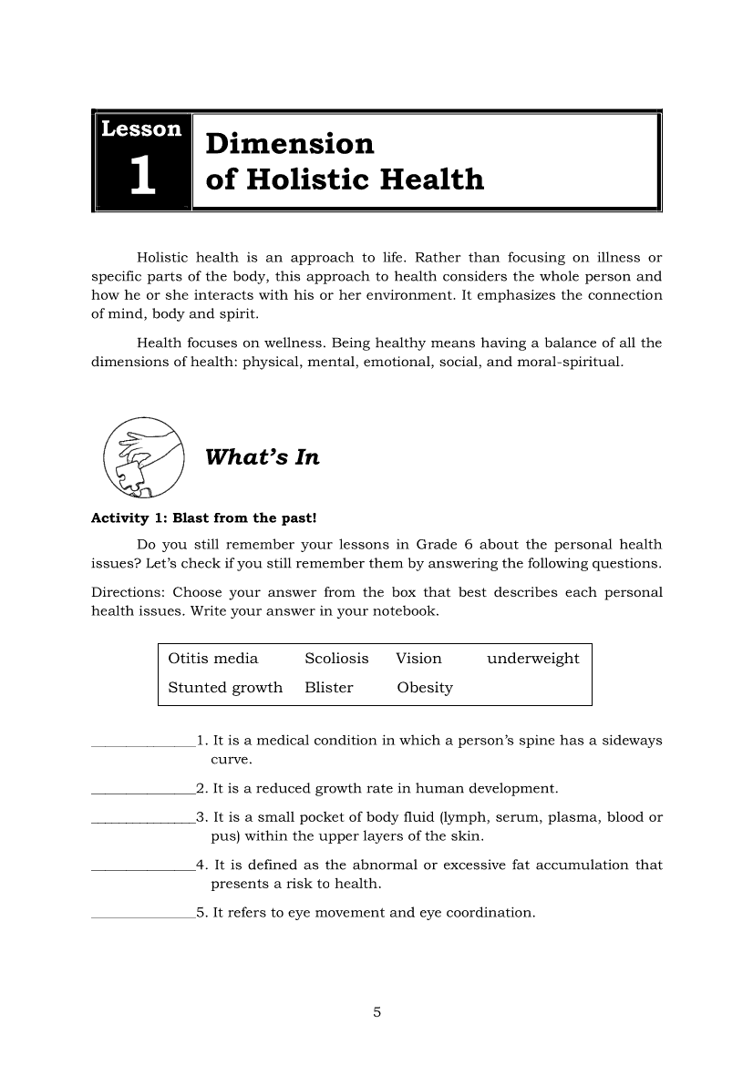 Health 7 Module 1: Dimension of Holistic HealthApr 22, 2021 Grade 7Xiaomi Redmi Watch 5 Active 2inch LCD Display Clear Calling 5ATM Waterproof Smart Watch for only ₱3,999 ₱1,200!. Health 7RelatedHEALTH Quarter 4 – Module: 4a Nature of Non-Communicable Diseases (NCDs)HEALTH Quarter 4 – Module: 4b Ways to Prevent and Control Non-Communicable DiseasesHealth 7 Module 5: Health ServicesHealth 7 Quarter 2 – Module 2: Nutritional GuidelinesHealth 7 Quarter 2 – Module 4: Malnutrition and Micronutrient Deficiency