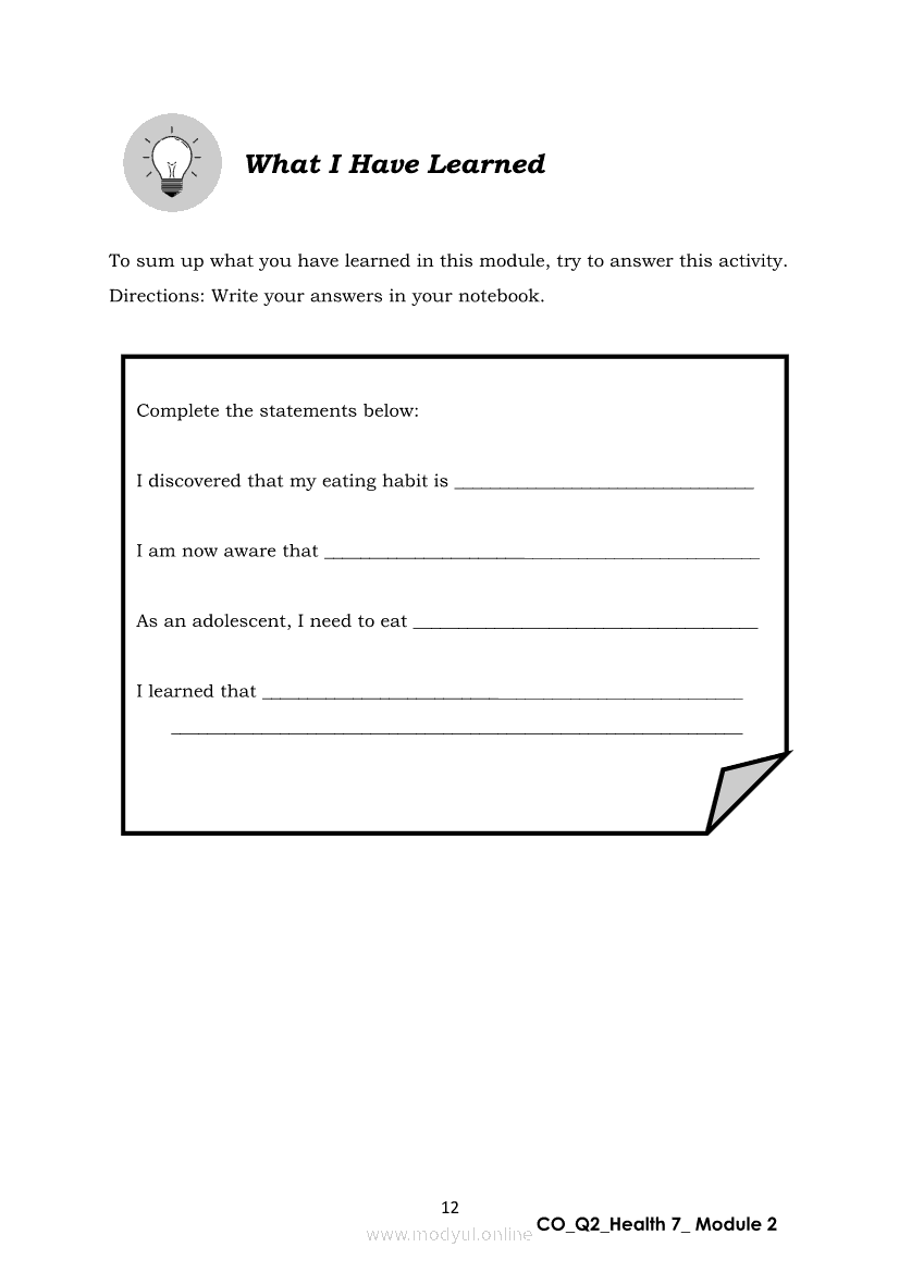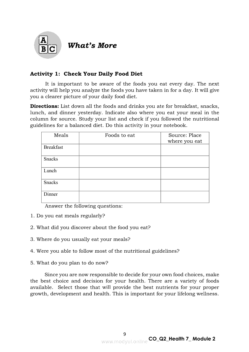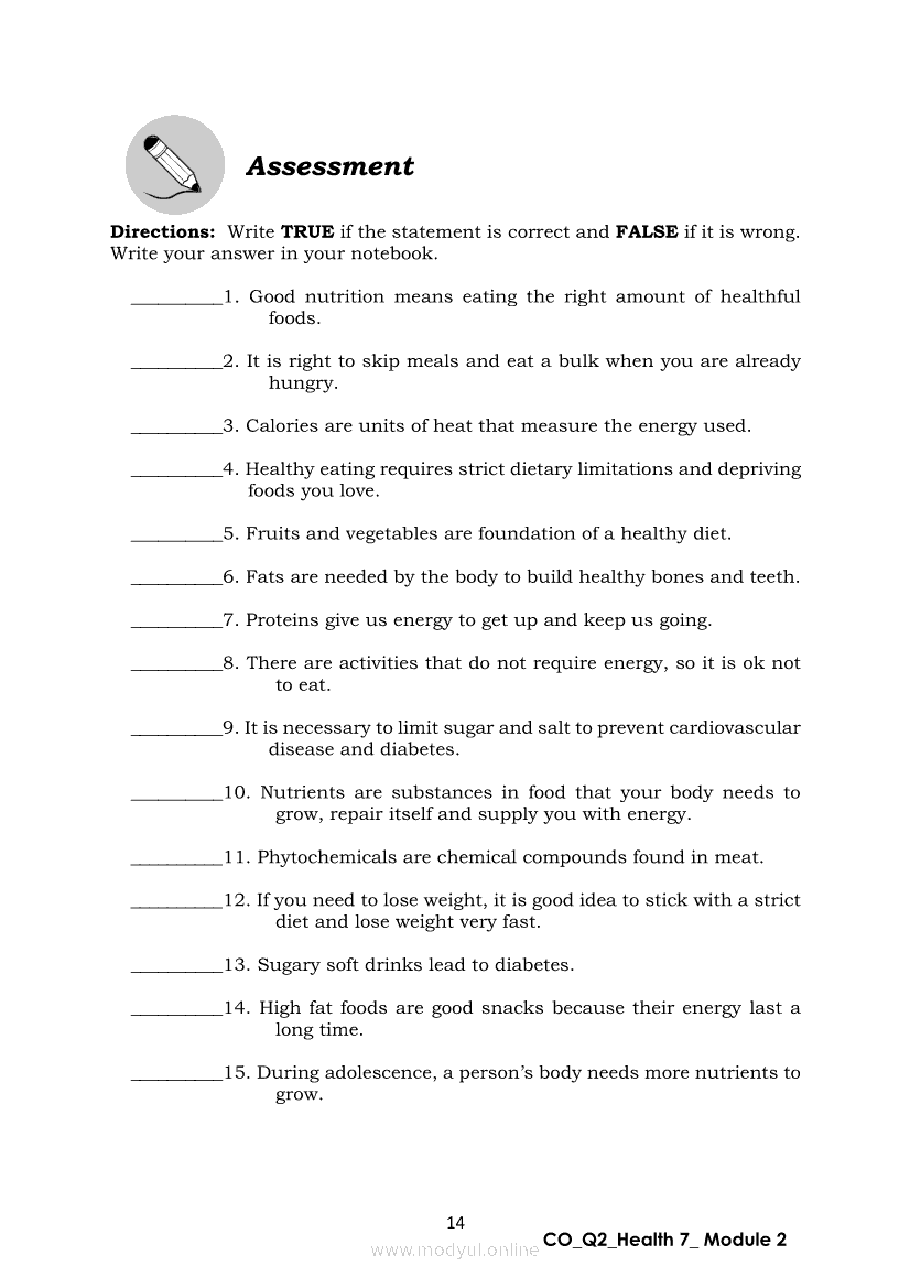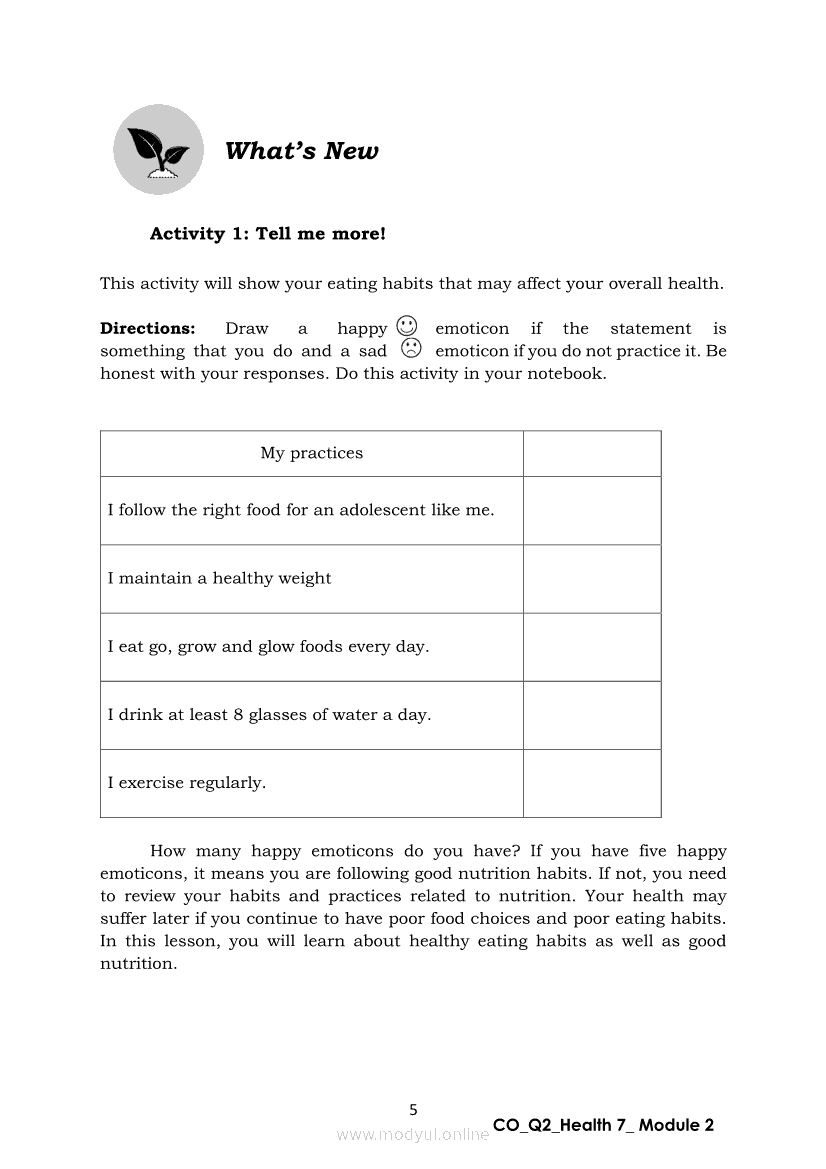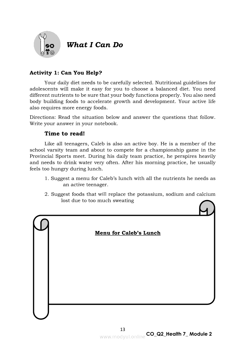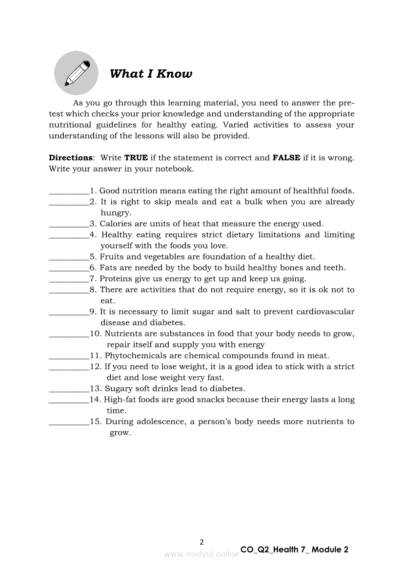Health 7 Quarter 2 – Module 2: Nutritional GuidelinesApr 22, 2021 Grade 7Xiaomi Redmi Watch 5 Active 2inch LCD Display Clear Calling 5ATM Waterproof Smart Watch for only ₱3,999 ₱1,200!. Health 7RelatedHEALTH Quarter 4 – Module: 4b Ways to Prevent and Control Non-Communicable DiseasesHEALTH Quarter 4 – Module: 4a Nature of Non-Communicable Diseases (NCDs)Health 7 Module 5: Health ServicesHealth 7 Module 1: Dimension of Holistic HealthHealth 7 Module 6: Development of Self-Awareness and Coping Skills