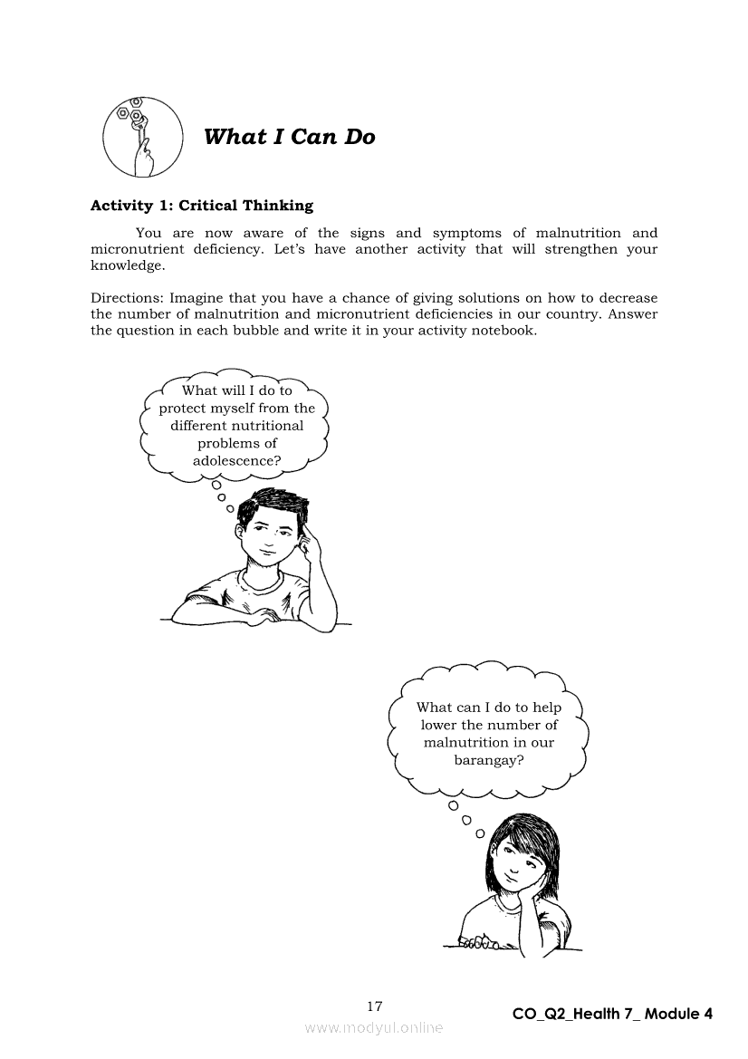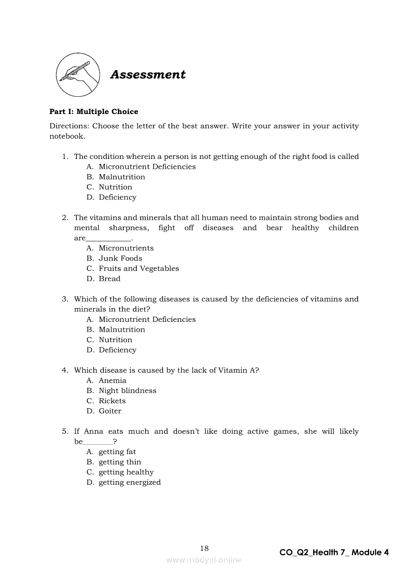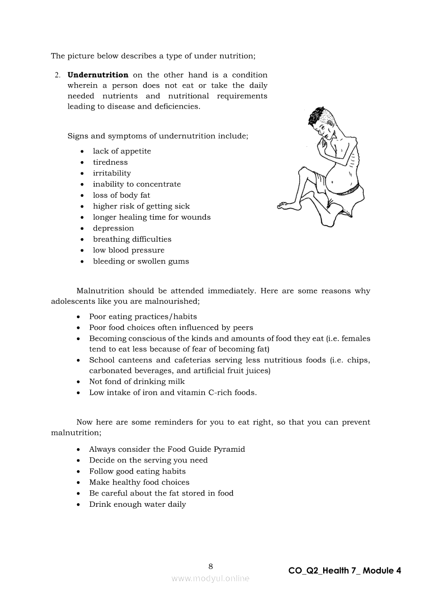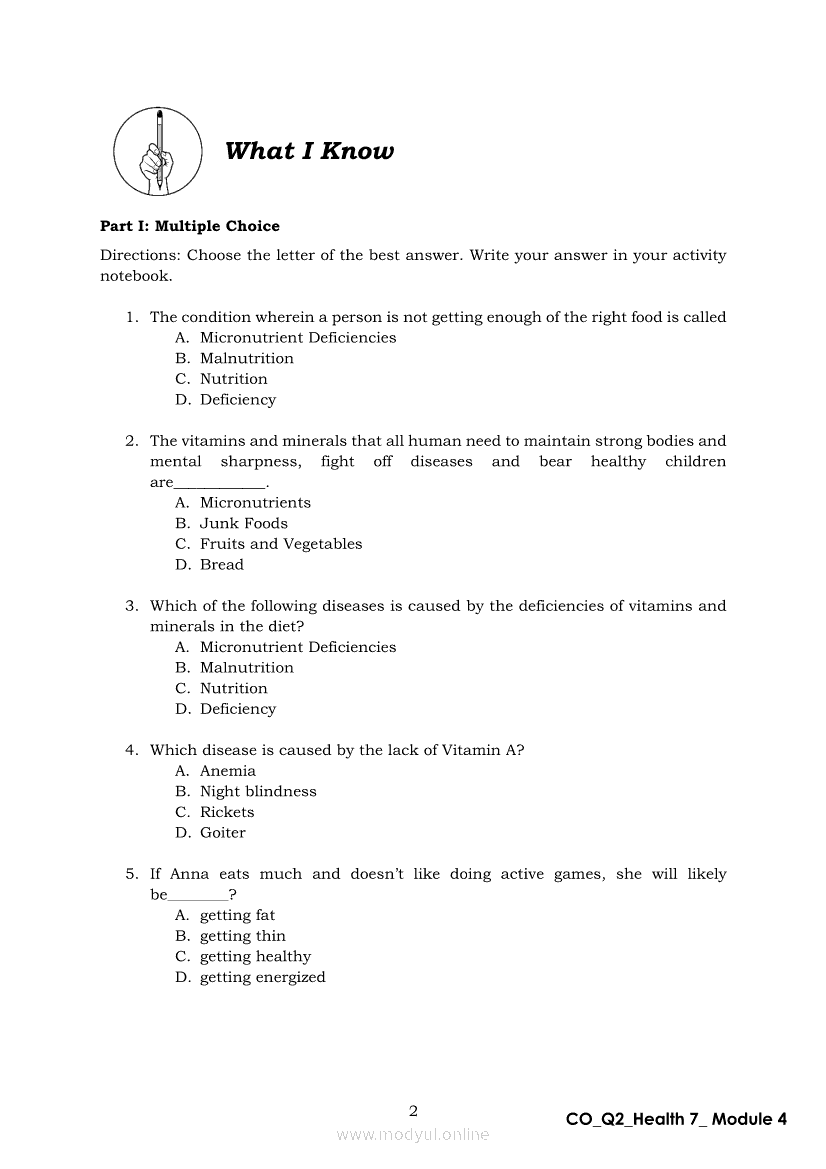 Health 7 Quarter 2 – Module 4: Malnutrition and Micronutrient DeficiencyApr 22, 2021 Grade 7Xiaomi Redmi Watch 5 Active 2inch LCD Display Clear Calling 5ATM Waterproof Smart Watch for only ₱3,999 ₱1,200!. Health 7RelatedHEALTH Quarter 4 – Module: 4a Nature of Non-Communicable Diseases (NCDs)HEALTH Quarter 4 – Module: 4b Ways to Prevent and Control Non-Communicable DiseasesHealth 7 Quarter 2 – Module 6: Applying Decision-Making Skills to Prevent Nutritional ProblemsHealth 7 Module 5: Health ServicesHealth 7 Quarter 2 – Module 2: Nutritional Guidelines