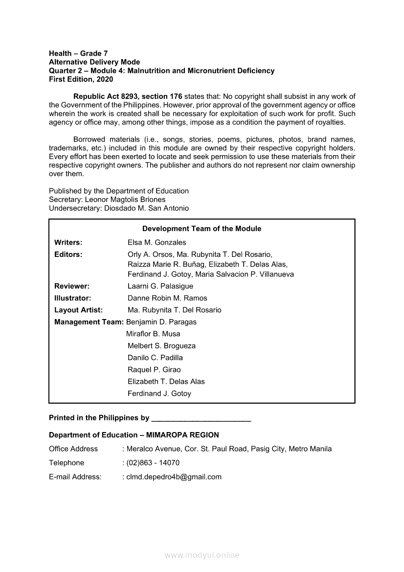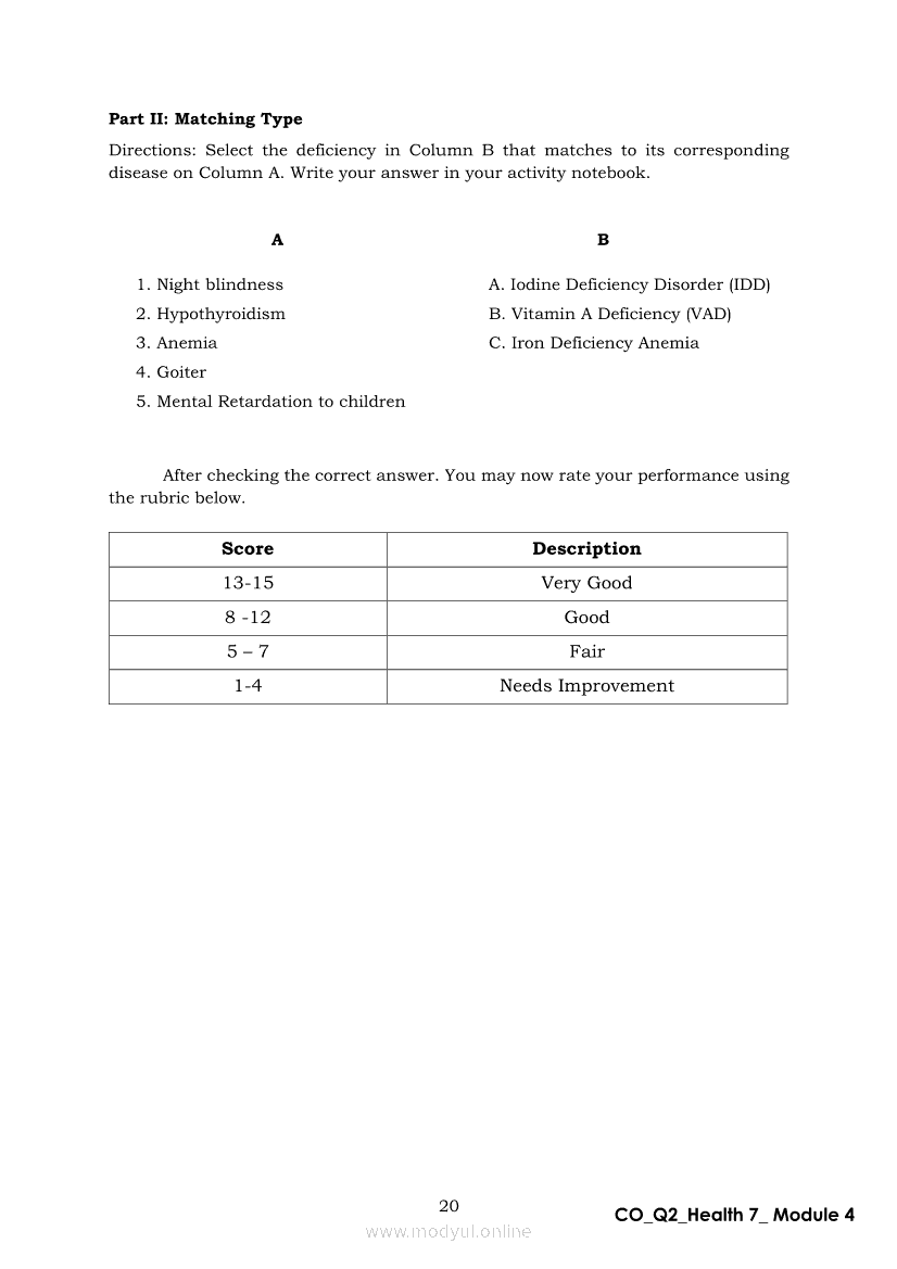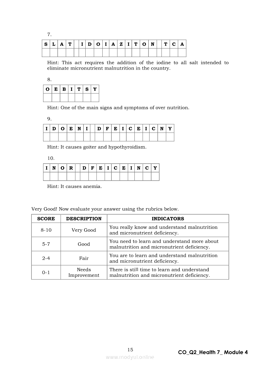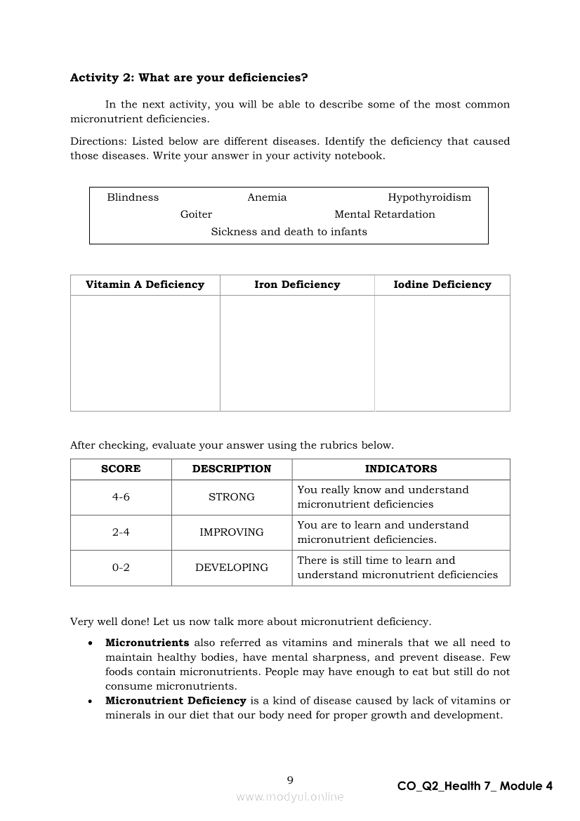 Health 7 Quarter 2 – Module 4: Malnutrition and Micronutrient DeficiencyApr 22, 2021 Grade 7Xiaomi Redmi Watch 5 Active 2inch LCD Display Clear Calling 5ATM Waterproof Smart Watch for only ₱3,999 ₱1,200!. Health 7RelatedHEALTH Quarter 4 – Module: 4a Nature of Non-Communicable Diseases (NCDs)HEALTH Quarter 4 – Module: 4b Ways to Prevent and Control Non-Communicable DiseasesHealth 7 Quarter 2 – Module 6: Applying Decision-Making Skills to Prevent Nutritional ProblemsHealth 7 Module 5: Health ServicesHealth 7 Quarter 2 – Module 2: Nutritional Guidelines