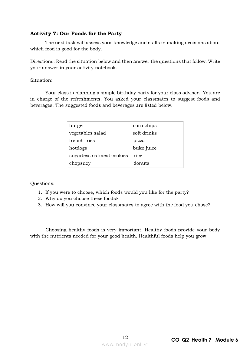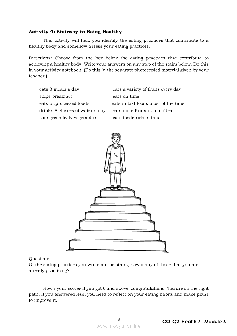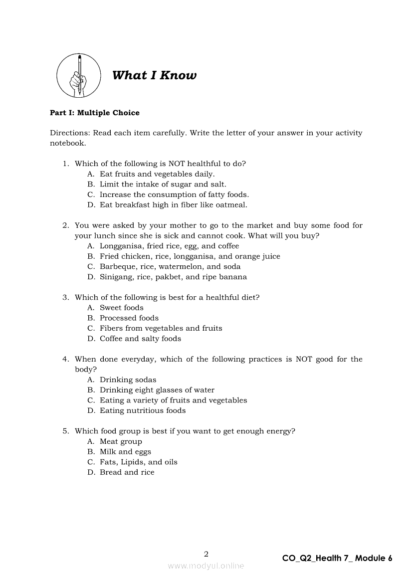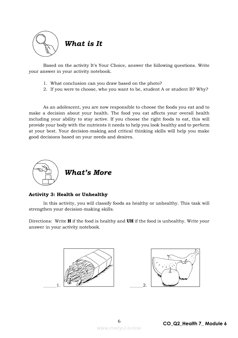Health 7 Quarter 2 – Module 6: Applying Decision-Making Skills to Prevent Nutritional ProblemsApr 22, 2021 Grade 7Xiaomi Redmi Watch 5 Active 2inch LCD Display Clear Calling 5ATM Waterproof Smart Watch for only ₱3,999 ₱1,200!. Health 7RelatedHEALTH Quarter 4 – Module: 4b Ways to Prevent and Control Non-Communicable DiseasesHEALTH Quarter 4 – Module: 4a Nature of Non-Communicable Diseases (NCDs)Health 7 Module 5: Health ServicesHealth 7 Quarter 2 – Module 4: Malnutrition and Micronutrient DeficiencyHealth 7 Module 3: Changes that Happen to Adolescence