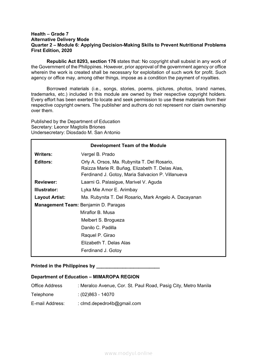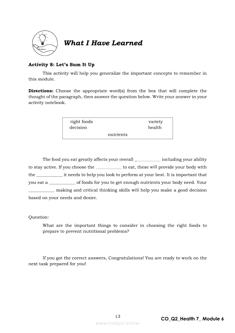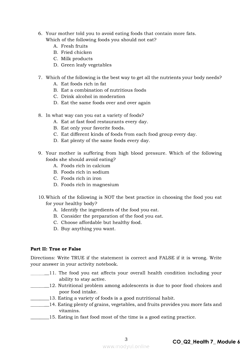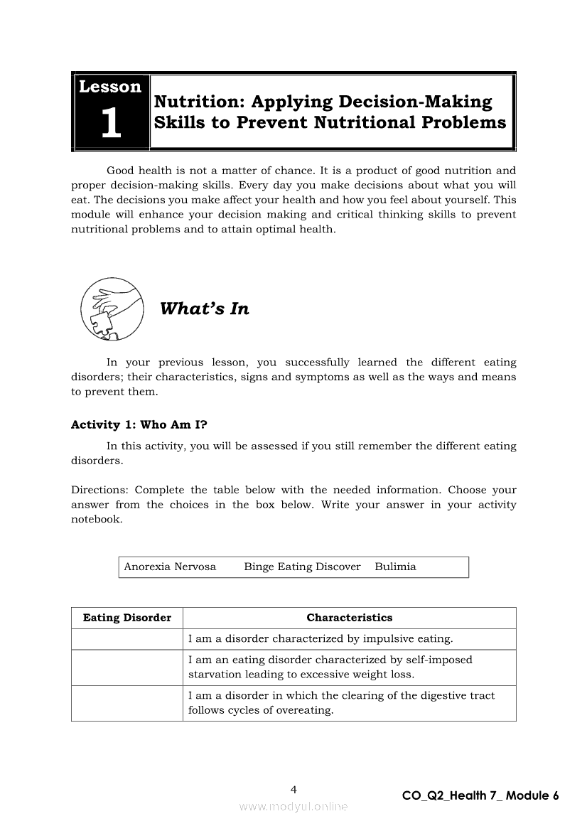 Health 7 Quarter 2 – Module 6: Applying Decision-Making Skills to Prevent Nutritional ProblemsApr 22, 2021 Grade 7Xiaomi Redmi Watch 5 Active 2inch LCD Display Clear Calling 5ATM Waterproof Smart Watch for only ₱3,999 ₱1,200!. Health 7RelatedHEALTH Quarter 4 – Module: 4b Ways to Prevent and Control Non-Communicable DiseasesHEALTH Quarter 4 – Module: 4a Nature of Non-Communicable Diseases (NCDs)Health 7 Module 5: Health ServicesHealth 7 Quarter 2 – Module 4: Malnutrition and Micronutrient DeficiencyHealth 7 Module 3: Changes that Happen to Adolescence