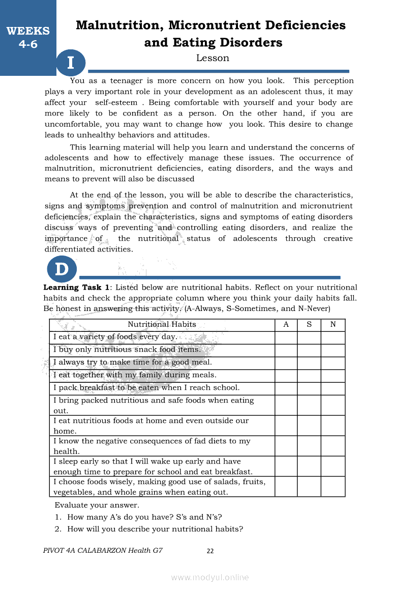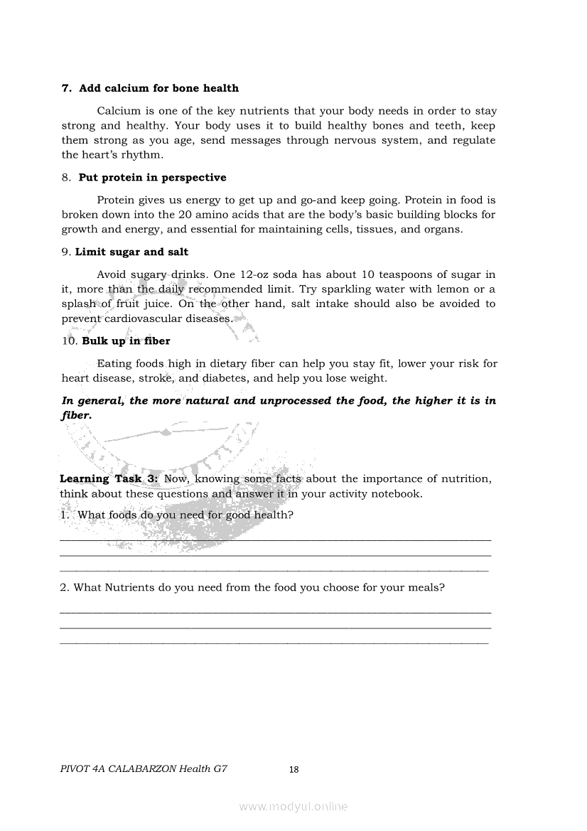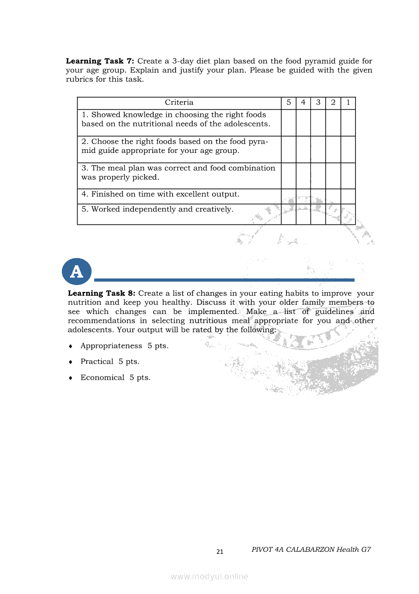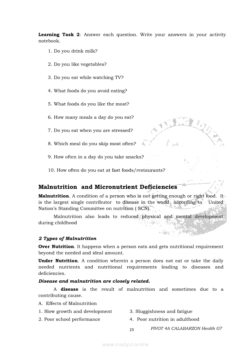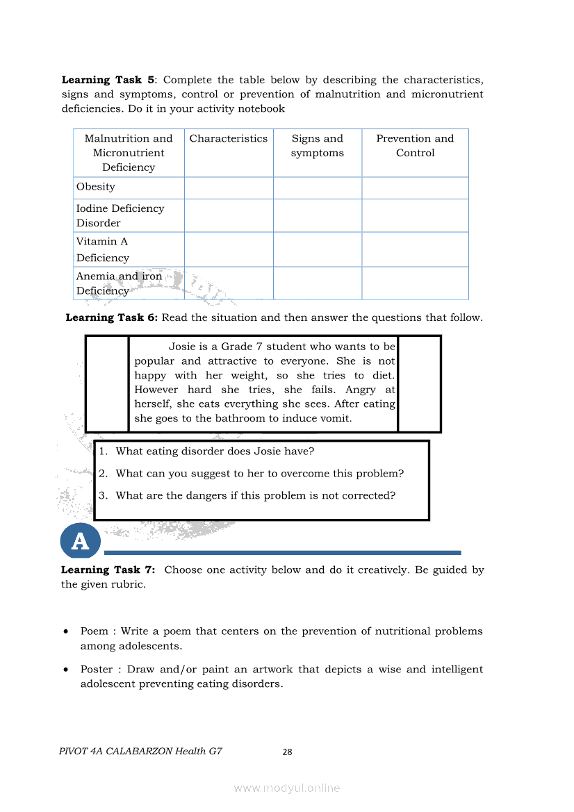 Health 7 Second Quarter Module (PIVOT)Apr 22, 2021 Grade 7Xiaomi Redmi Watch 5 Active 2inch LCD Display Clear Calling 5ATM Waterproof Smart Watch for only ₱3,999 ₱1,200!. Health 7RelatedHEALTH Quarter 4 – Module: 4b Ways to Prevent and Control Non-Communicable DiseasesHEALTH Quarter 4 – Module: 4a Nature of Non-Communicable Diseases (NCDs)Health 7 Module 1: Dimension of Holistic HealthHealth 7 Quarter 2 – Module 2: Nutritional GuidelinesHealth 7 Quarter 2 – Module 4: Malnutrition and Micronutrient Deficiency