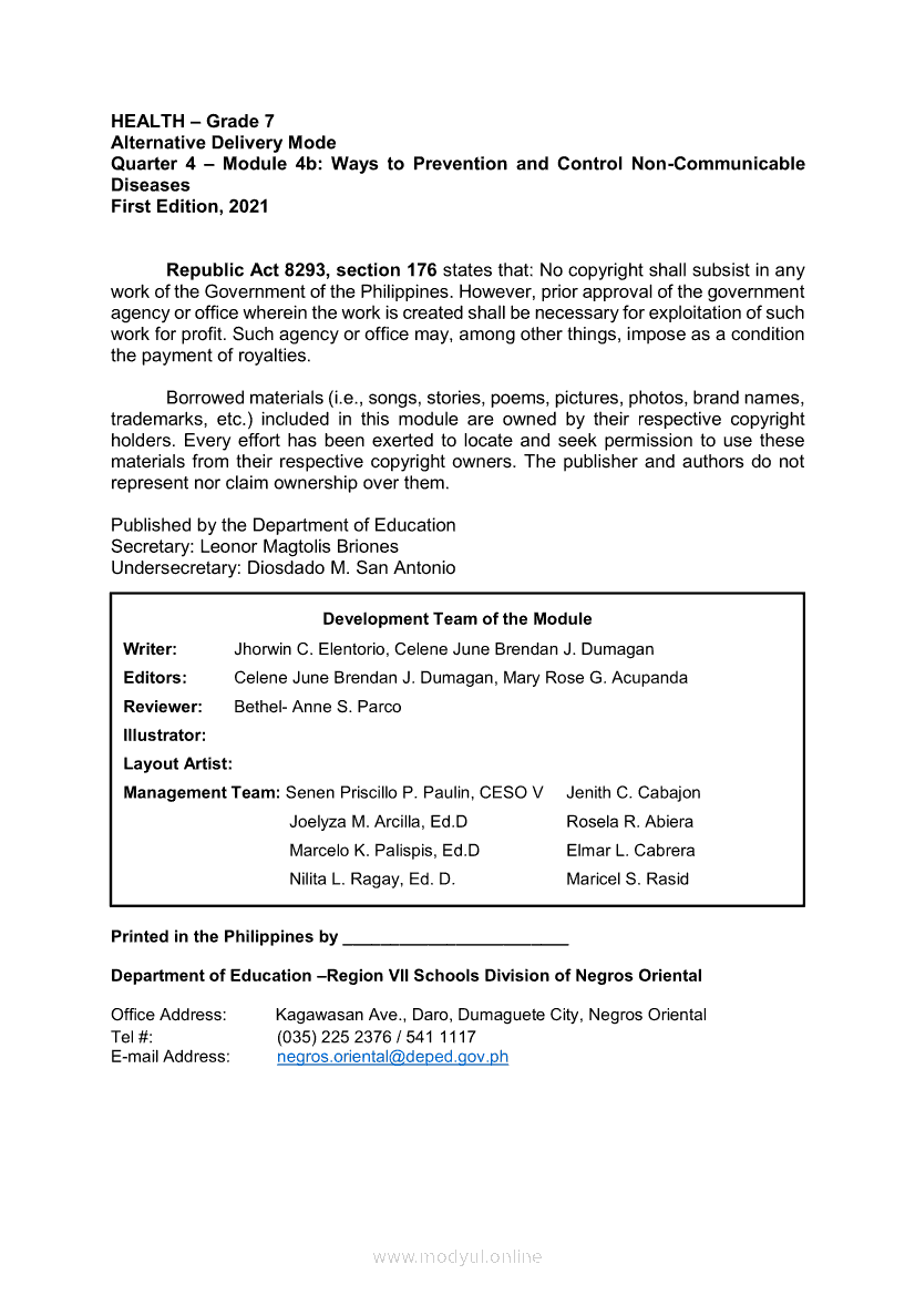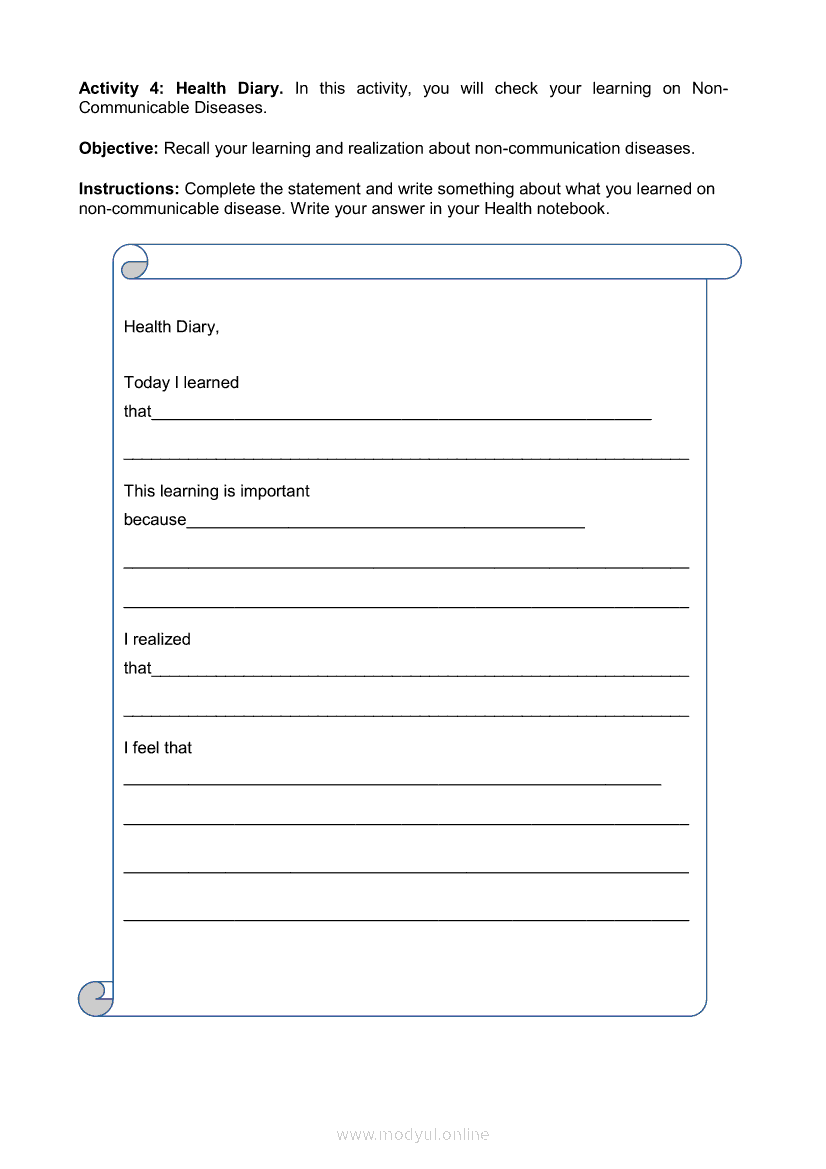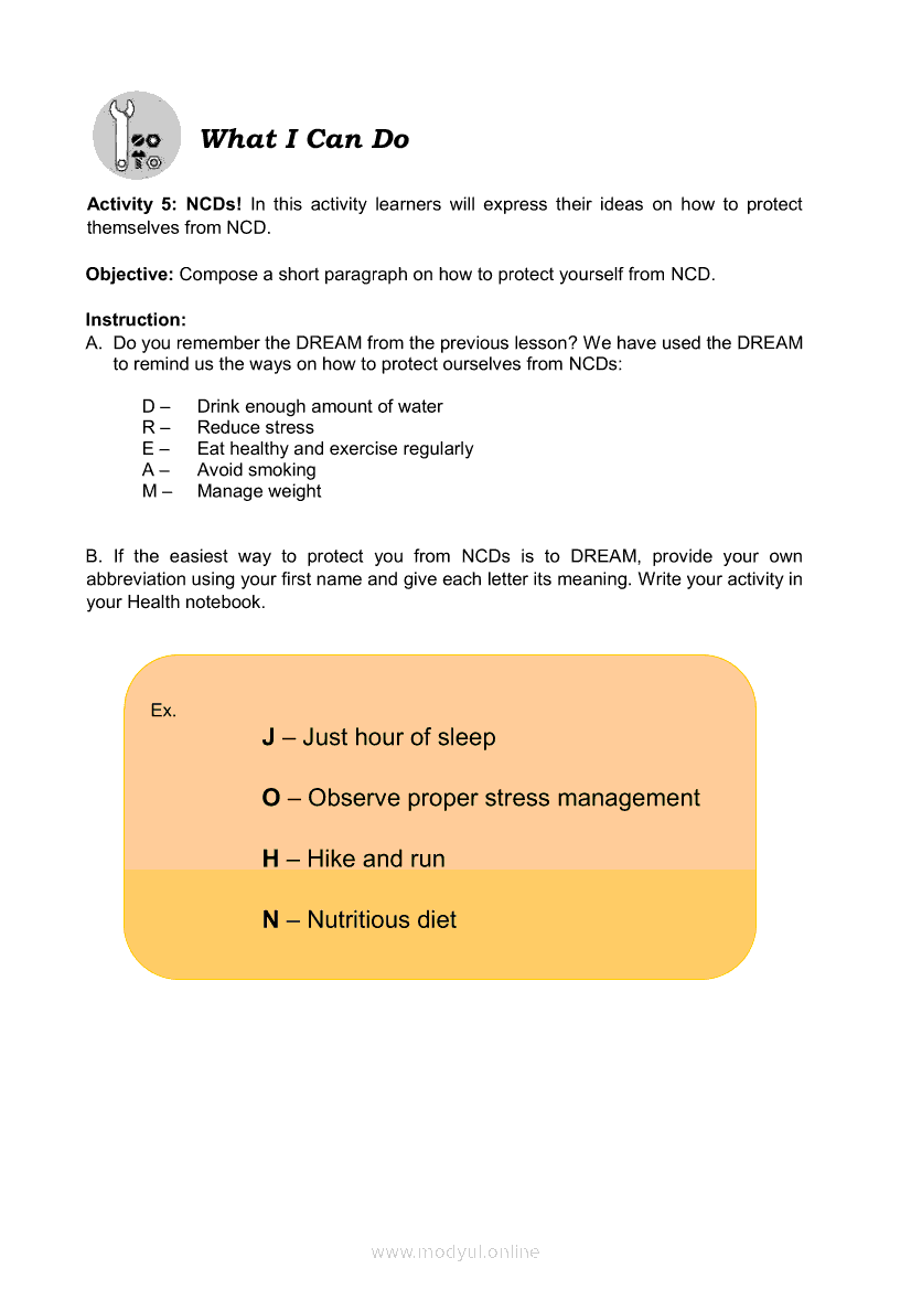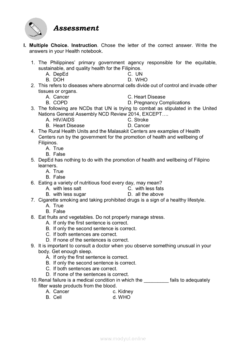 HEALTH Quarter 4 – Module: 4b Ways to Prevent and Control Non-Communicable DiseasesMay 27, 2021 Grade 7Xiaomi Redmi Watch 5 Active 2inch LCD Display Clear Calling 5ATM Waterproof Smart Watch for only ₱3,999 ₱1,200!. Health 7 4th QuarterRelatedHEALTH Quarter 4 – Module: 4a Nature of Non-Communicable Diseases (NCDs)Filipino 7 Ikaapat na Markahan – Modyul 5 IBONG ADARNA: SAKNONG 567-831SOLAR ENERGY AND THE INTERACTIONS IN THE ATMOSPHERE for Science Grade 7 Quarter 4 / Week 3ARTS Quarter 4 – Module: 4a Religious and Non-Religious FestivalsEdukasyon sa Pagpapakatao Ikaapat Markahan – Modyul: 12.b Ang Pahayag ng Personal na Layunin sa Buhay o Personal Mission Statement (Linggo:Ikalawa)