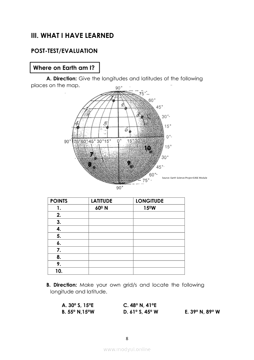 LOCATING PLACES USING COORDINATE SYSTEM for Science Grade 7 Quarter 4/Week 1May 27, 2021 Grade 7Xiaomi Redmi Watch 5 Active 2inch LCD Display Clear Calling 5ATM Waterproof Smart Watch for only ₱3,999 ₱1,200!. Science 7 4th QuarterRelatedTHE SUN AND THE SEASONS for Science Grade 7 Quarter 4 / Week 5ECLIPSES for Science Grade 7 Quarter 4 / Week 6SOLAR ENERGY AND THE INTERACTIONS IN THE ATMOSPHERE for Science Grade 7 Quarter 4 / Week 3TILT OF THE EARTH: LENGTH OF DAYTIME, AMOUNT OF ENERGY & POSITION OF THE EARTH IN ITS ORBIT for Science Grade 7 Quarter 3 / Week 4EARTH’S NATURAL RESOURCES for Science Grade 7 Quarter 4 / Week 2