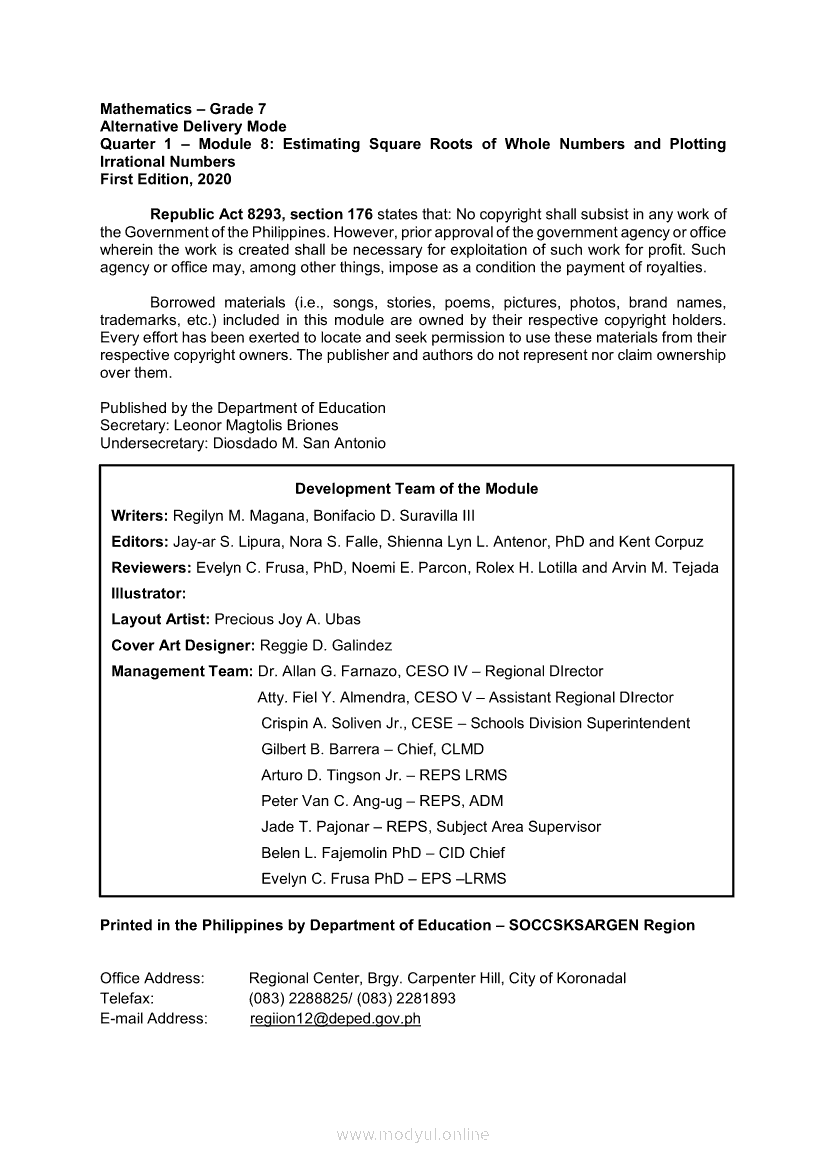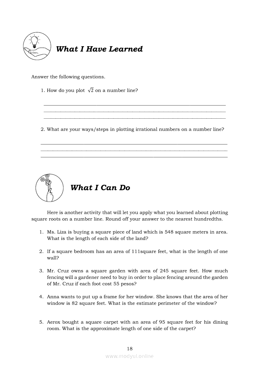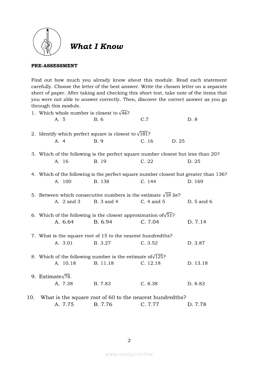 Math 7 Module 8: Estimating the Square Roots of Whole Numbers and Plotting Irrational NumbersApr 22, 2021 Grade 7Xiaomi Redmi Watch 5 Active 2inch LCD Display Clear Calling 5ATM Waterproof Smart Watch for only ₱3,999 ₱1,200!. Math 7RelatedMATHEMATICS Quarter 4 – Module 2 Gathering Statistical DataMATHEMATICS Quarter 4 – Module 4 Graphs to Represent Organized DataMATHEMATICS Quarter 4 – Module 5 Measures of Central TendencyMATHEMATICS Quarter 4 – Module 6 Measures of VariabilityMATHEMATICS Quarter 4 – Module 1 Problem Solving Involving Statistics