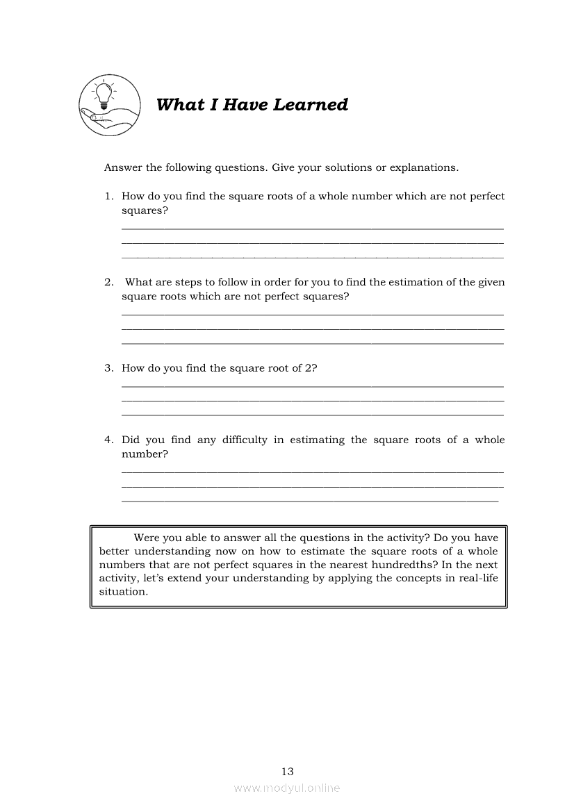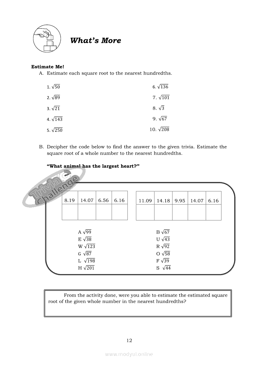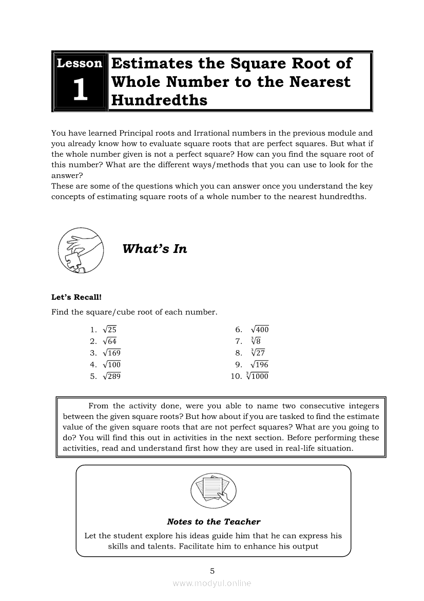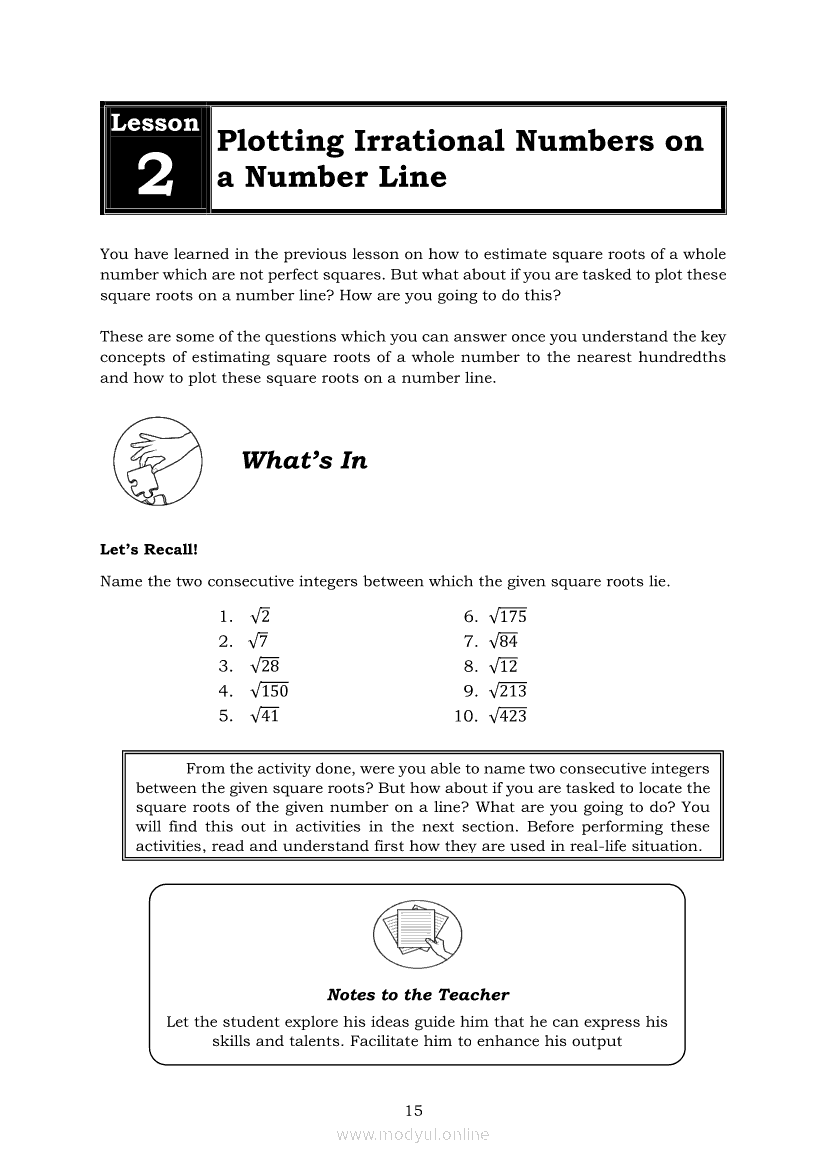 Math 7 Module 8: Estimating the Square Roots of Whole Numbers and Plotting Irrational NumbersApr 22, 2021 Grade 7Xiaomi Redmi Watch 5 Active 2inch LCD Display Clear Calling 5ATM Waterproof Smart Watch for only ₱3,999 ₱1,200!. Math 7RelatedMATHEMATICS Quarter 4 – Module 2 Gathering Statistical DataMATHEMATICS Quarter 4 – Module 4 Graphs to Represent Organized DataMATHEMATICS Quarter 4 – Module 5 Measures of Central TendencyMATHEMATICS Quarter 4 – Module 6 Measures of VariabilityMATHEMATICS Quarter 4 – Module 1 Problem Solving Involving Statistics