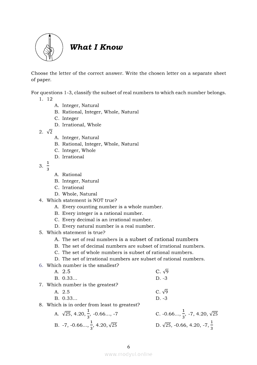 Math 7 Module 9: Subsets of Real NumbersApr 22, 2021 Grade 7Xiaomi Redmi Watch 5 Active 2inch LCD Display Clear Calling 5ATM Waterproof Smart Watch for only ₱3,999 ₱1,200!. Math 7RelatedMATHEMATICS Quarter 4 – Module 5 Measures of Central TendencyMATHEMATICS Quarter 4 – Module 6 Measures of VariabilityMATHEMATICS Quarter 4 – Module 1 Problem Solving Involving StatisticsMATHEMATICS Quarter 4 – Module 4 Graphs to Represent Organized DataMATHEMATICS Quarter 4 – Module 2 Gathering Statistical Data