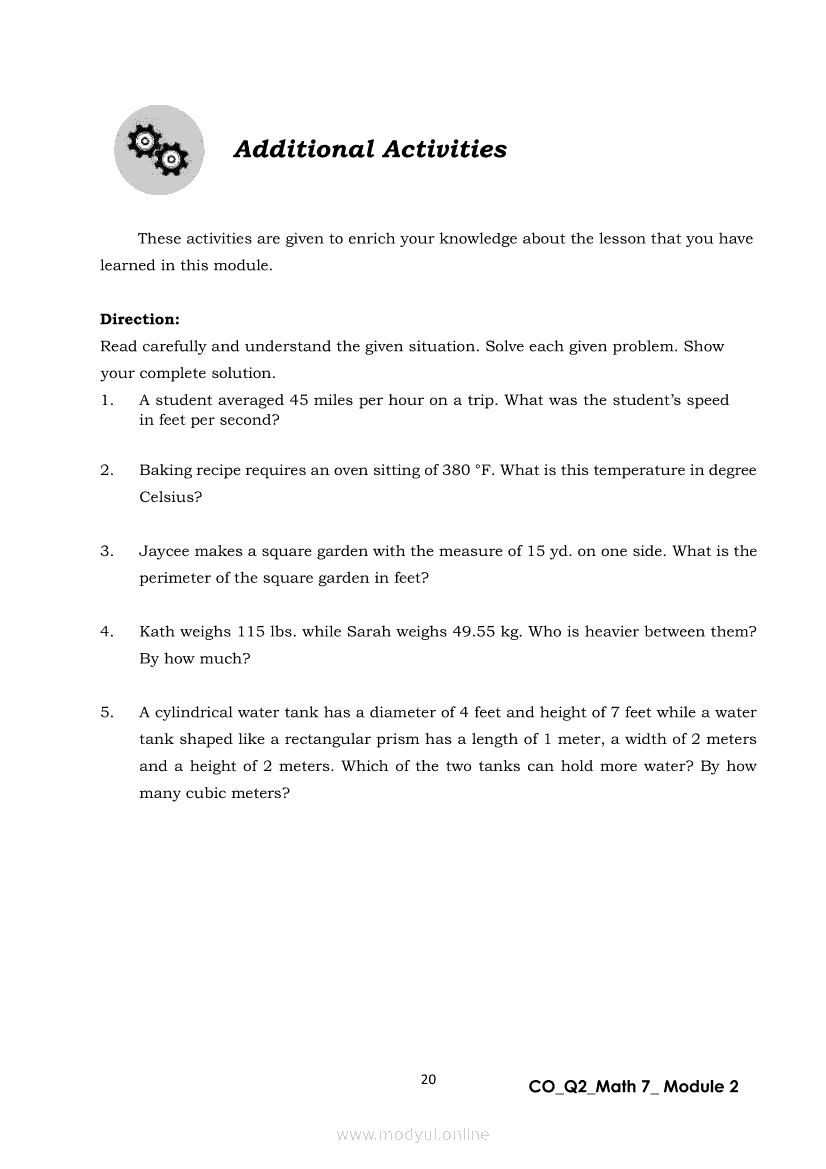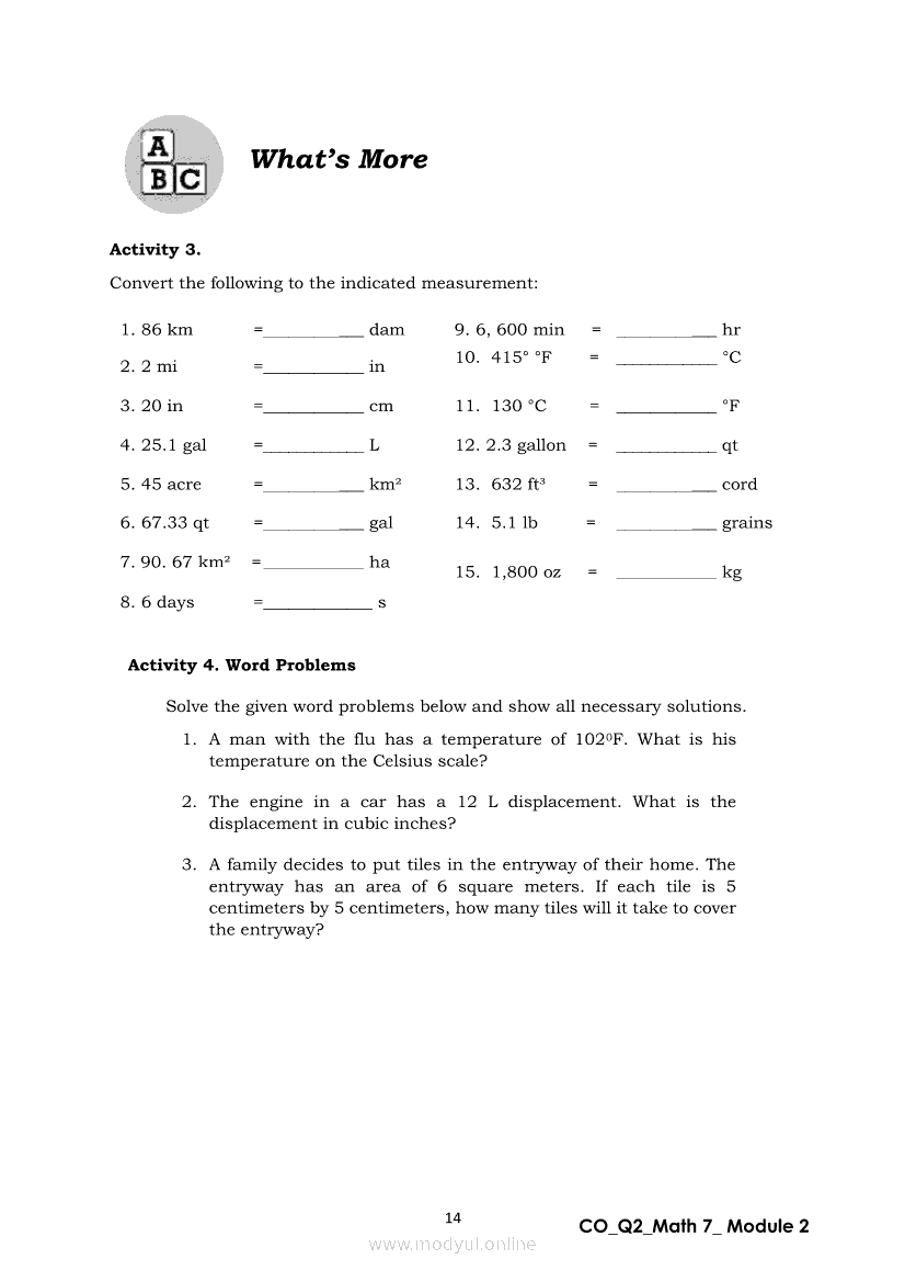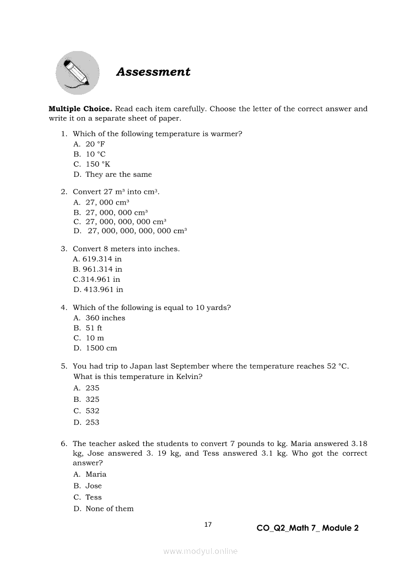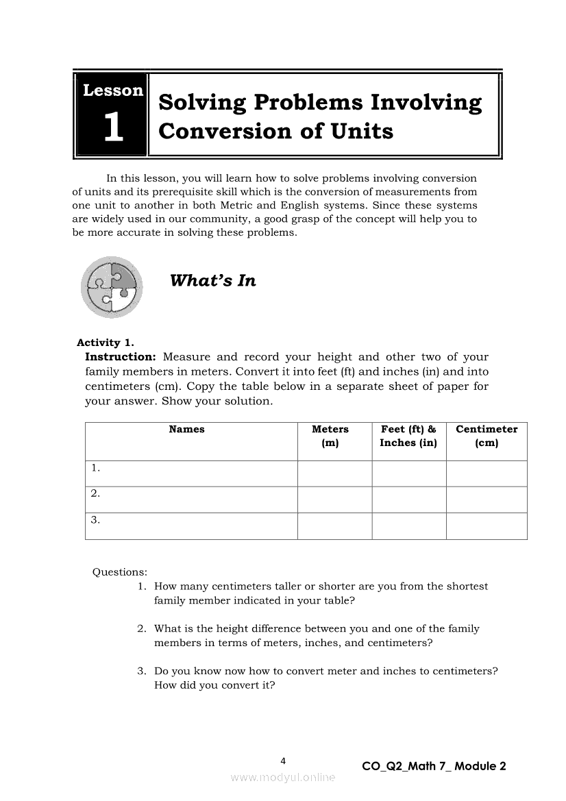 Math 7 Quarter 2 – Module 2: Solving Problems Involving Conversion of UnitsApr 22, 2021 Grade 7Xiaomi Redmi Watch 5 Active 2inch LCD Display Clear Calling 5ATM Waterproof Smart Watch for only ₱3,999 ₱1,200!. Math 7RelatedMATHEMATICS Quarter 4 – Module 6 Measures of VariabilityMATHEMATICS Quarter 4 – Module 2 Gathering Statistical DataMATHEMATICS Quarter 4 – Module 3 Frequency DistributionMATHEMATICS Quarter 4 – Module 7 Statistical Data InterpretationMATHEMATICS Quarter 4 – Module 4 Graphs to Represent Organized Data