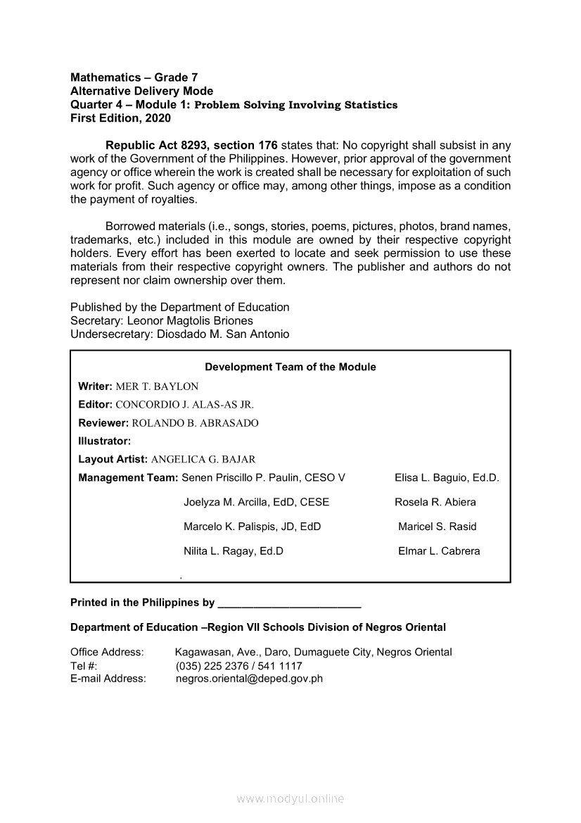 MATHEMATICS Quarter 4 – Module 1 Problem Solving Involving StatisticsMay 27, 2021 Grade 7Xiaomi Redmi Watch 5 Active 2inch LCD Display Clear Calling 5ATM Waterproof Smart Watch for only ₱3,999 ₱1,200!. Math 7 4th QuarterRelatedMATHEMATICS Quarter 4 – Module 7 Statistical Data InterpretationMATHEMATICS Quarter 4 – Module 3 Frequency DistributionMATHEMATICS Quarter 4 – Module 6 Measures of VariabilityMATHEMATICS Quarter 4 – Module 2 Gathering Statistical DataMATHEMATICS Quarter 4 – Module 4 Graphs to Represent Organized Data