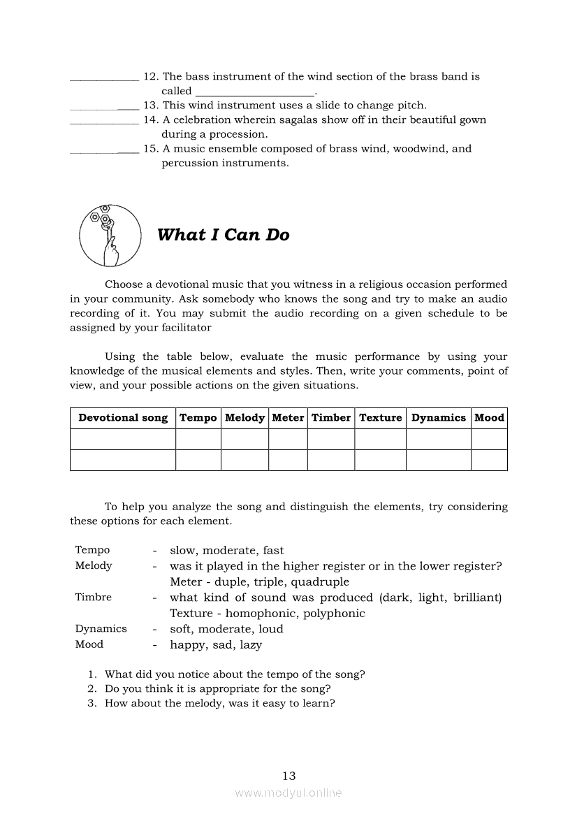 Music 7 Module 4: Music of Lowlands of Luzon Devotional Music and Brass BandApr 22, 2021 Grade 7Xiaomi Redmi Watch 5 Active 2inch LCD Display Clear Calling 5ATM Waterproof Smart Watch for only ₱3,999 ₱1,200!. Music 7RelatedMUSIC Quarter 4 – Module 4a Music of Philippine Festivals and Theatrical Forms IMUSIC Quarter 4 – Module 4b Music of Philippine Festivals and Theatrical Forms IIMusic 7 Module 1: Music of Lowlands of Luzon Folk Songs from the LowlandsMusic 7 Quarter 2 – Module 3: Instrumental Music of CordilleraMusic 7 Quarter 2 – Module 6: Vocal Music of Palawan