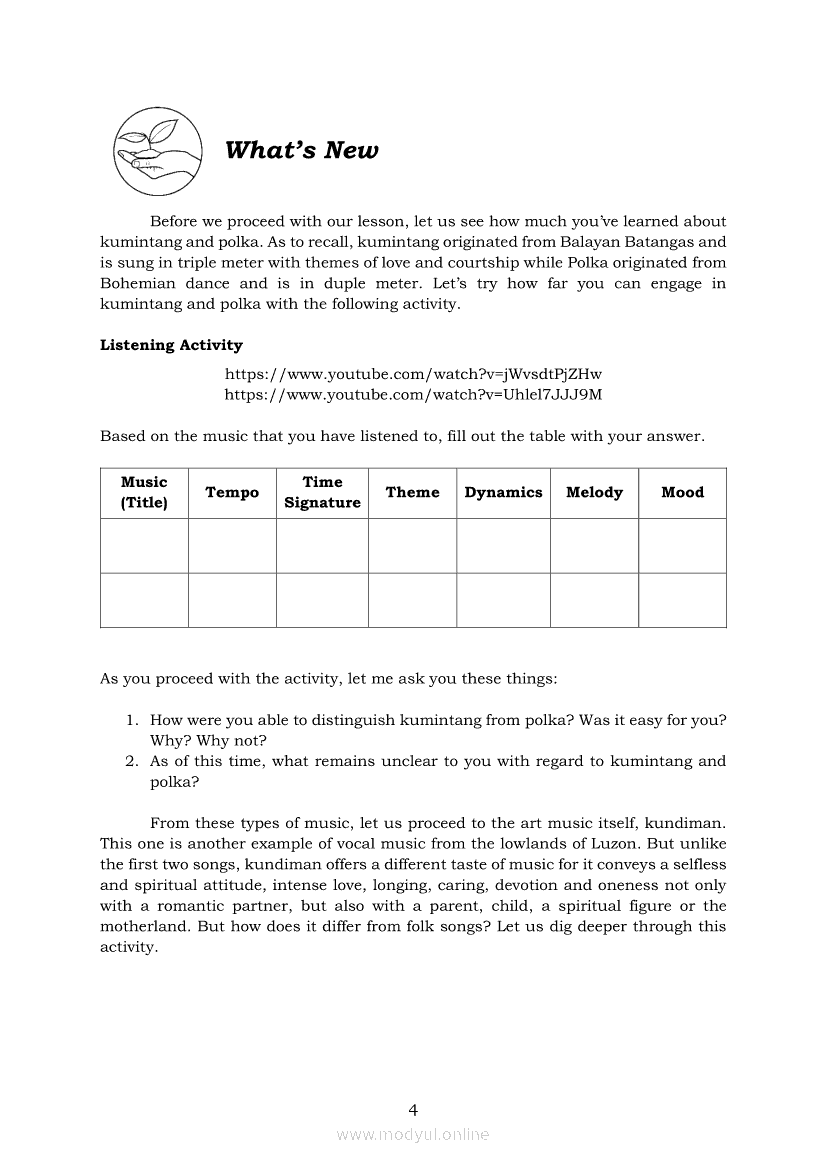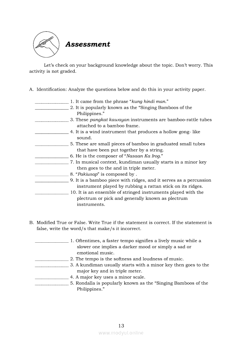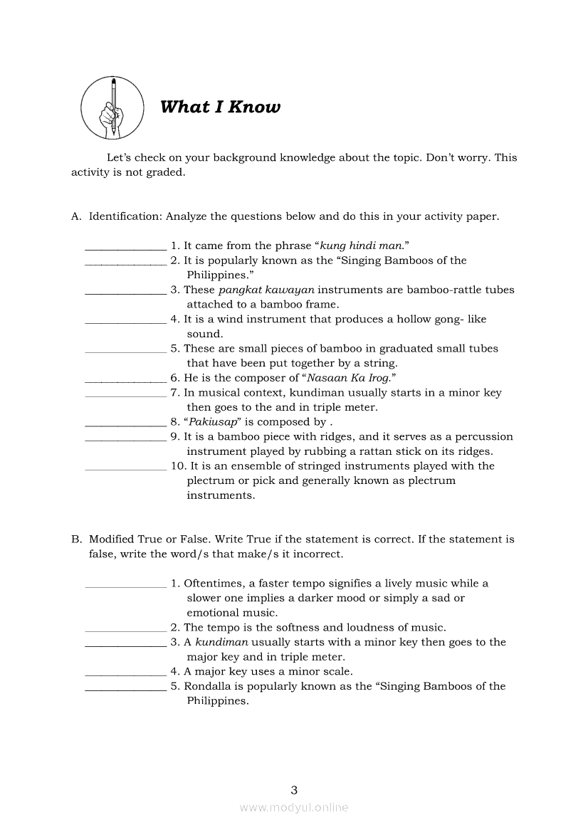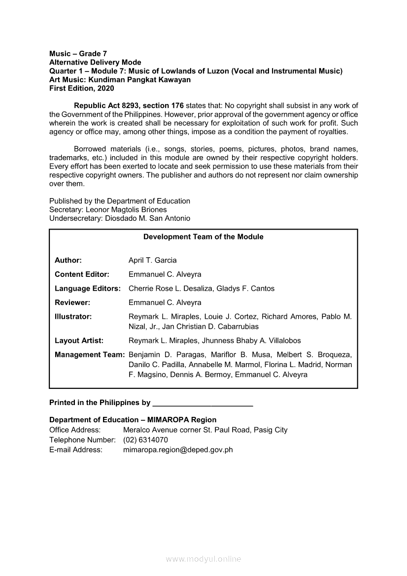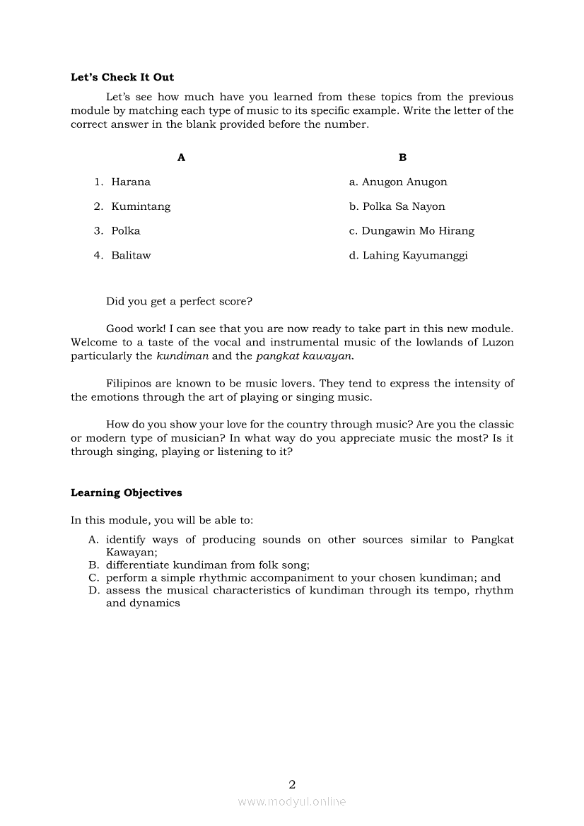 Music 7 Module 7: Music of Lowlands of Luzon (Vocal and Instrumental Music) Art Music: Kundiman Pangkat KawayanApr 22, 2021 Grade 7Xiaomi Redmi Watch 5 Active 2inch LCD Display Clear Calling 5ATM Waterproof Smart Watch for only ₱3,999 ₱1,200!. Music 7RelatedMUSIC Quarter 4 – Module 4b Music of Philippine Festivals and Theatrical Forms IIMUSIC Quarter 4 – Module 4a Music of Philippine Festivals and Theatrical Forms IMusic 7 Quarter 2 – Module 2: Vocal Music of CordilleraMusic 7 Module 3: Liturgical MusicMusic 7 Quarter 2 – Module 7: Instrumental Music of Palawan