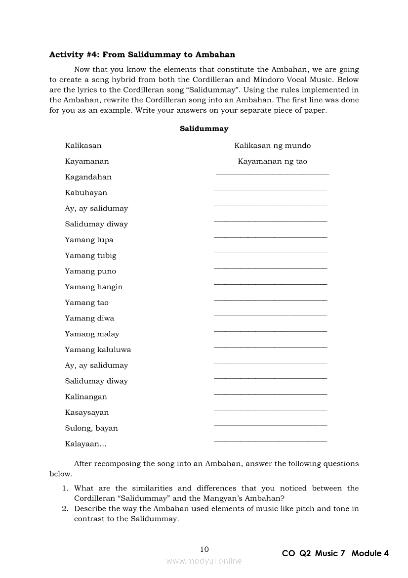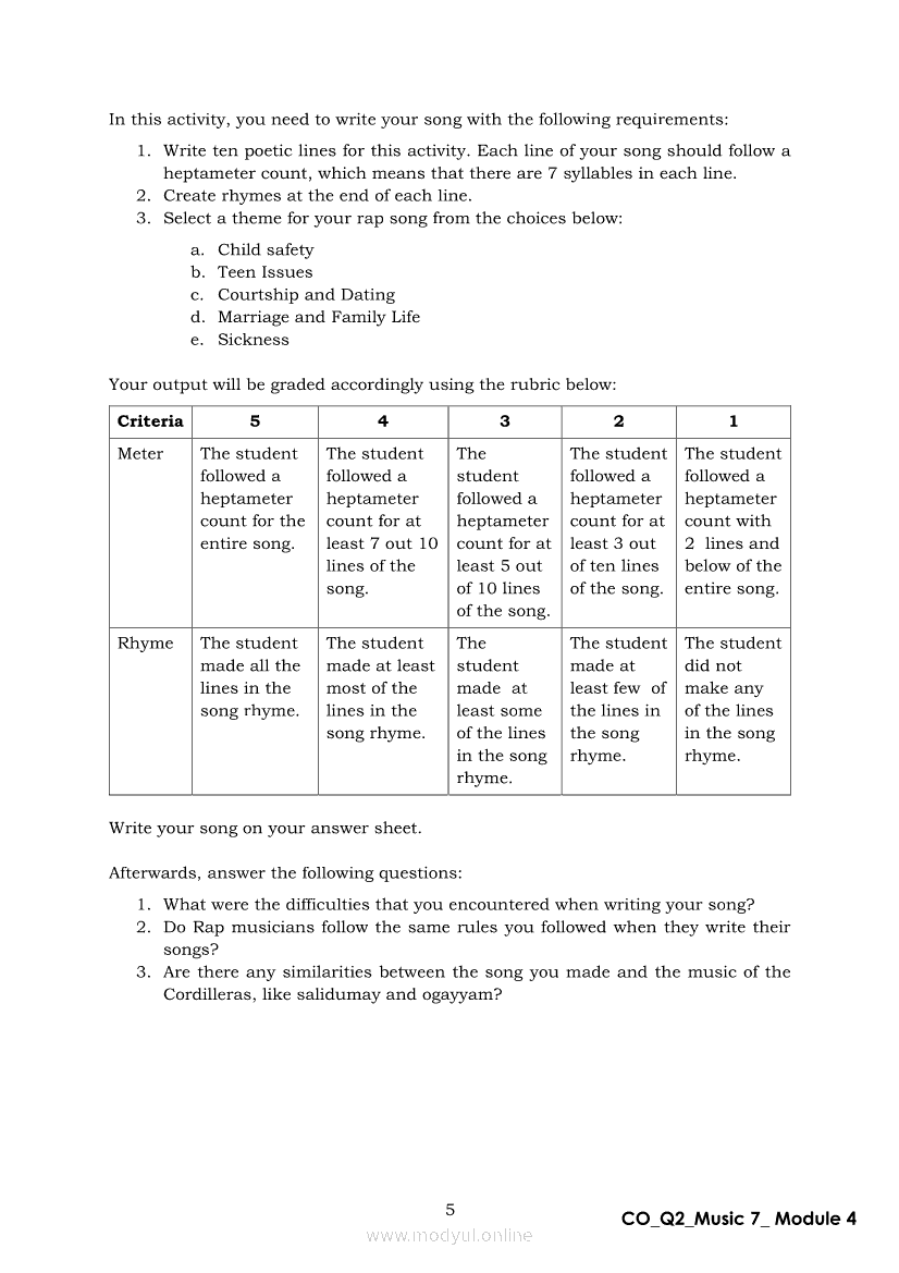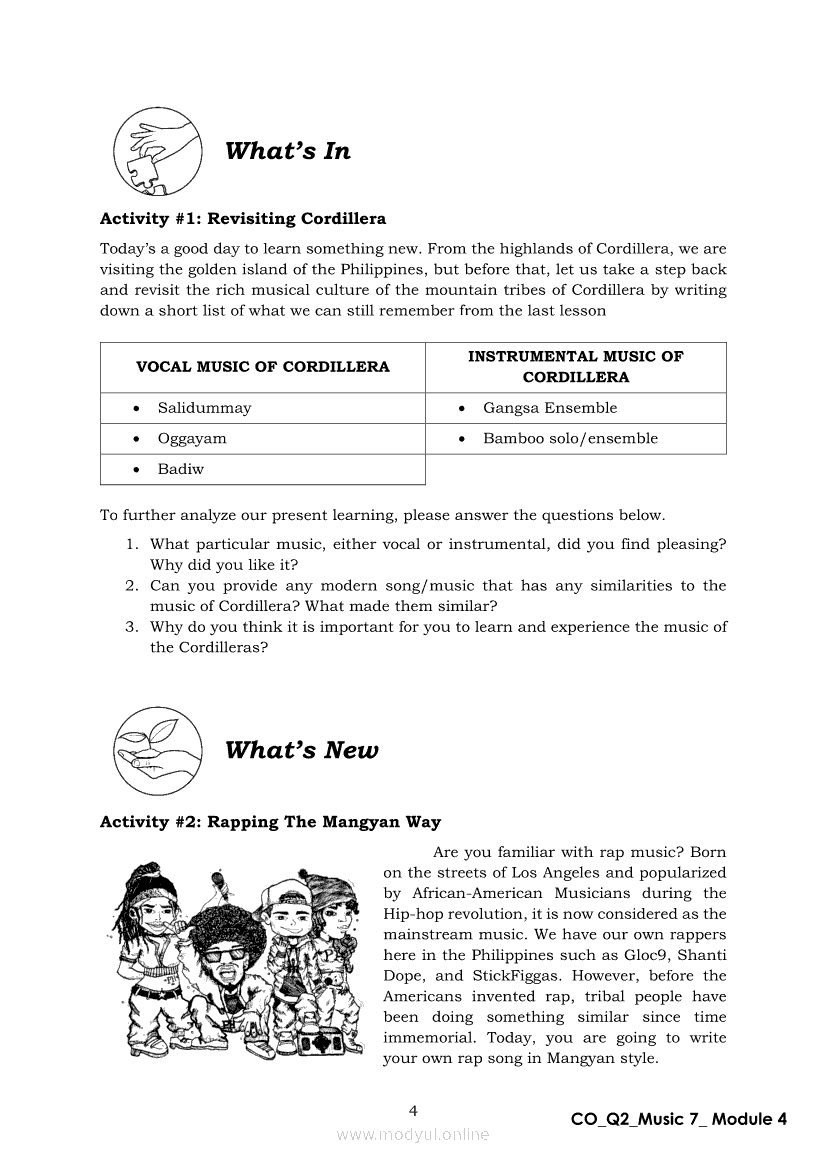 Music 7 Quarter 2 – Module 4: Experience the Music of the Philippines’ Golden Island Music of Mindoro (Vocal Music)Apr 22, 2021 Grade 7Xiaomi Redmi Watch 5 Active 2inch LCD Display Clear Calling 5ATM Waterproof Smart Watch for only ₱3,999 ₱1,200!. Music 7RelatedMUSIC Quarter 4 – Module 4b Music of Philippine Festivals and Theatrical Forms IIMUSIC Quarter 4 – Module 4a Music of Philippine Festivals and Theatrical Forms IMusic 7 Quarter 2 – Module 7: Instrumental Music of PalawanMusic 7 Module 1: Music of Lowlands of Luzon Folk Songs from the LowlandsMusic 7 Module 4: Music of Lowlands of Luzon Devotional Music and Brass Band