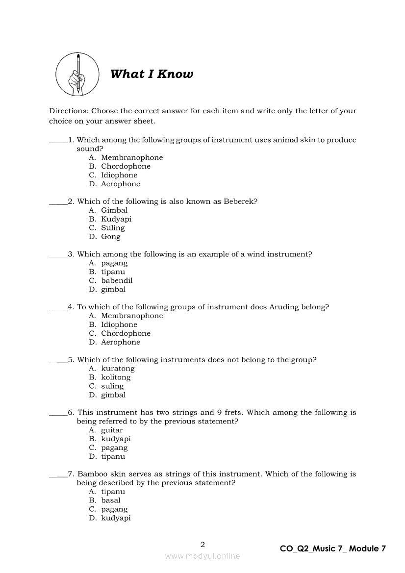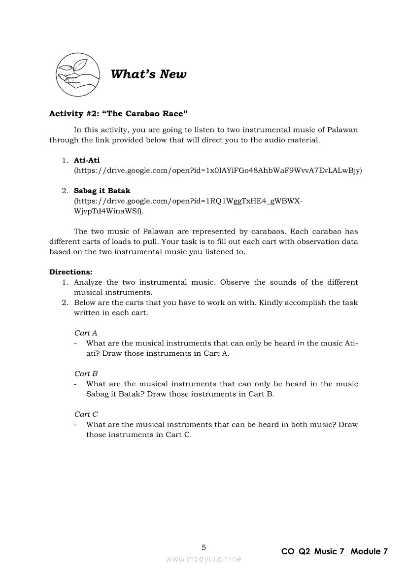 Music 7 Quarter 2 – Module 7: Instrumental Music of PalawanApr 22, 2021 Grade 7Xiaomi Redmi Watch 5 Active 2inch LCD Display Clear Calling 5ATM Waterproof Smart Watch for only ₱3,999 ₱1,200!. Music 7RelatedMUSIC Quarter 4 – Module 4a Music of Philippine Festivals and Theatrical Forms IMUSIC Quarter 4 – Module 4b Music of Philippine Festivals and Theatrical Forms IIMusic 7 Quarter 2 – Module 5: Experience the Music of the Philippines’ Golden Island Music of Mindoro (Instrumental Music)Music 7 Module 5: Secular Music Passion for Harana and BalitawMusic 7 Module 3: Liturgical Music