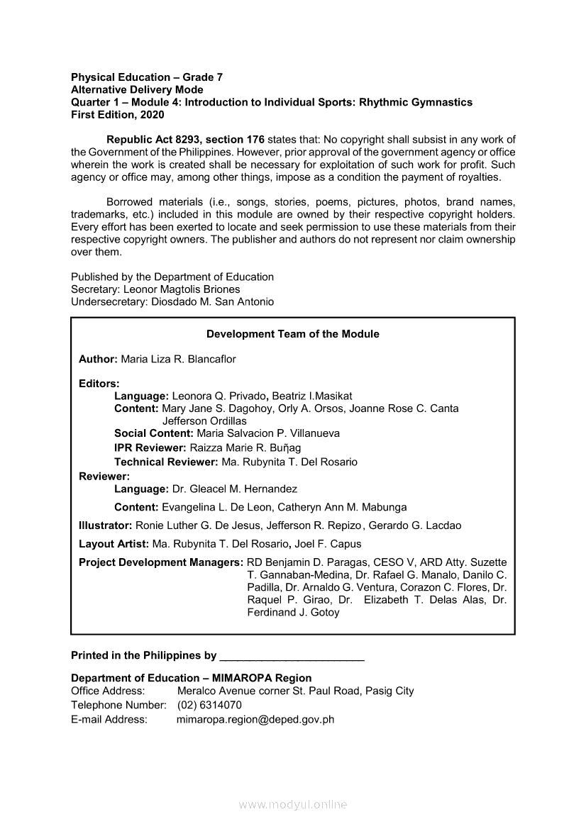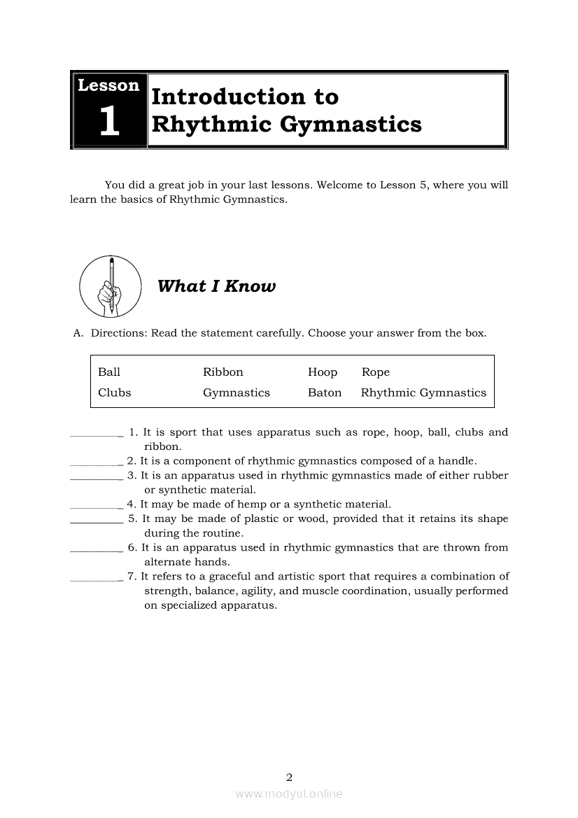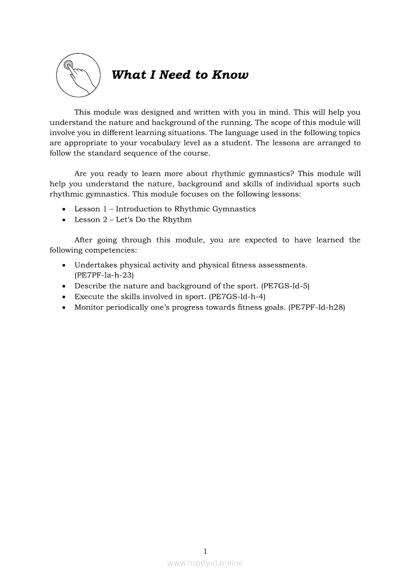 PE 7 Module 4: Introduction to Individual Sports: Rhythmic GymnasticsApr 22, 2021 Grade 7Xiaomi Redmi Watch 5 Active 2inch LCD Display Clear Calling 5ATM Waterproof Smart Watch for only ₱3,999 ₱1,200!. PE 7RelatedPhysical Education Quarter 4 – Module 4a: Festival DancePhysical Education Quarter 4 – Module: 4b Festival Dances in the PhilippinesPE 7 Module 2: Basic Exercise ProgramPE 7 Module 3: Introduction to Individual Sports: Running and SwimmingPE 7 Second Quarter Module (PIVOT)