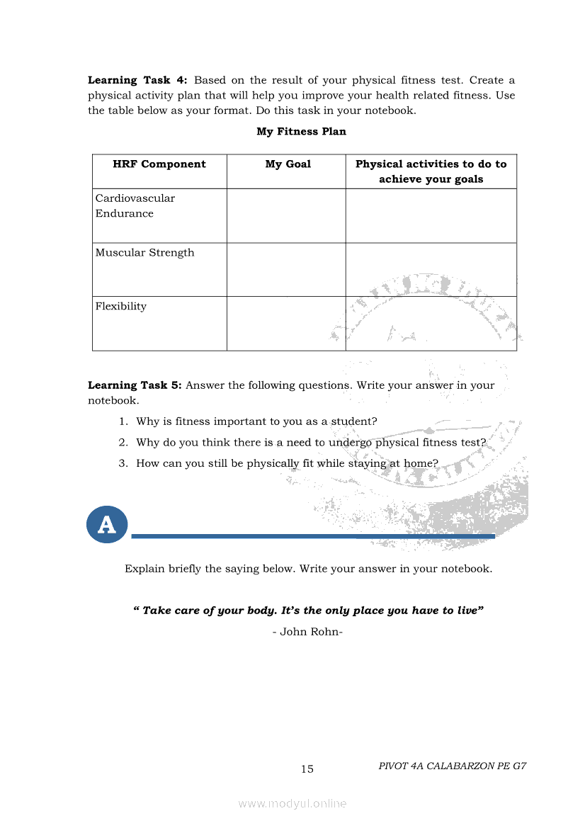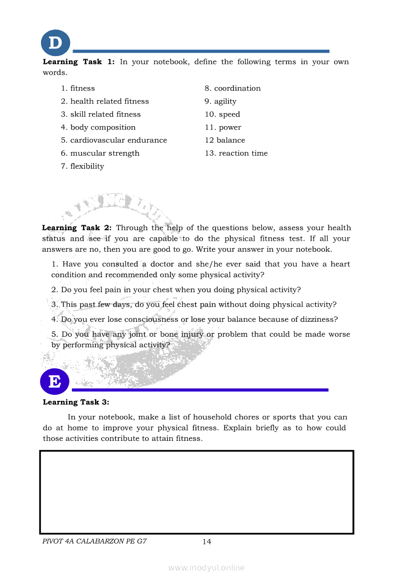 PE 7 Second Quarter Module (PIVOT)Apr 22, 2021 Grade 7Xiaomi Redmi Watch 5 Active 2inch LCD Display Clear Calling 5ATM Waterproof Smart Watch for only ₱3,999 ₱1,200!. PE 7RelatedPhysical Education Quarter 4 – Module: 4b Festival Dances in the PhilippinesPhysical Education Quarter 4 – Module 4a: Festival DancePE 7 Module 4: Introduction to Individual Sports: Rhythmic GymnasticsPE 7 Module 3: Introduction to Individual Sports: Running and SwimmingPE 7 Module 2: Basic Exercise Program