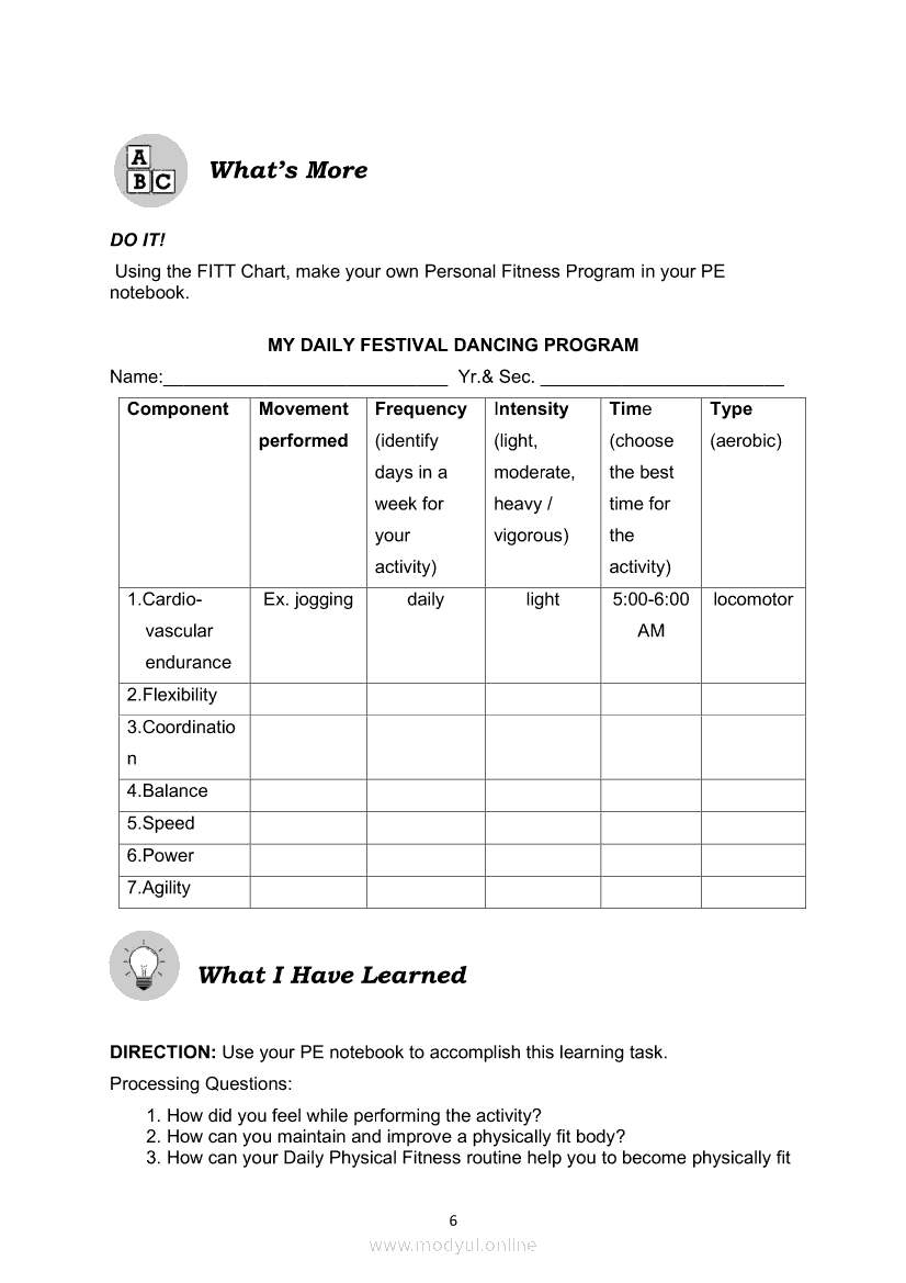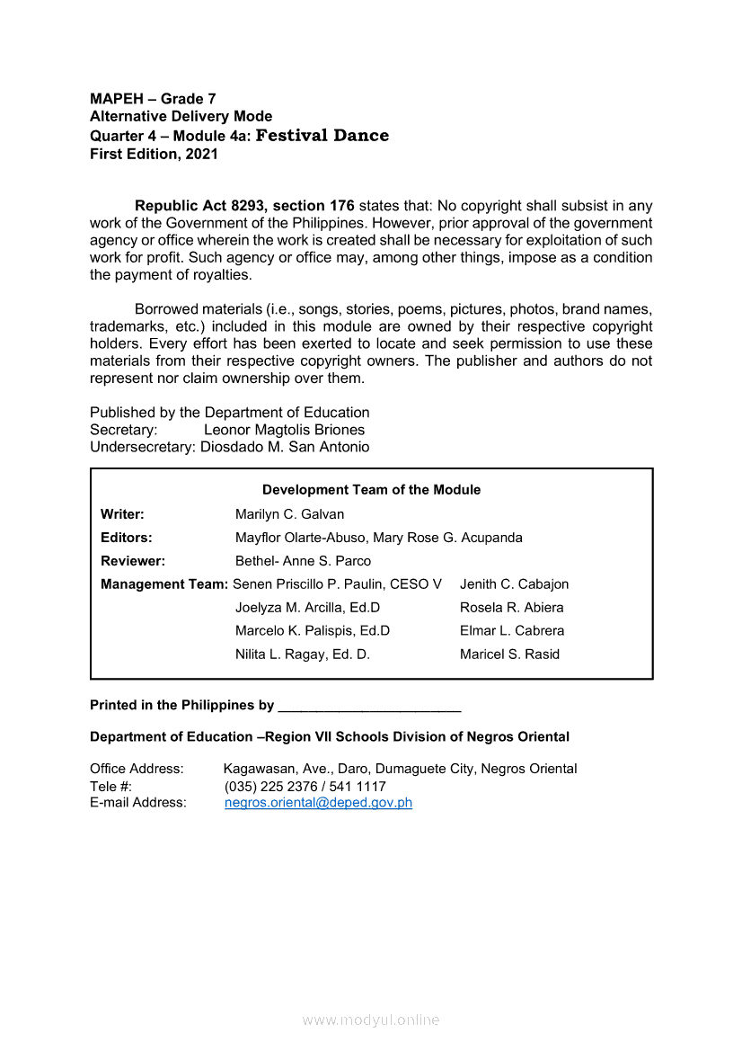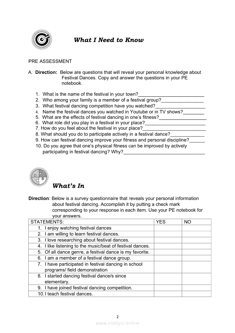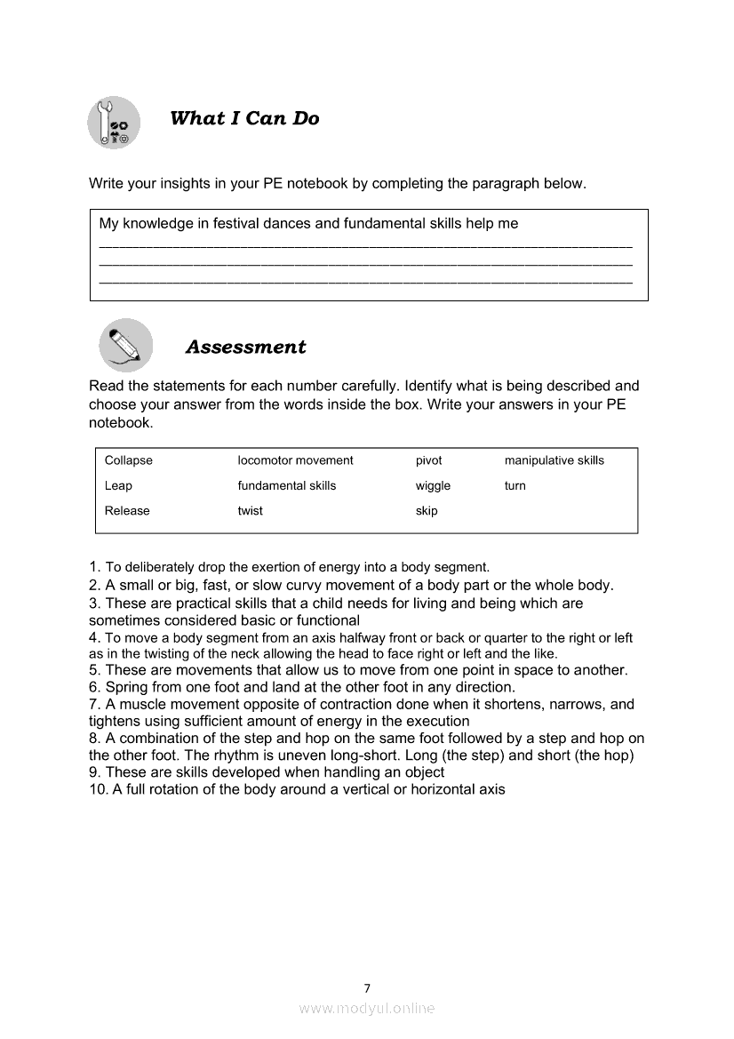 Physical Education Quarter 4 – Module 4a: Festival DanceMay 27, 2021 Grade 7Xiaomi Redmi Watch 5 Active 2inch LCD Display Clear Calling 5ATM Waterproof Smart Watch for only ₱3,999 ₱1,200!. PE 7 4th QuarterRelatedPhysical Education Quarter 4 – Module: 4b Festival Dances in the PhilippinesARTS Quarter 4 – Module: 4a Religious and Non-Religious FestivalsHEALTH Quarter 4 – Module: 4a Nature of Non-Communicable Diseases (NCDs)Araling Panlipunan Ikaapat na Markahan –Modyul 5: Mga Kababaihan ng Silangan at TimogSilangang AsyaFilipino 7 Ikaapat na Markahan Modyul 8 IBONG ADARNA (Ang Pagtatapos)