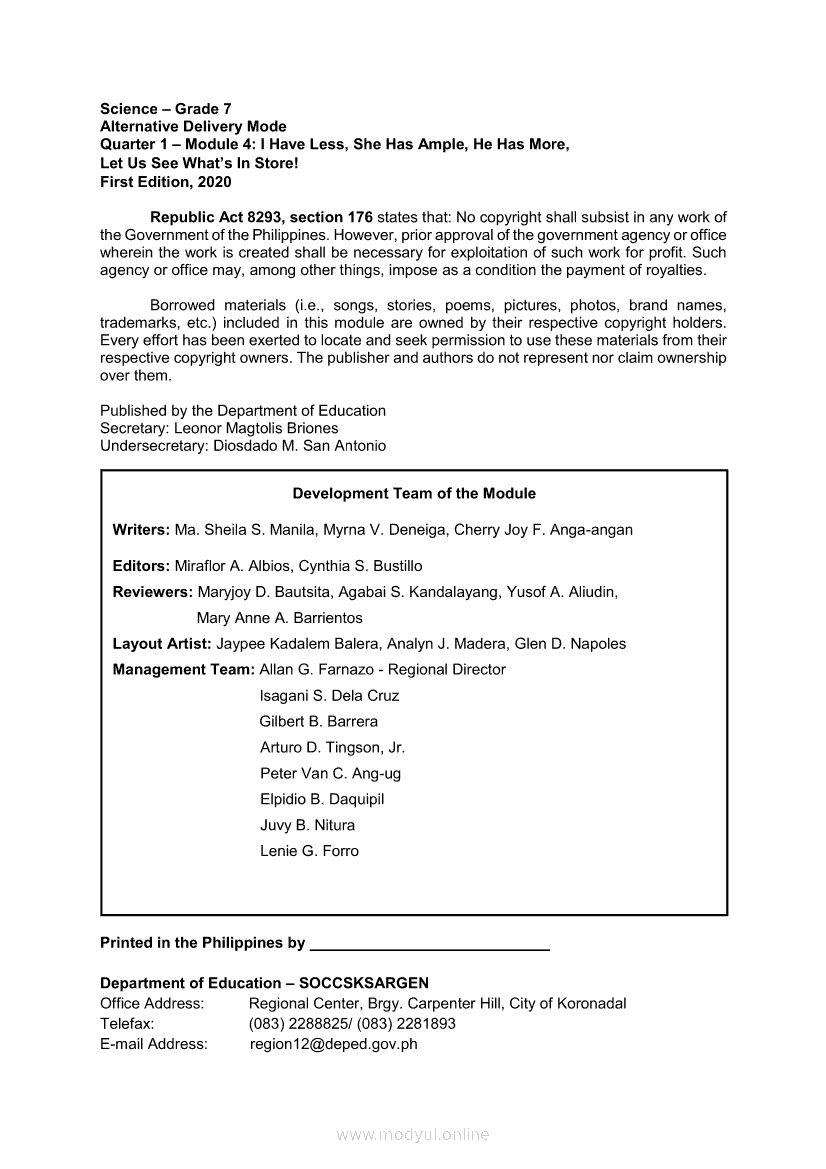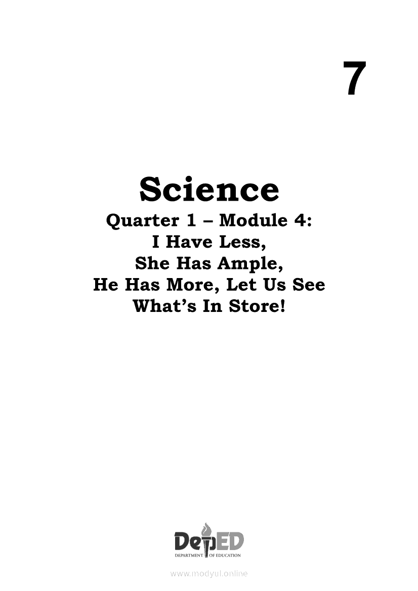 Science 7 Module 4: I Have Less, She Has Ample, He Has More, Let Us See What’s In Store!Apr 22, 2021 Grade 7Xiaomi Redmi Watch 5 Active 2inch LCD Display Clear Calling 5ATM Waterproof Smart Watch for only ₱3,999 ₱1,200!. Science 7RelatedTHE SUN AND THE SEASONS for Science Grade 7 Quarter 4 / Week 5SOLAR ENERGY AND THE INTERACTIONS IN THE ATMOSPHERE for Science Grade 7 Quarter 4 / Week 3ECLIPSES for Science Grade 7 Quarter 4 / Week 6TILT OF THE EARTH: LENGTH OF DAYTIME, AMOUNT OF ENERGY & POSITION OF THE EARTH IN ITS ORBIT for Science Grade 7 Quarter 3 / Week 4EARTH’S NATURAL RESOURCES for Science Grade 7 Quarter 4 / Week 2