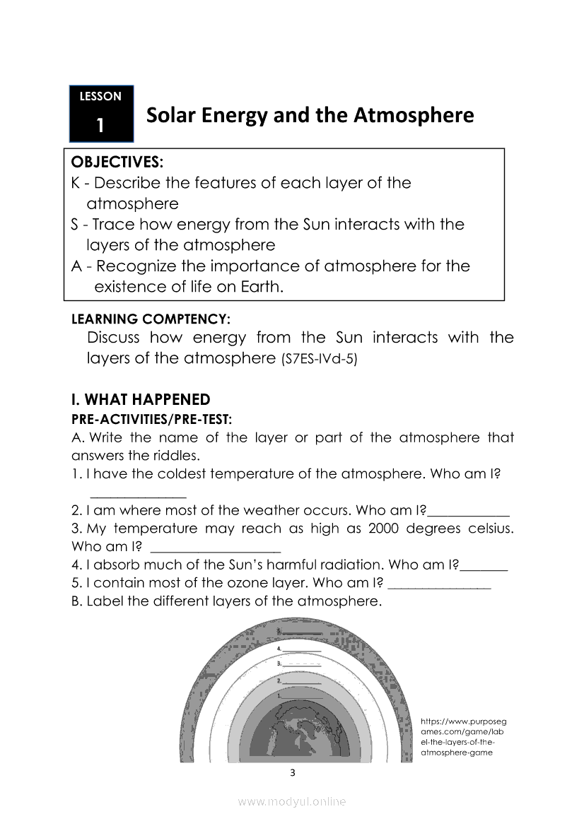 SOLAR ENERGY AND THE INTERACTIONS IN THE ATMOSPHERE for Science Grade 7 Quarter 4 / Week 3May 27, 2021 Grade 7Xiaomi Redmi Watch 5 Active 2inch LCD Display Clear Calling 5ATM Waterproof Smart Watch for only ₱3,999 ₱1,200!. Science 7 4th QuarterRelatedTILT OF THE EARTH: LENGTH OF DAYTIME, AMOUNT OF ENERGY & POSITION OF THE EARTH IN ITS ORBIT for Science Grade 7 Quarter 3 / Week 4ECLIPSES for Science Grade 7 Quarter 4 / Week 6LOCATING PLACES USING COORDINATE SYSTEM for Science Grade 7 Quarter 4/Week 1EARTH’S NATURAL RESOURCES for Science Grade 7 Quarter 4 / Week 2THE SUN AND THE SEASONS for Science Grade 7 Quarter 4 / Week 5